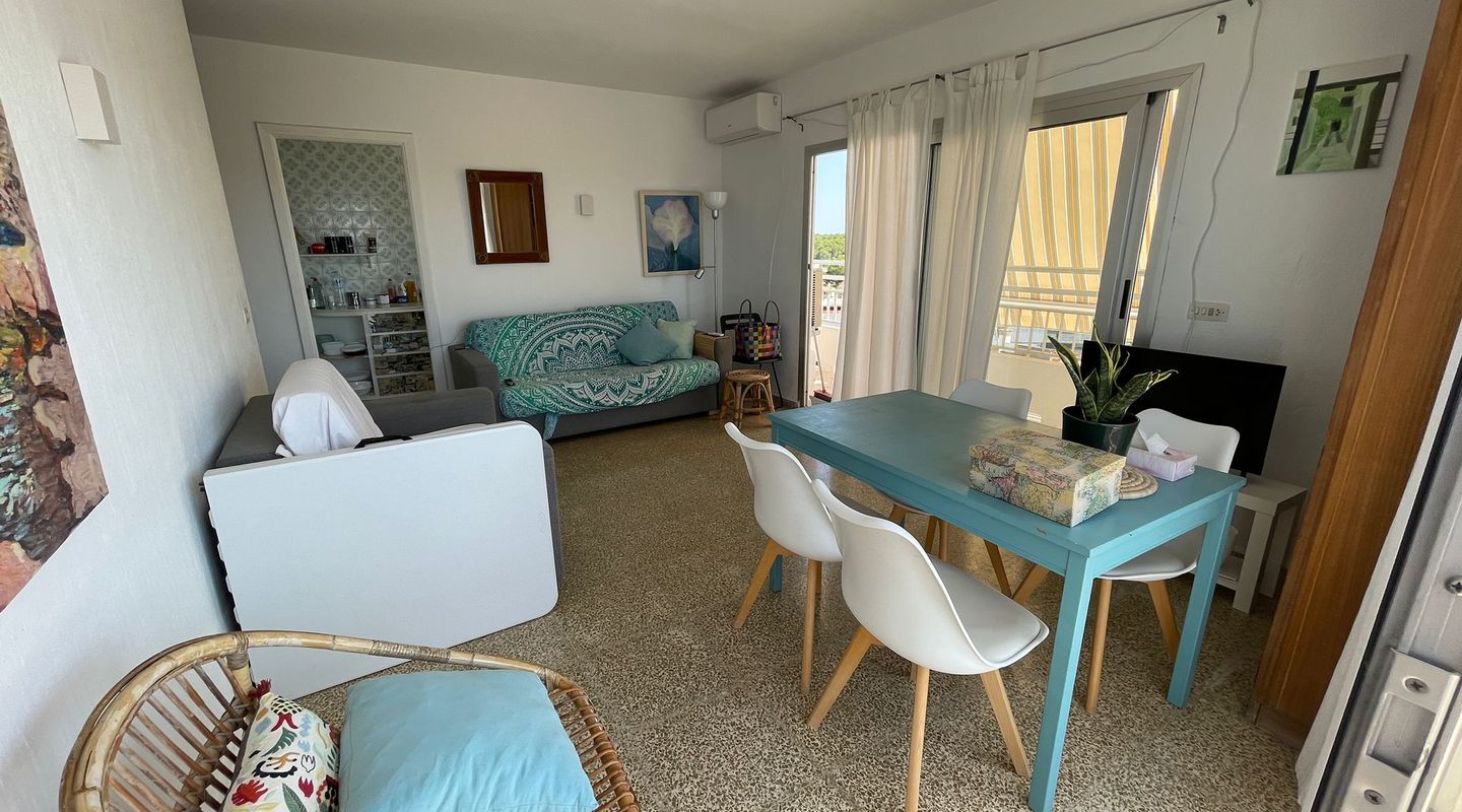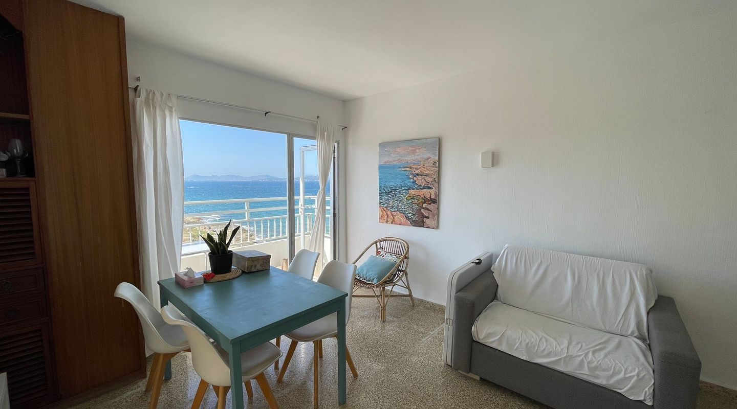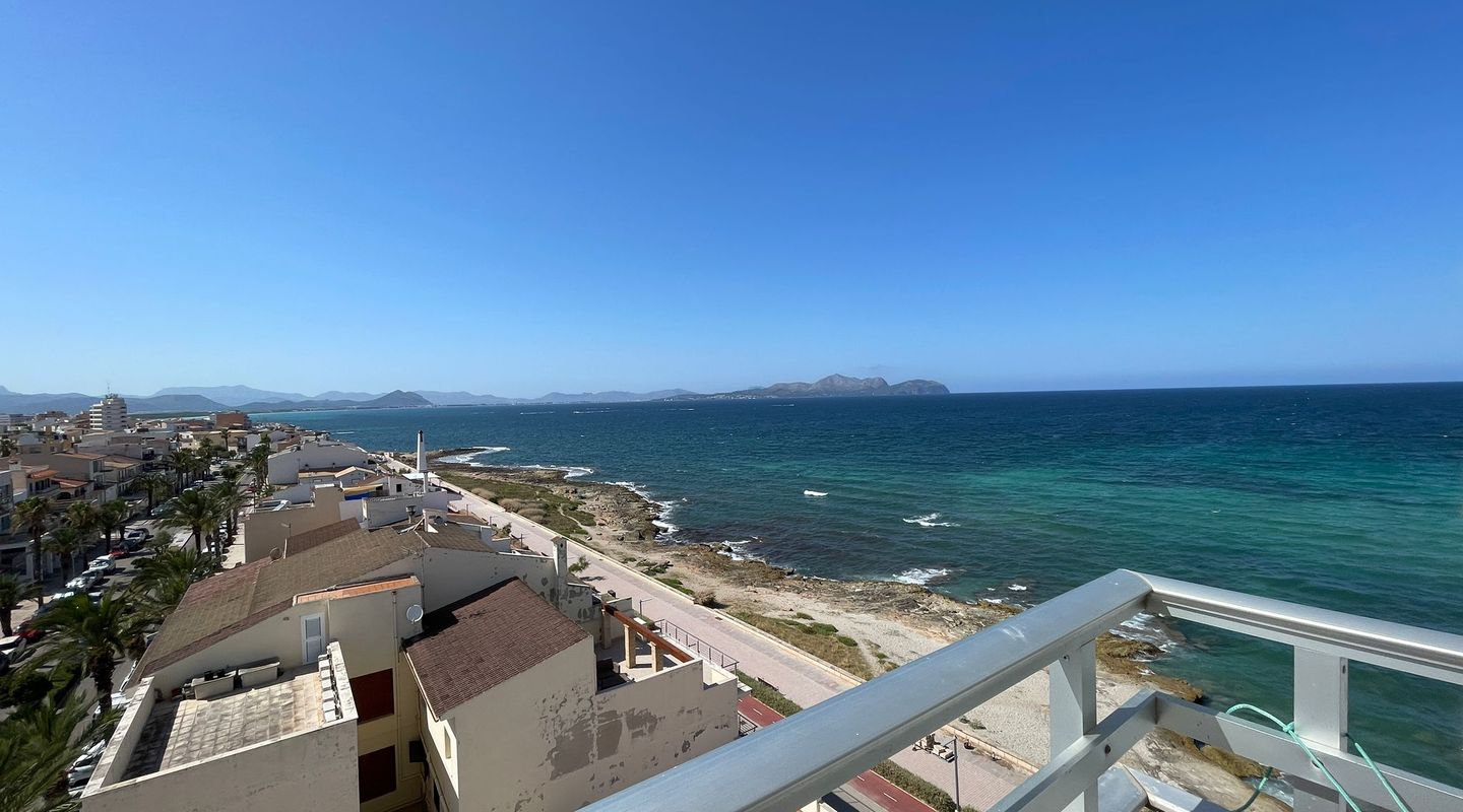 Available for rent during the winter months, this cozy apartment is located on the top floor of a beachfront building, offering stunning panoramic views of the Mediterranean from almost every room.