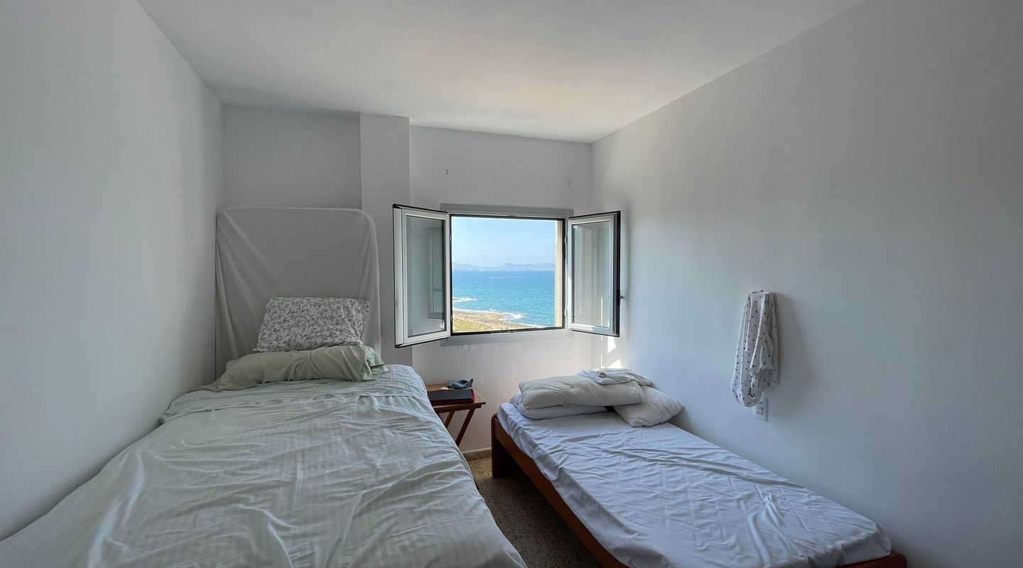 The apartment has two bright bedrooms, both with windows overlooking the sea, a completely renovated bathroom, and a spacious living-dining room that connects to a separate kitchen equipped with everything you need for a comfortable stay.