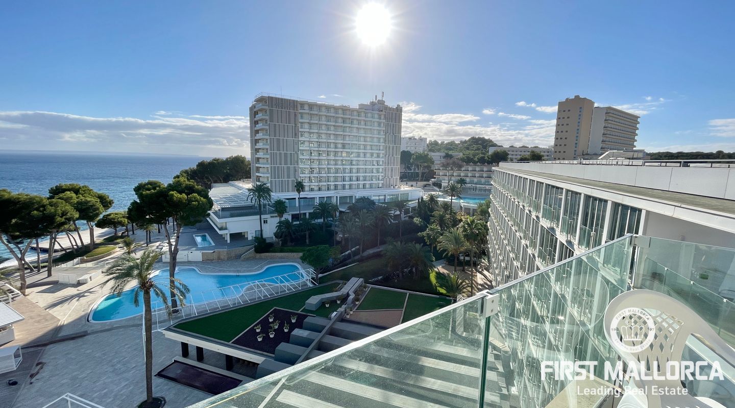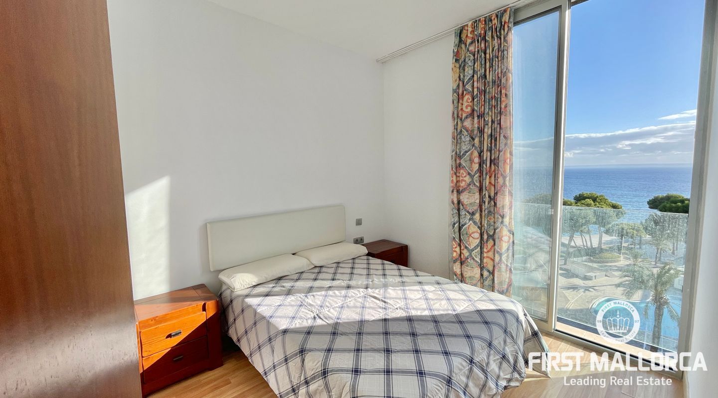 Available for permanent housing or temporary periods of at least 6 months. Great opportunity to enjoy stays within a top quality hotel complex, in a private flat. This seventh floor flat with lift is located in a modern building in Magaluf with stunning views to the Mediterranean Sea and with typical hotel amenities.