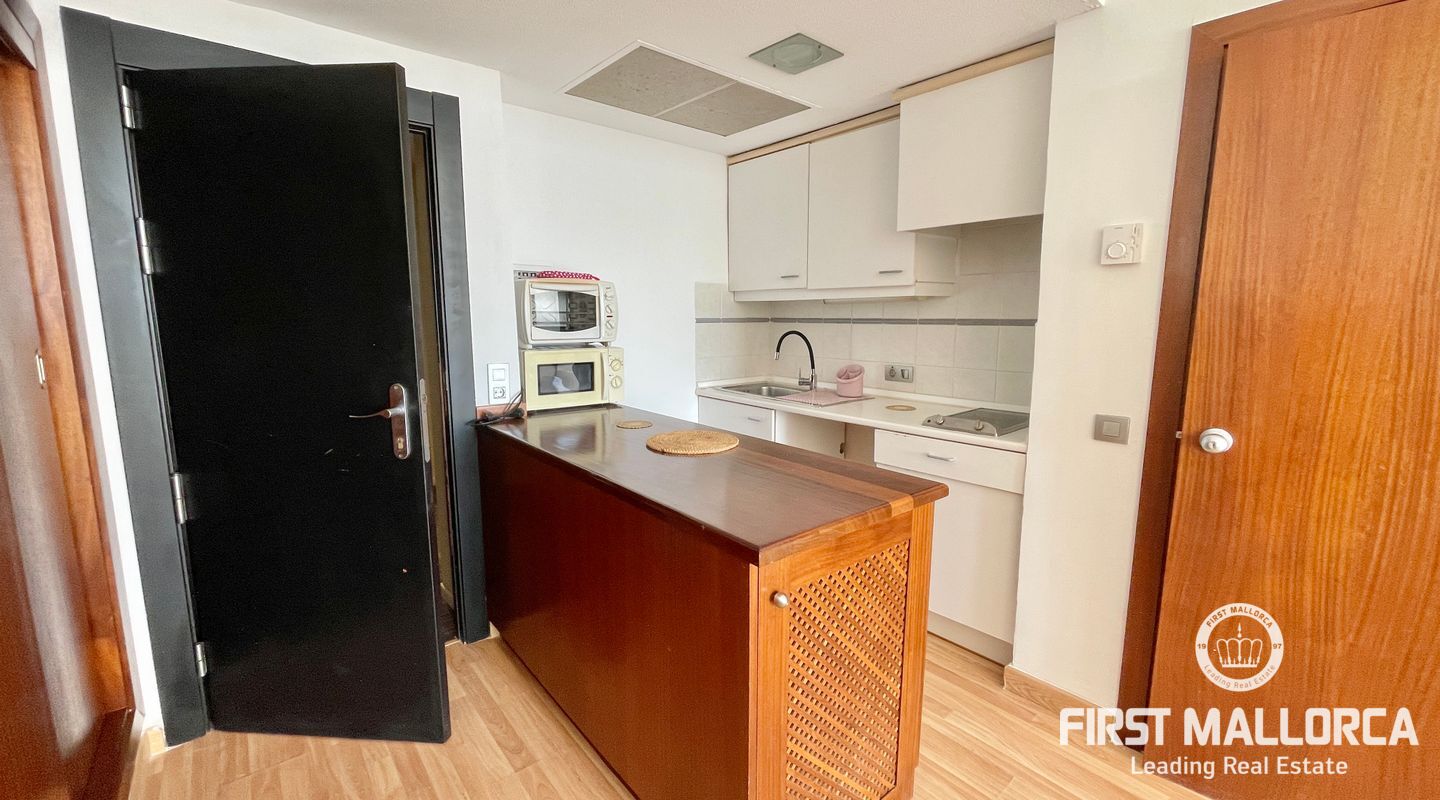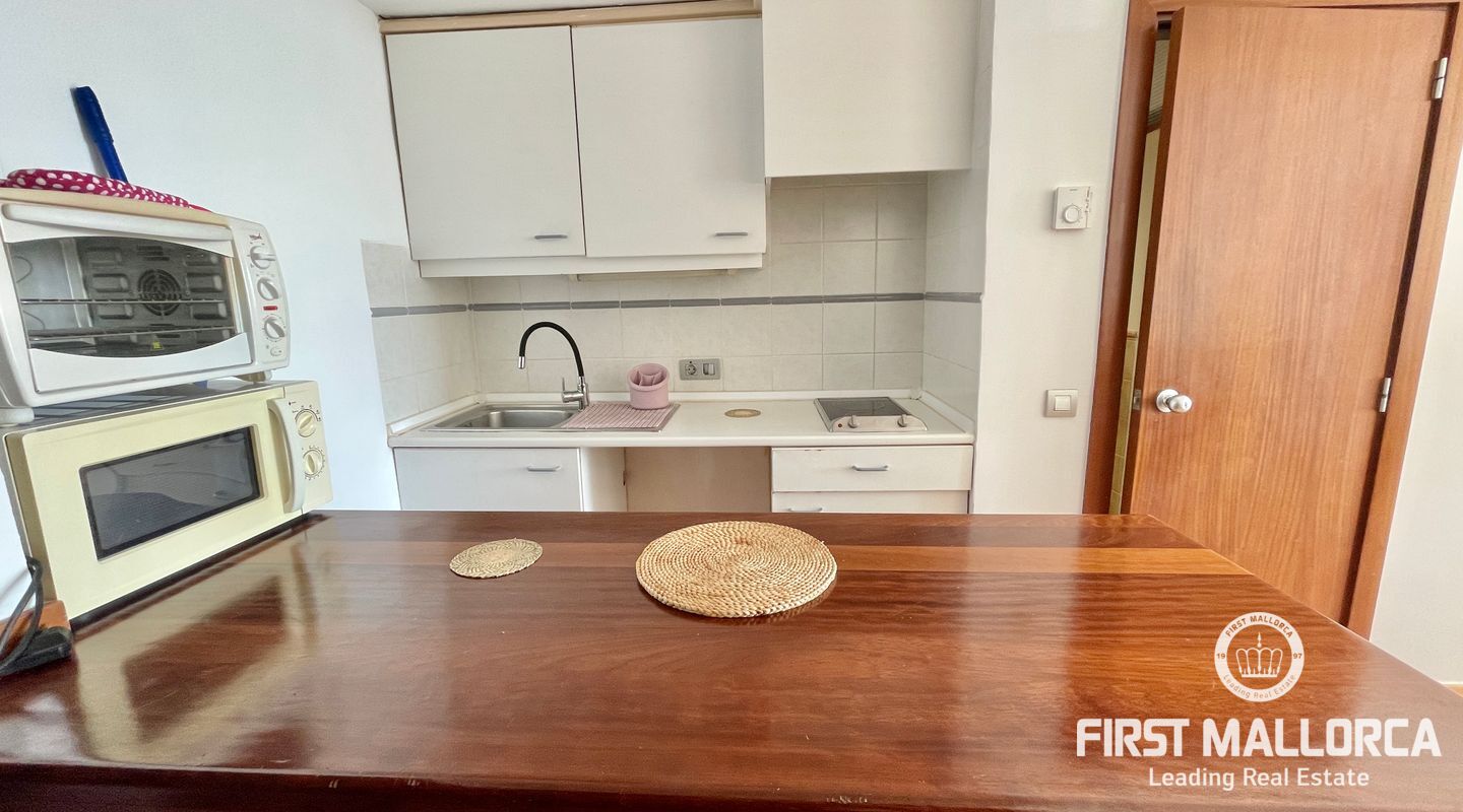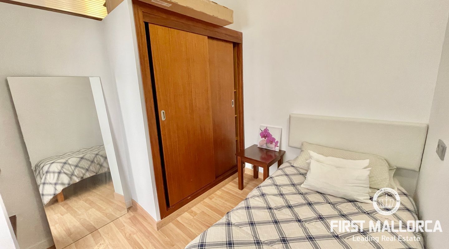 The flat consists of two bedrooms, one double and one single with built-in wardrobe, the kitchen is open to the living room, which has access to the terrace, where you can enjoy the sea breeze and breathtaking views. The tenants of this property will be able to enjoy some of the facilities of the hotel such as the three swimming pools, they can also use the direct access to the beach and park their vehicle in the private parking of the complex. Magaluf is a tourist resort in Majorca, known for its white sandy beach and turquoise waters, and for its lively nightlife during the summer months. Bars, restaurants and beach clubs line the promenade. In winter, Magaluf is transformed into a place of peace and relaxation, as most of the hotels and beach clubs are closed during the low season.