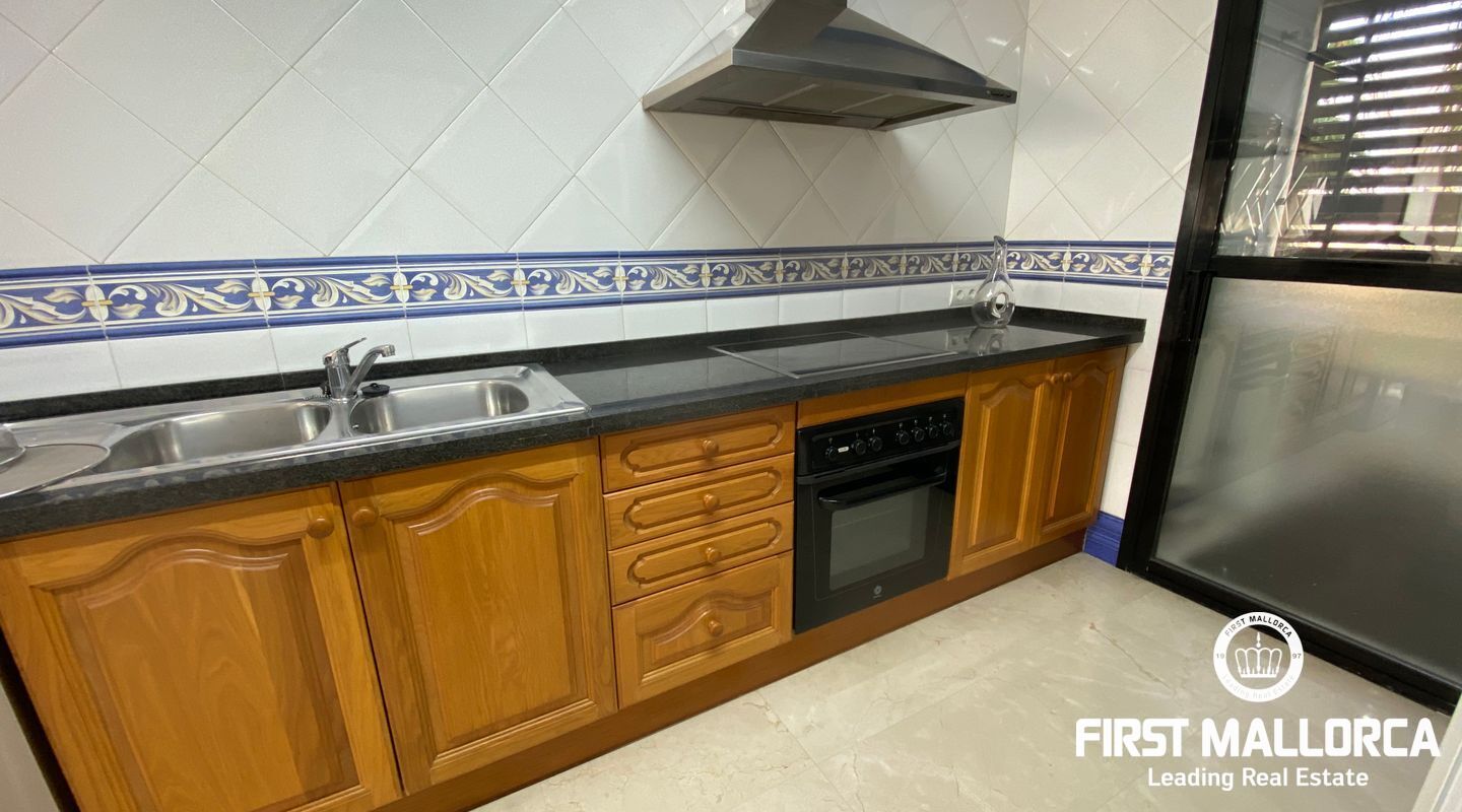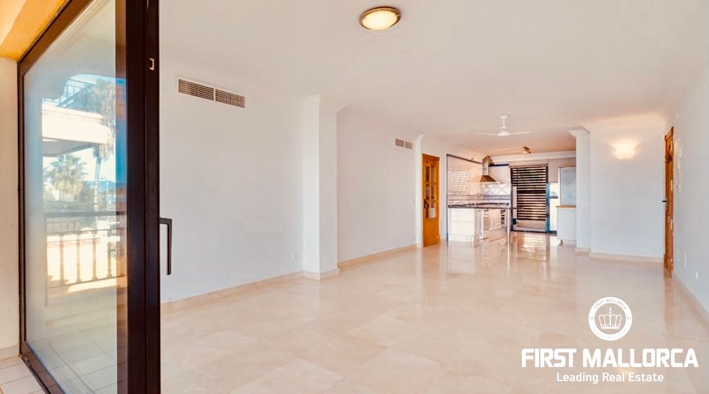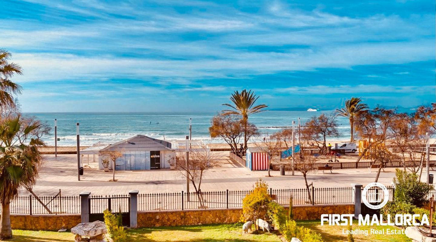 This beautiful apartment of approximately 150m2 on the first line in Ciudad Jardín, offers unbeatable views of the beach. Facing south you can enjoy wonderful sunsets on the large terrace. With 3 bedrooms and 2 bathrooms, a living-dining room, equipped kitchen, laundry room, and a parking space is included in the price. Ciudad Jardin is just a few minutes by car to the city of Palma de Mallorca. Close to supermarkets, bars and restaurants, and a wonderful passage next to the beach.