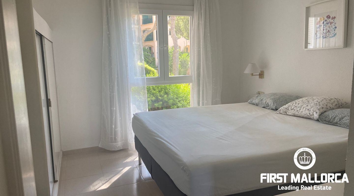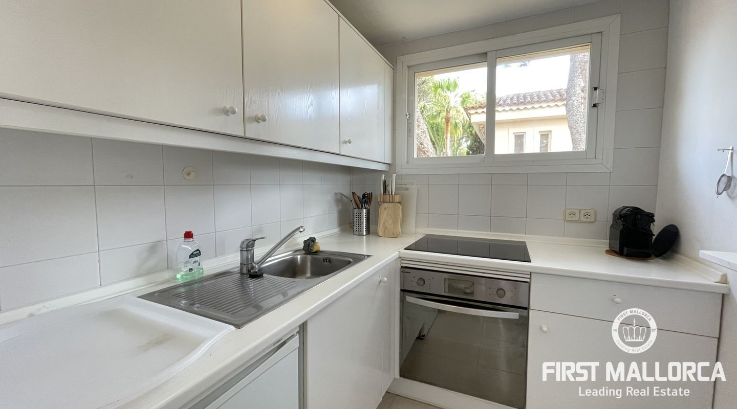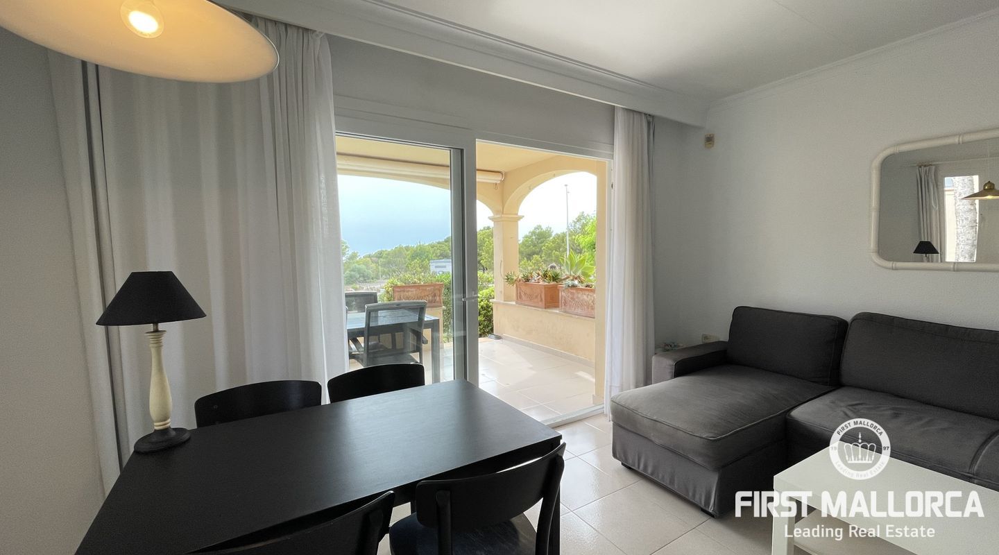 For rent for short term, UNTIL JUNE 15TH, 2025. This cosy flat located in Nova Santa Ponsa, only a few minutes away from the famous Port Adriano, in an exclusive residential complex with community pool. The flat has a double bedroom with wardrobe and view to the pool, bathroom with shower, kitchen and living room with air conditioning hot/cold, and is fully furnished. The rental price includes community fees, water and internet. If you would like more information we will be pleased to help you.