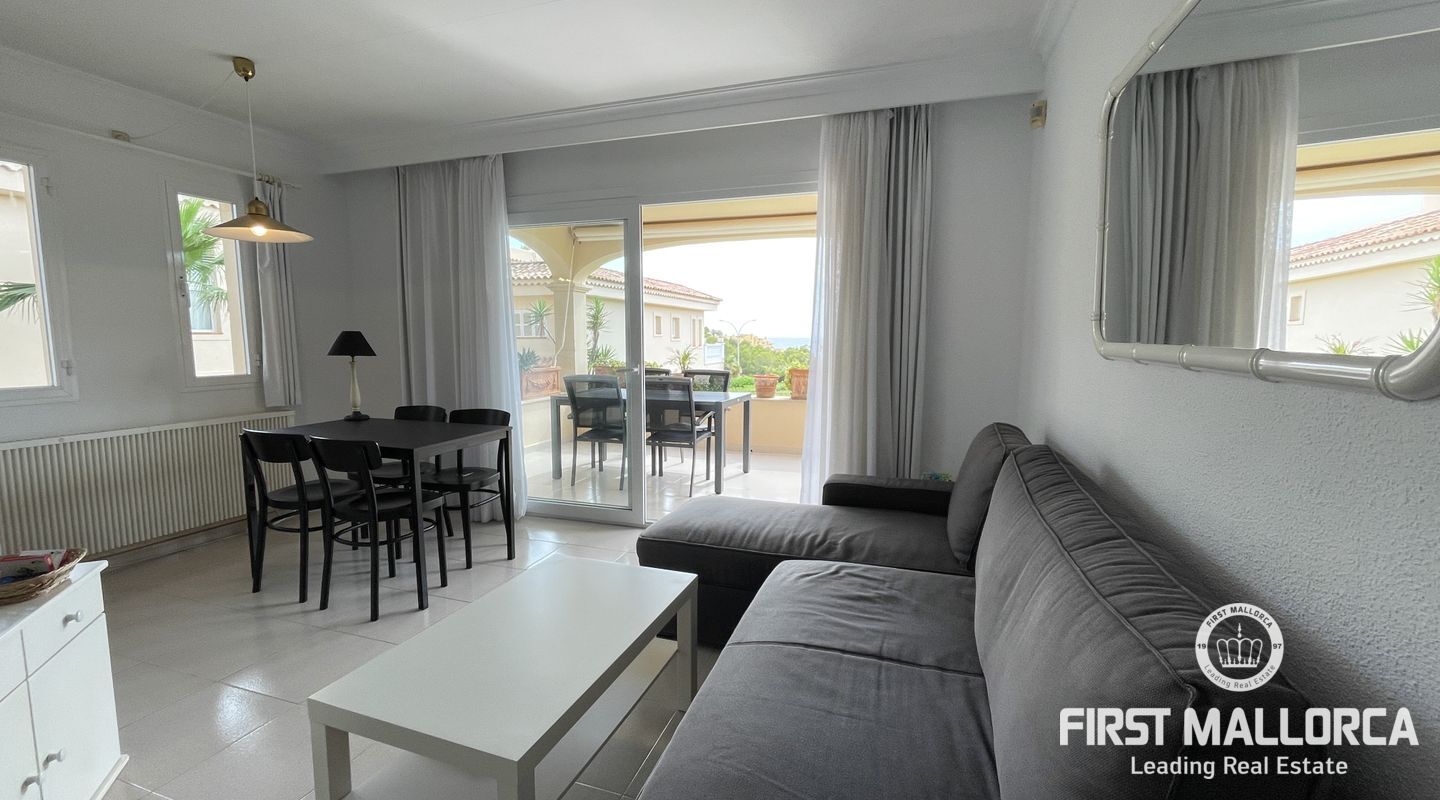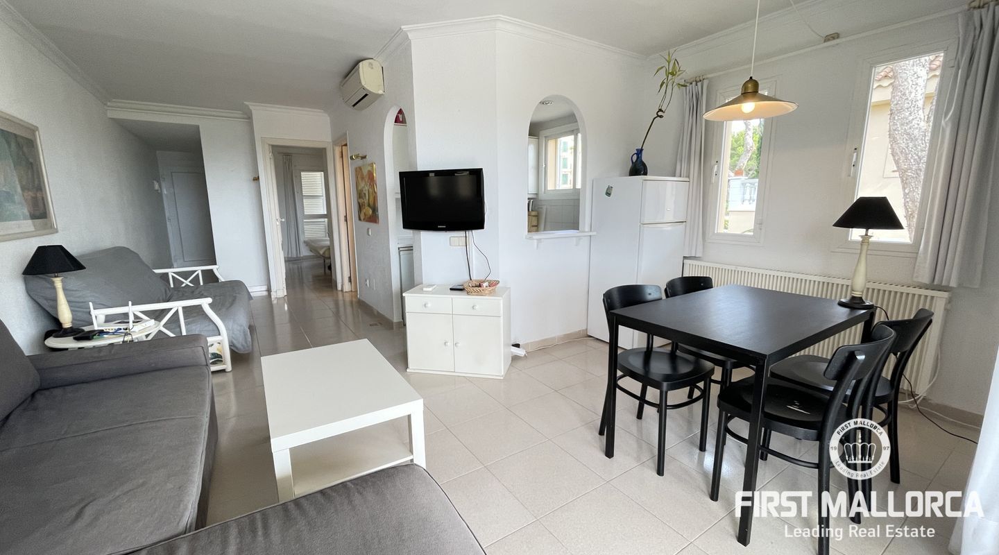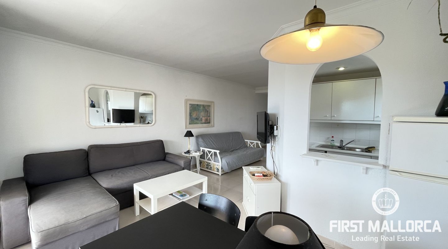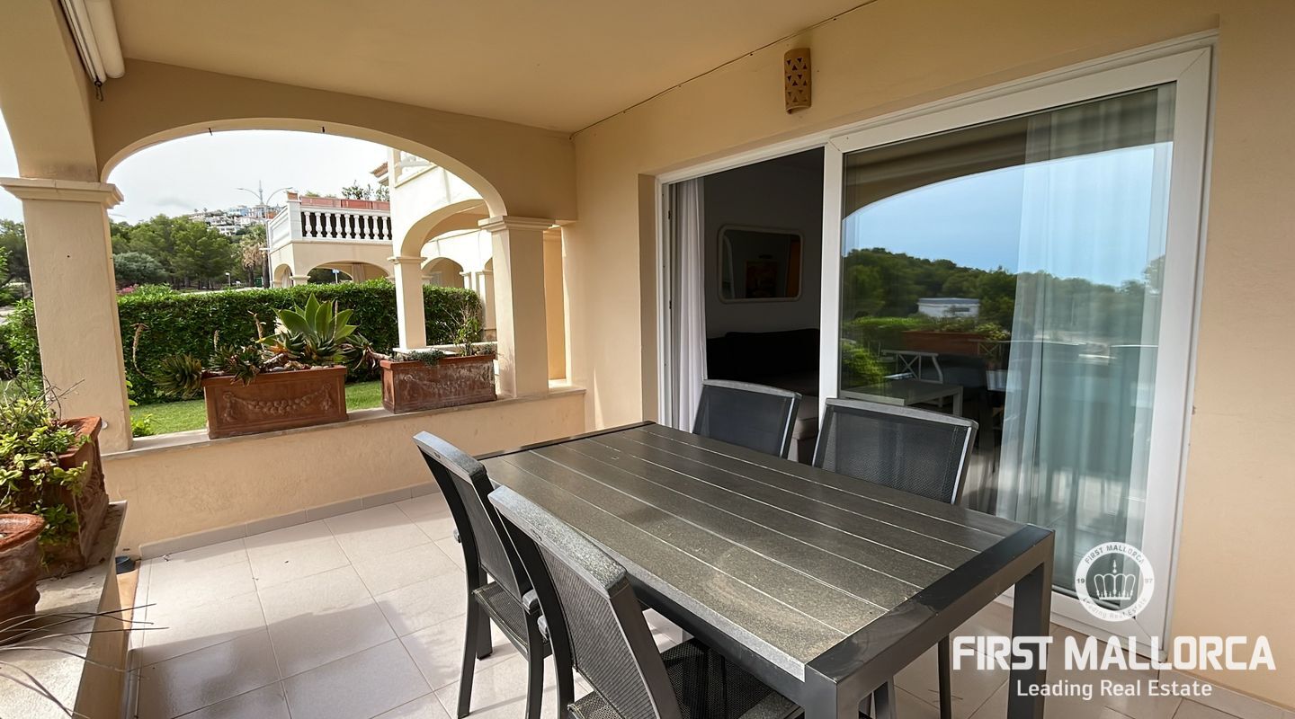 For rent for short term, UNTIL JUNE 15TH, 2025. This cosy flat located in Nova Santa Ponsa, only a few minutes away from the famous Port Adriano, in an exclusive residential complex with community pool. The flat has a double bedroom with wardrobe and view to the pool, bathroom with shower, kitchen and living room with air conditioning hot/cold, and is fully furnished. The rental price includes community fees, water and internet. If you would like more information we will be pleased to help you.