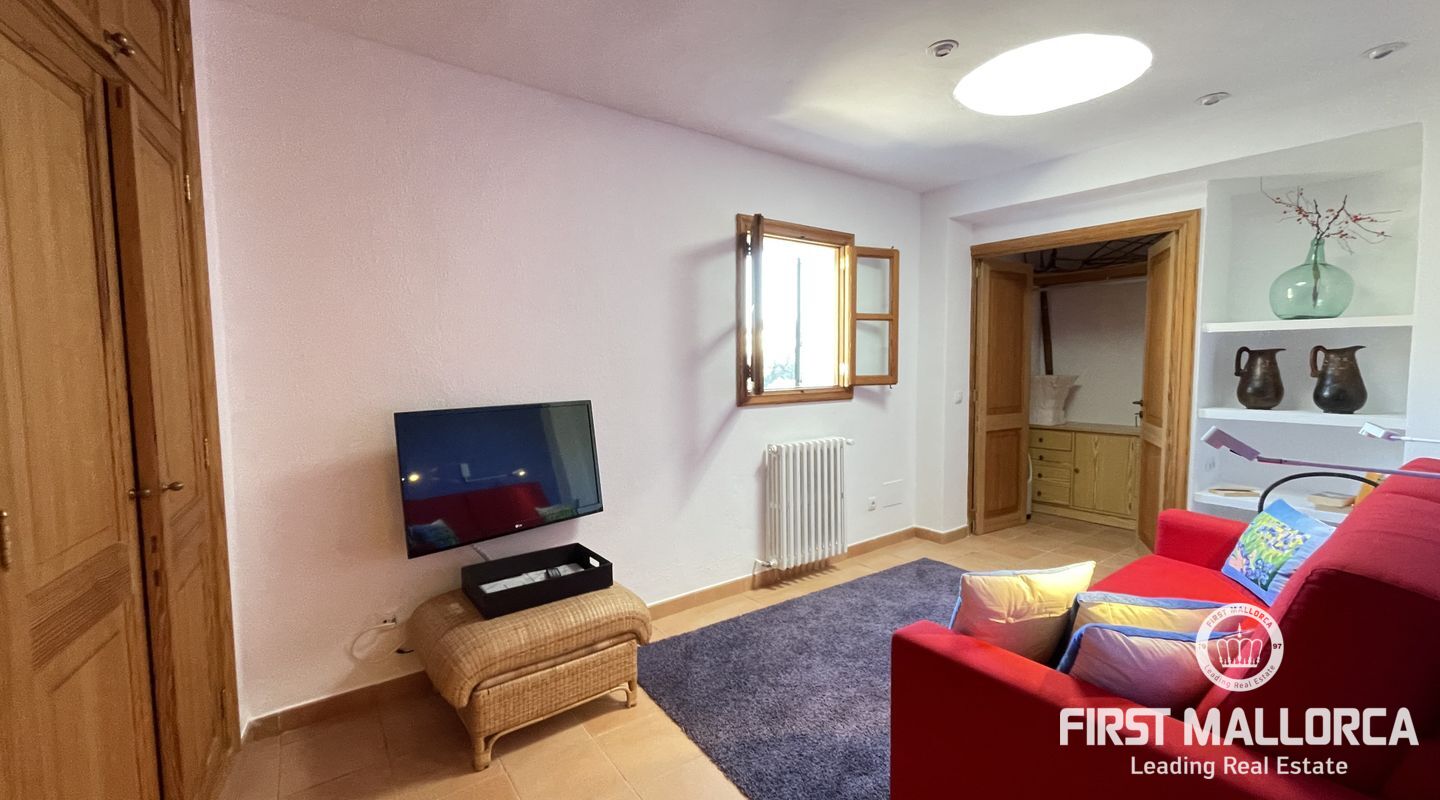 In the charming village of Orient and in the middle of the Tramuntana mountain range, a first floor house, ideal for nature lovers, surrounded by its landscape of beautiful trees and mountain views. This property is carefully decorated with souvenirs from different parts of the world which makes it even more exquisite, it is fully furnished with a spacious living dining room, two bedrooms with fitted wardrobes and panoramic views, kitchen with all appliances, bathroom with shower, and an outside terrace for ideal moments of reading or eating outdoors. All utilities are included in the price except internet.