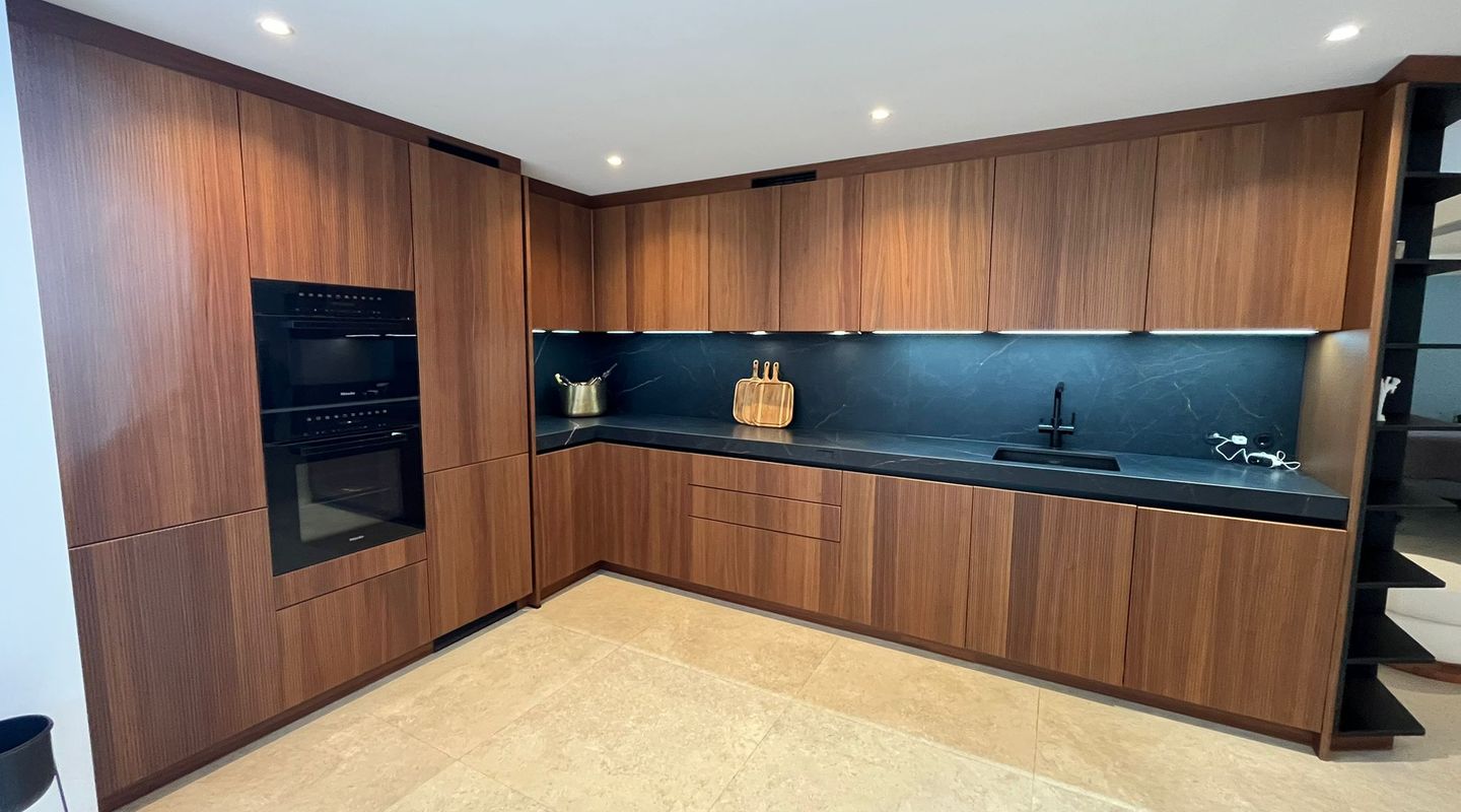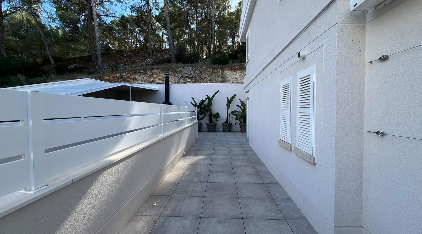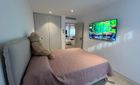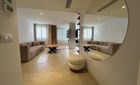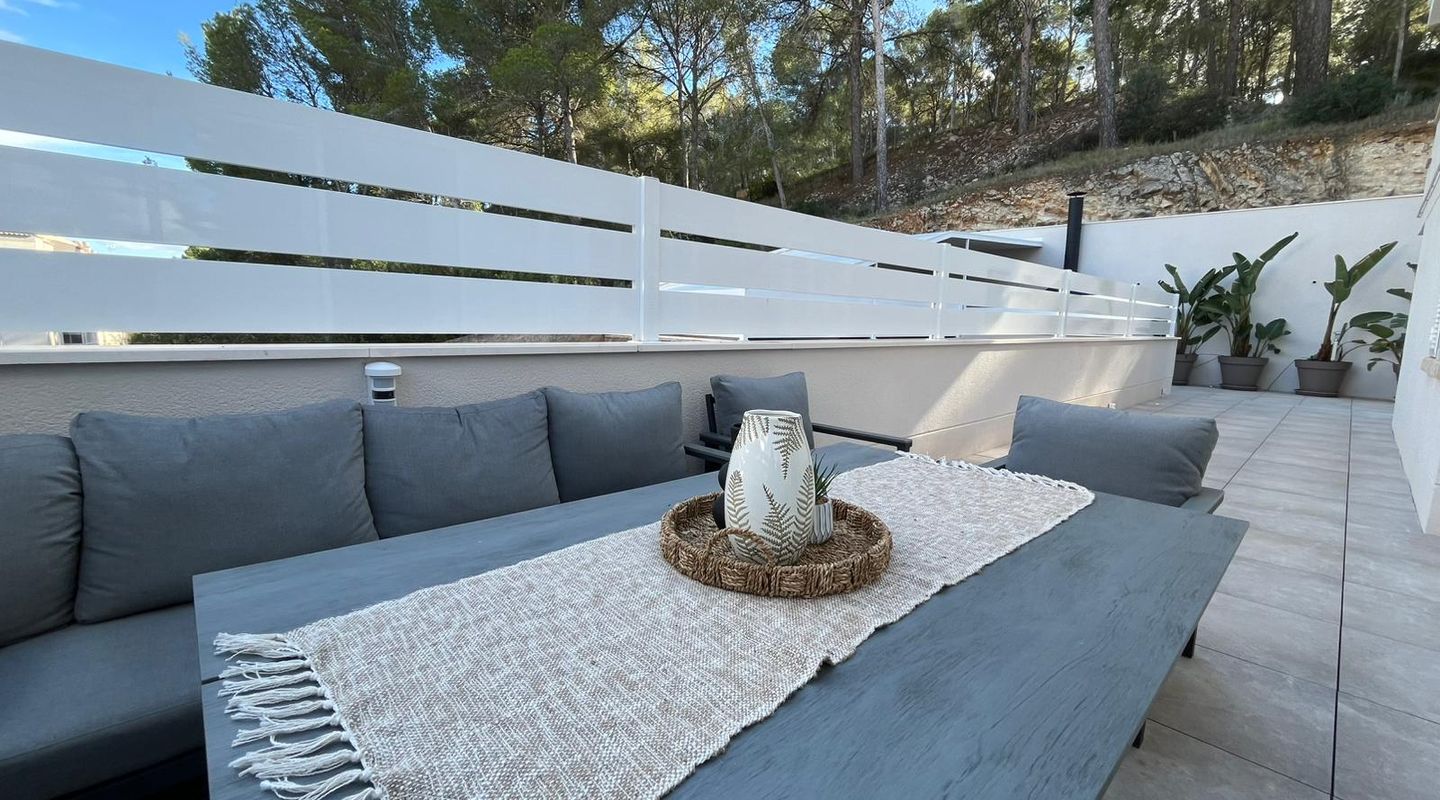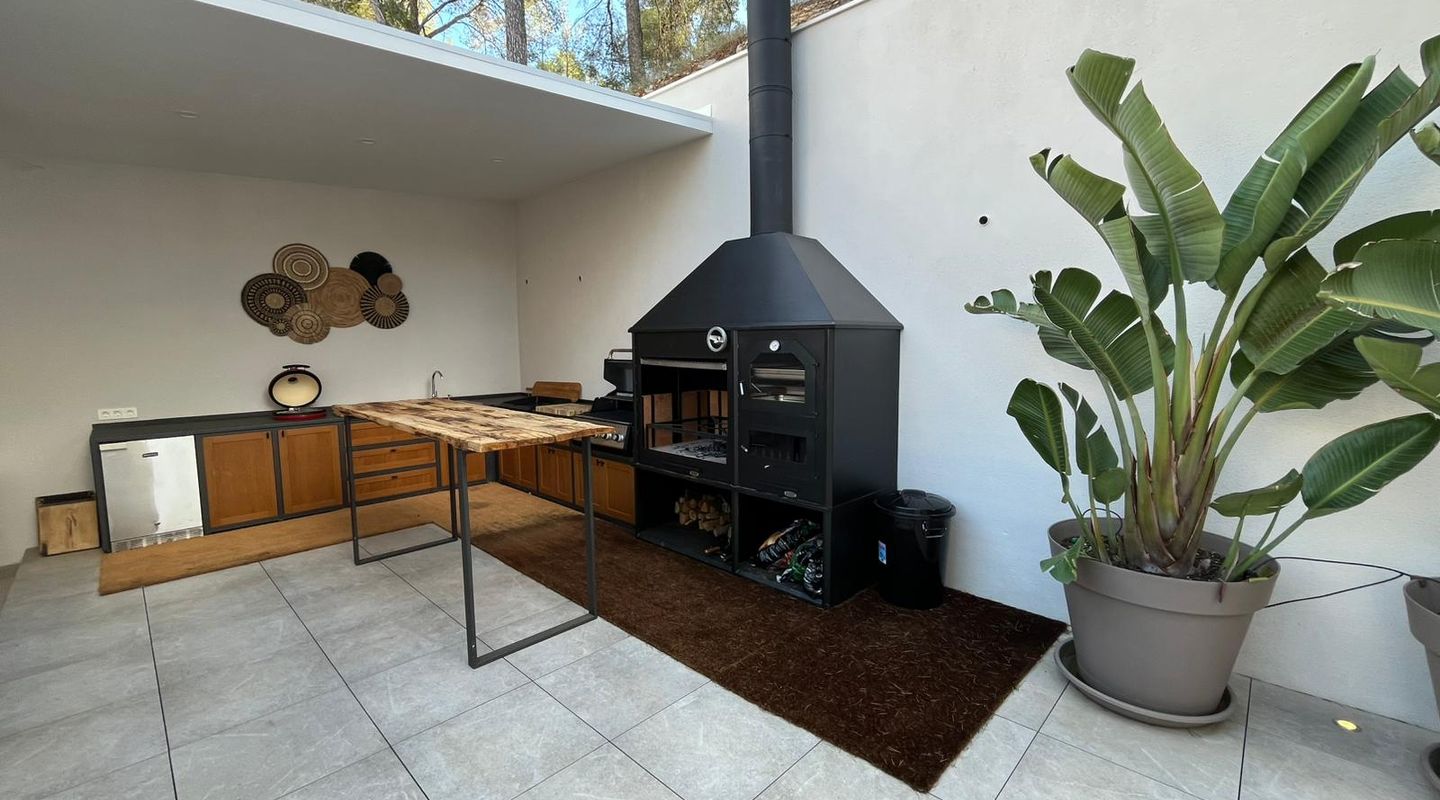 The living area has been designed for maximum comfort, featuring high-quality furnishings, two TVs in the living room and two additional TVs in the bedrooms. Outside, the spacious terrace with electric blinds offers a perfect year-round outdoor living space with a dining area and an outstanding BBQ setup including two charcoal barbecues, one gas barbecue, and an additional grill.