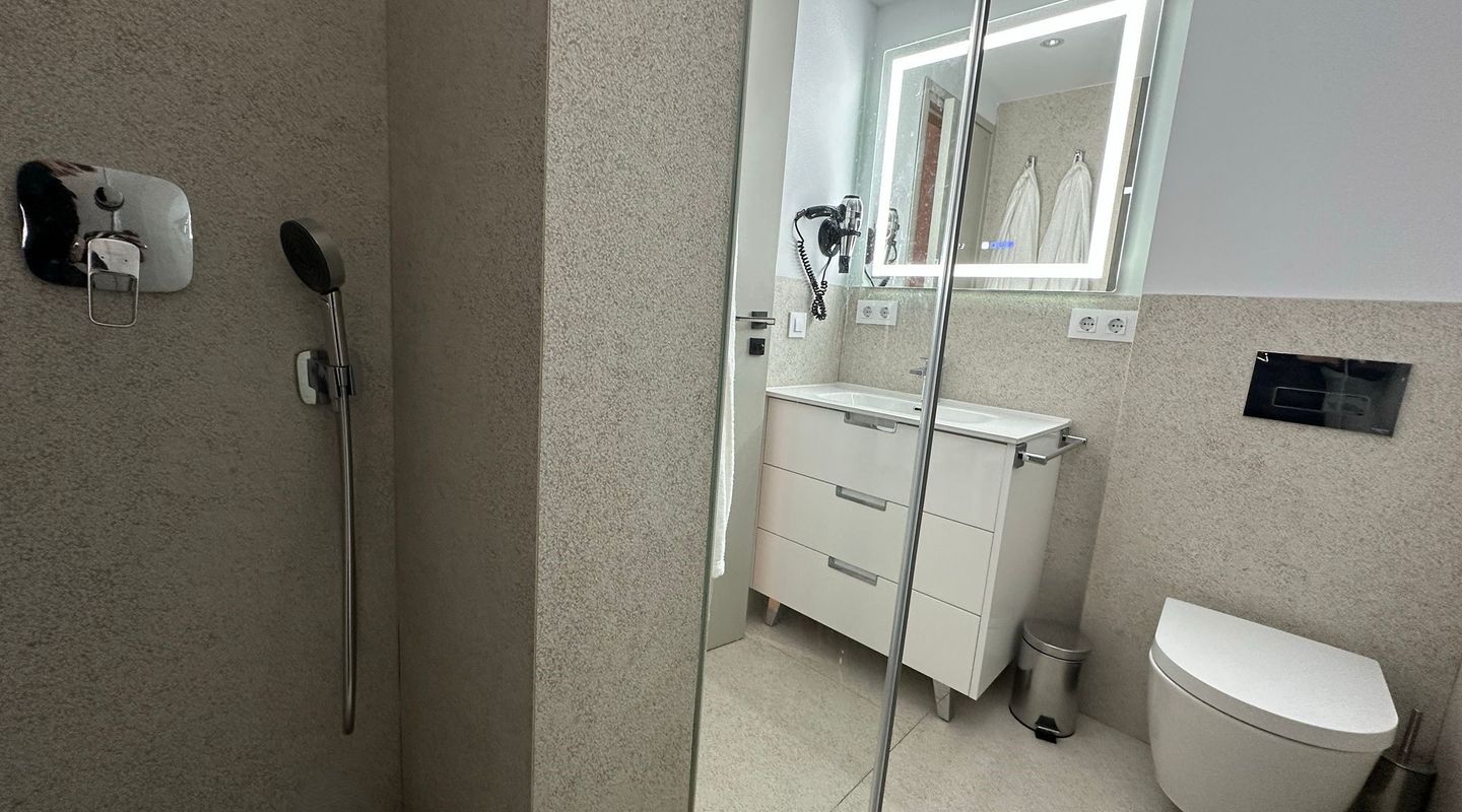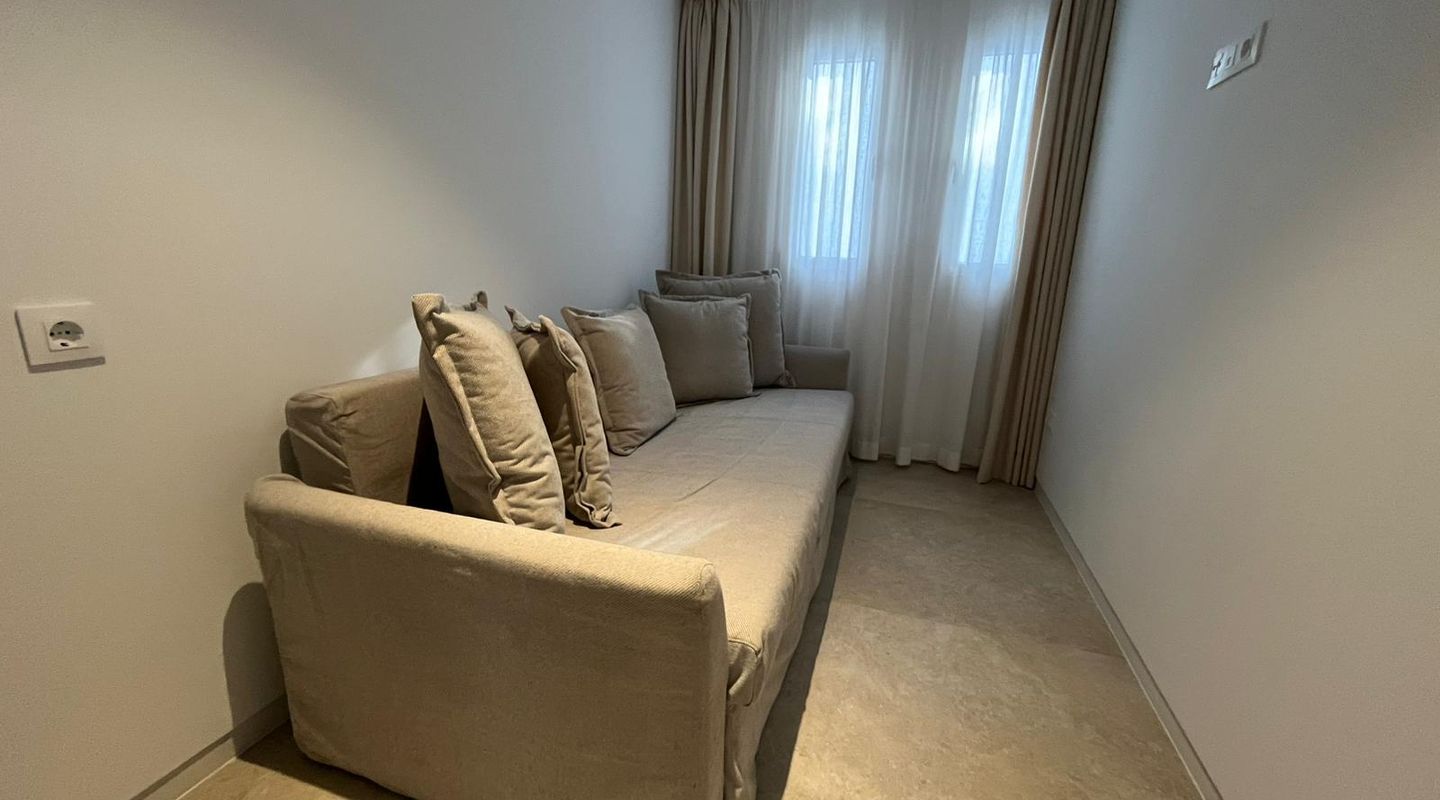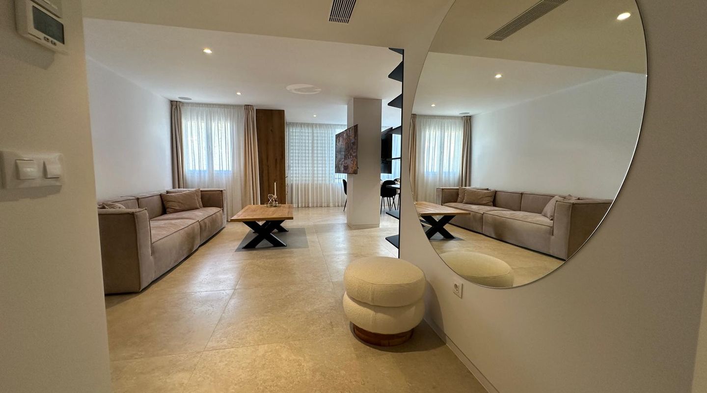 Introducing a premium, newly refurbished (2025) property, delivered fully finished and ready to move in. Available for long-term rental, the home features three bedrooms —one with a sofa bed— and two bathrooms. It comes fully furnished with high-end décor, a fully equipped kitchen with an invisible stove, central heating, underfloor heating, separate AC in the bedrooms, air purification system, osmosis, and Bluetooth speakers in two rooms and the living room.