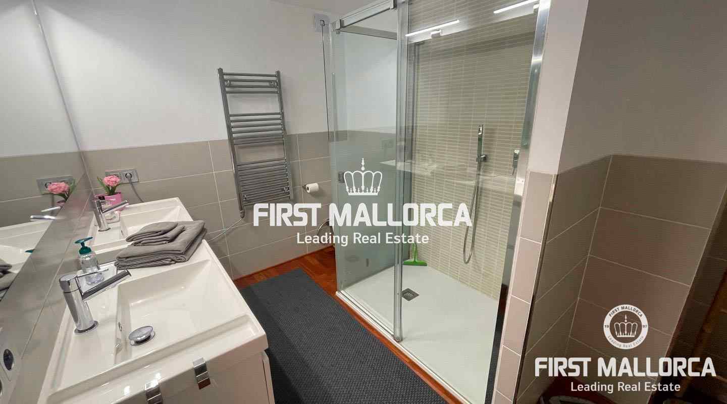 The modern, bright and completely renovated apartment in 2018 offers a cozy living and dining room with spacious balcony and a fully equipped kitchen. It also has two bedrooms and two bathrooms (1 en suite), all rooms have built-in wardrobes. There is also a dressing room / office which can also be used as a bedroom. There is parquet flooring throughout the apartment, and there is hot / cold air conditioning in the bedrooms and the living room. Furthermore there is a satellite connection for the TV, washing machine and dryer are also available.