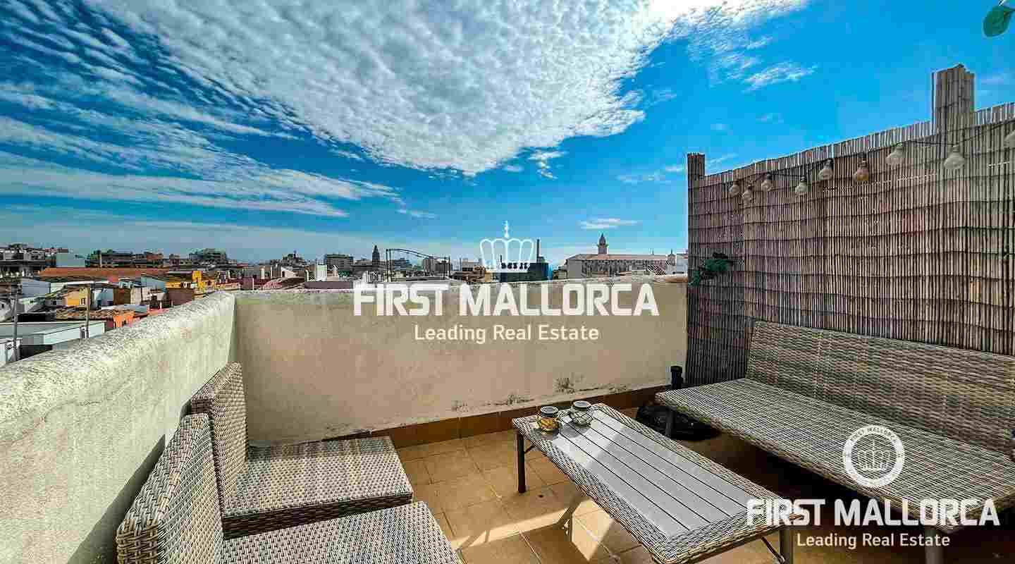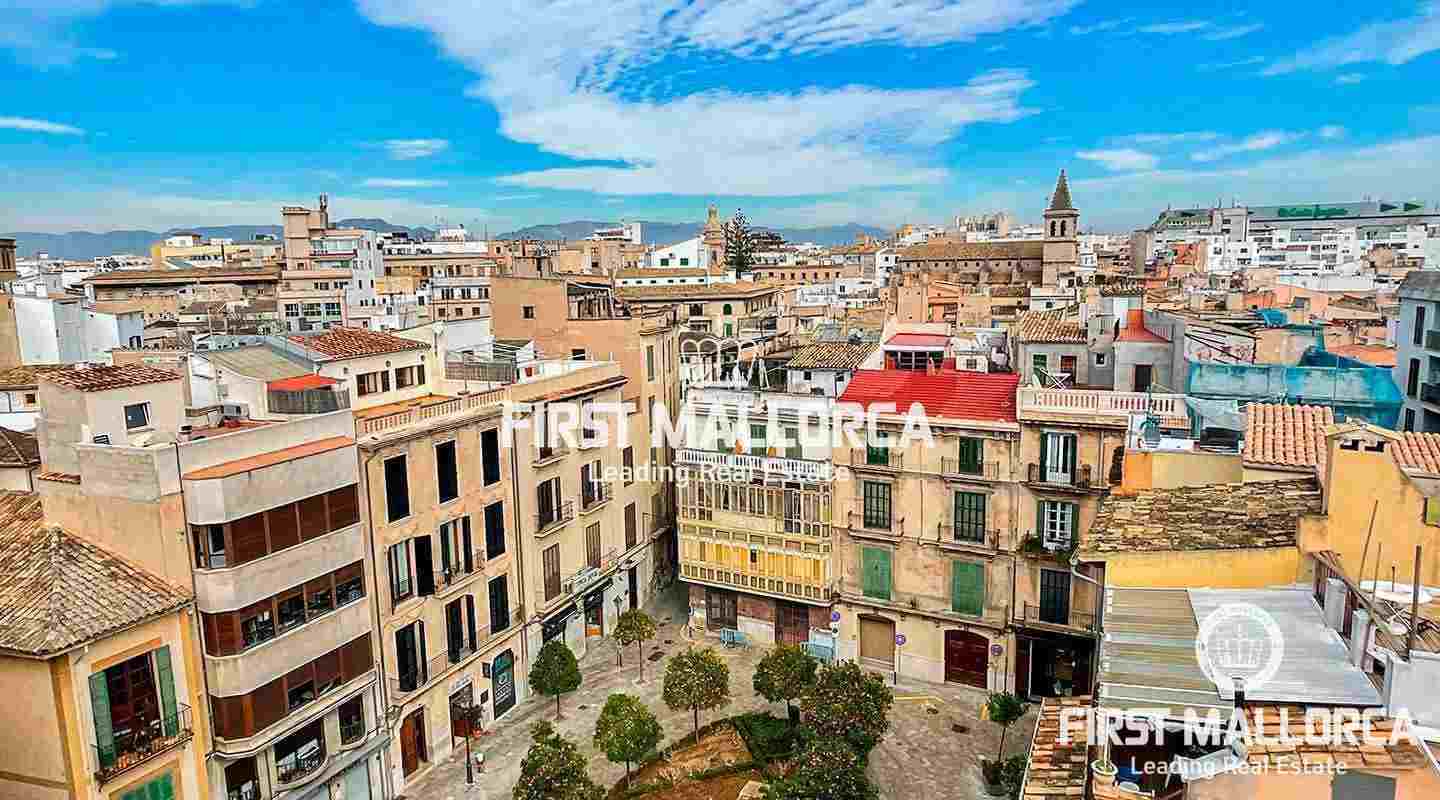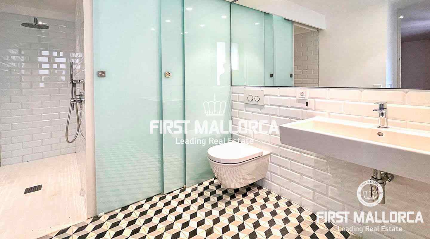 This apartment dated from the beginning of last century has been completely rebuild to a very high standard. It has 2 bedrooms, the master suite with a big wardrobe and en Suite bathroom, another room wich can be used as a 3rd bedroom, as an office or as dining room, big open kitchen with island. It has as well a big storage room on the roof. It's located in a building with only 9 neighbours wich has 3 roof terraces, one of them with stunning views to the bay of Palma.