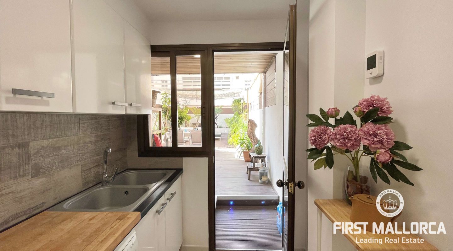 Newly renovated apartment of 75 meters habitable and 60 meters of private courtyard. Two double bedrooms with fitted closets, and a bathroom with shower. From the kitchen there is access to the inner courtyard decorated in a very nice way, and receives direct light during most of the day. The property is located in the Bons Aires area, and steps from the famous Blanquerna street. The rental price includes a parking space in the same building, community fees and water. The building has an elevator.
