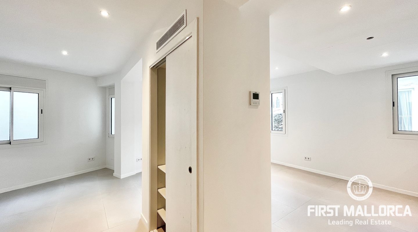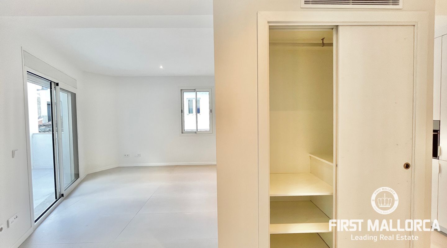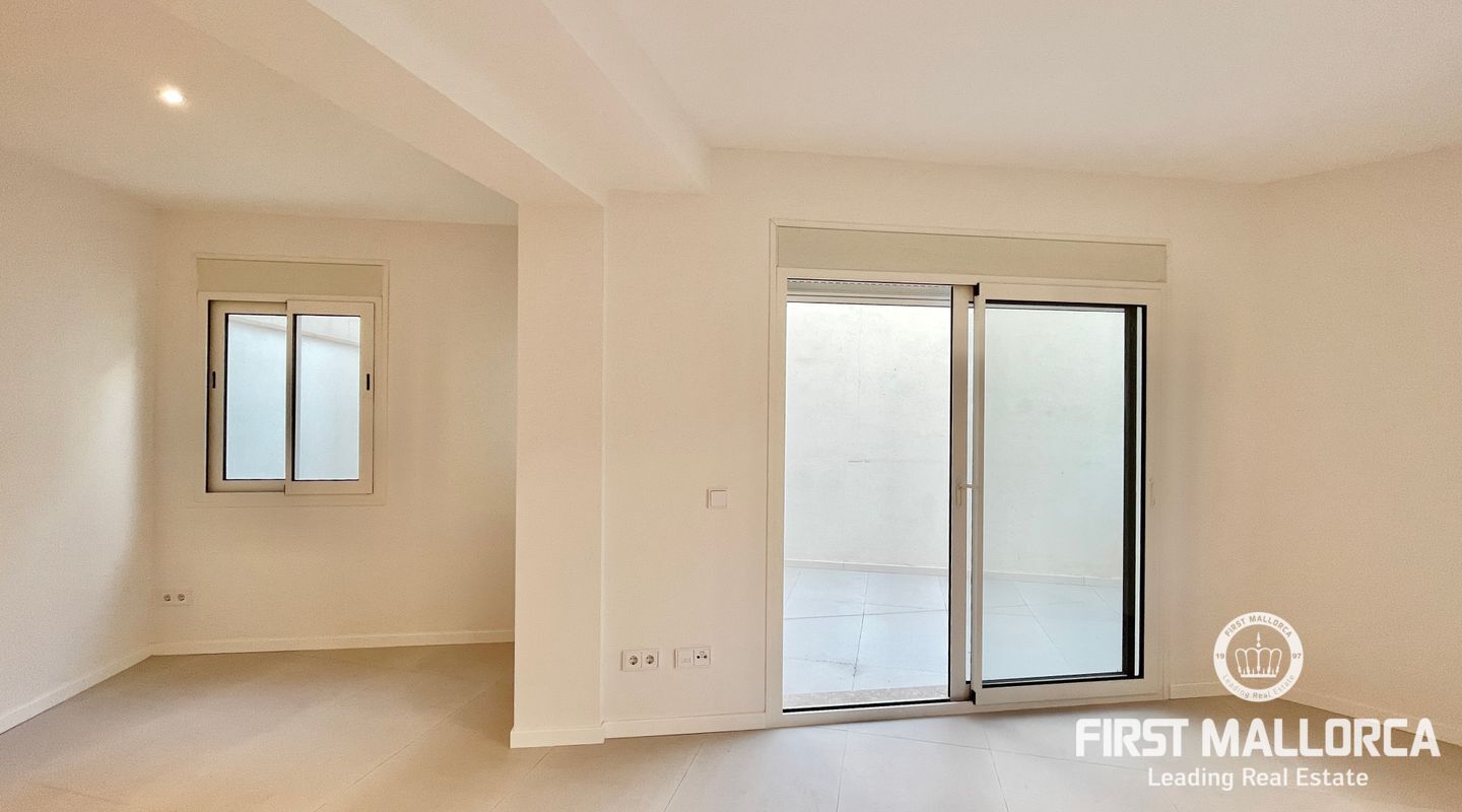 The living room with an integrated kitchen has access to a 15m2 interior patio that could become a very cozy outdoor lounge, small BBQ area, or both.
