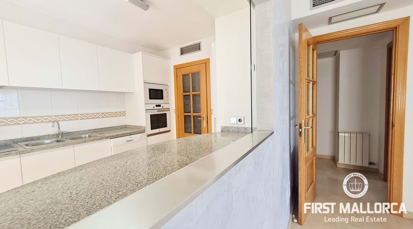 This beautiful apartment, complete with a renovated kitchen, is located in the Bonanova neighborhood with stunning views of the sea. It comprises a living room, a fully equipped kitchen, and four bedrooms. The main bedroom is double-sized with fitted wardrobes and an en-suite bathroom. The other three bedrooms share a bathroom and are distributed in the second part of the house. The property also features a glazed terrace and a smaller one connected to the kitchen. It is available for long-term rental, unfurnished, and includes a garage space and storage room.. For more information, do not hesitate to contact the First Mallorca rental department.