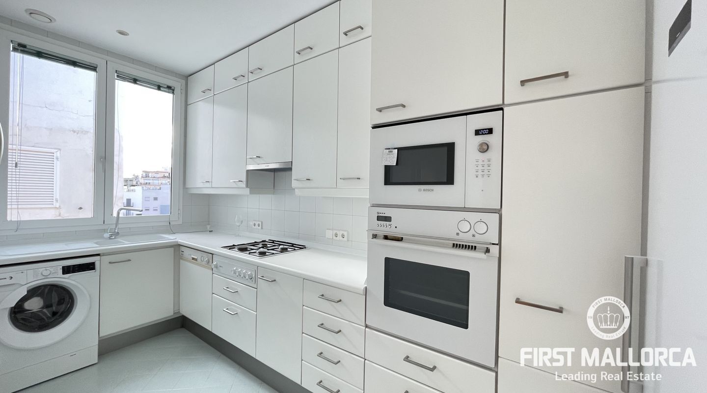 Spectacular recently renovated Penthouse in the center of Palma de Mallorca, with high quality materials, located just 2 minutes walk from the prestigious Corte Inglés de Avenidas shopping center, on the fourth floor with elevator. This apartment has 2 bedrooms with built-in wardrobes, a bathroom with shower, kitchen, and direct access to a large terrace, hot and cold air conditioning in each of the rooms and parquet floors.