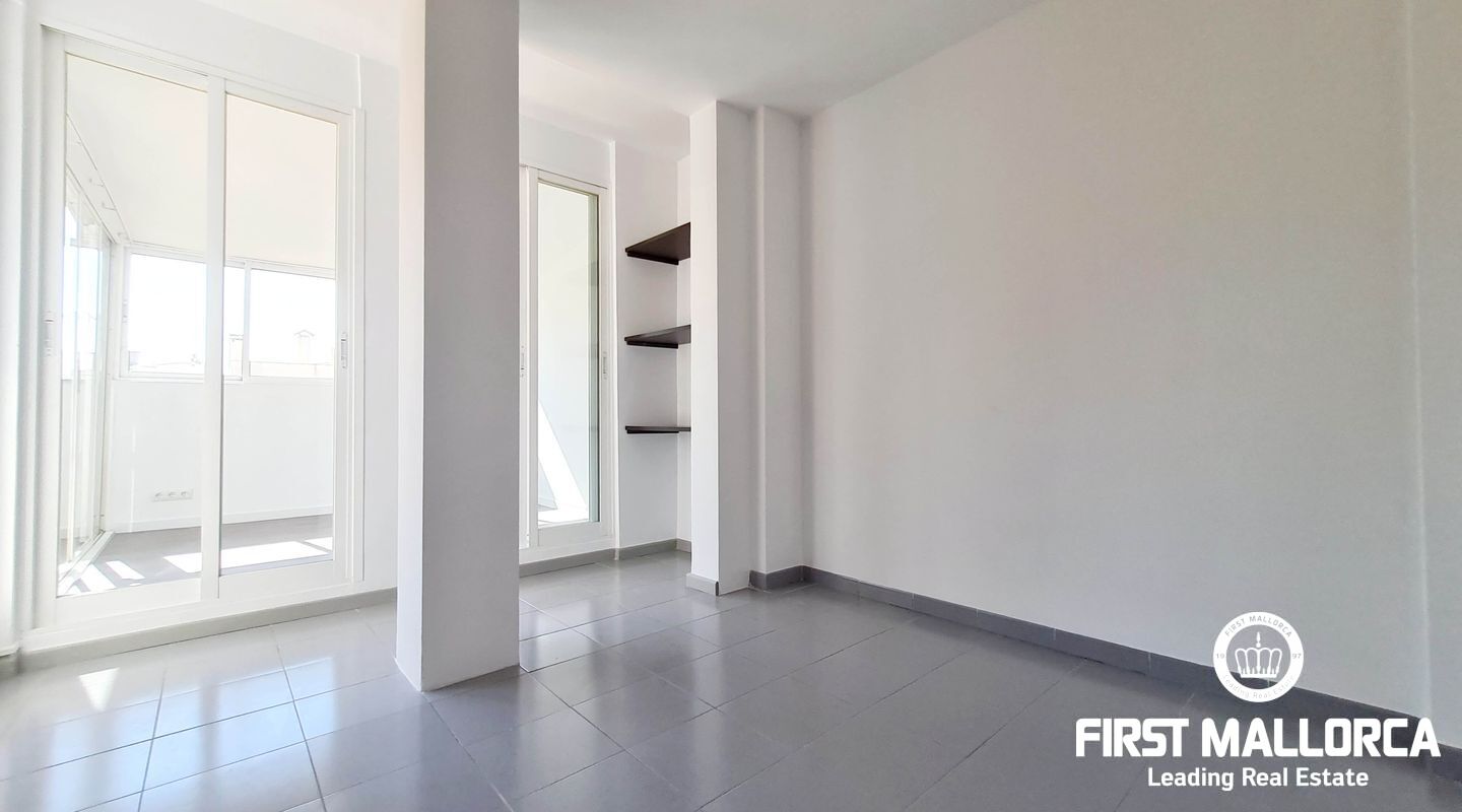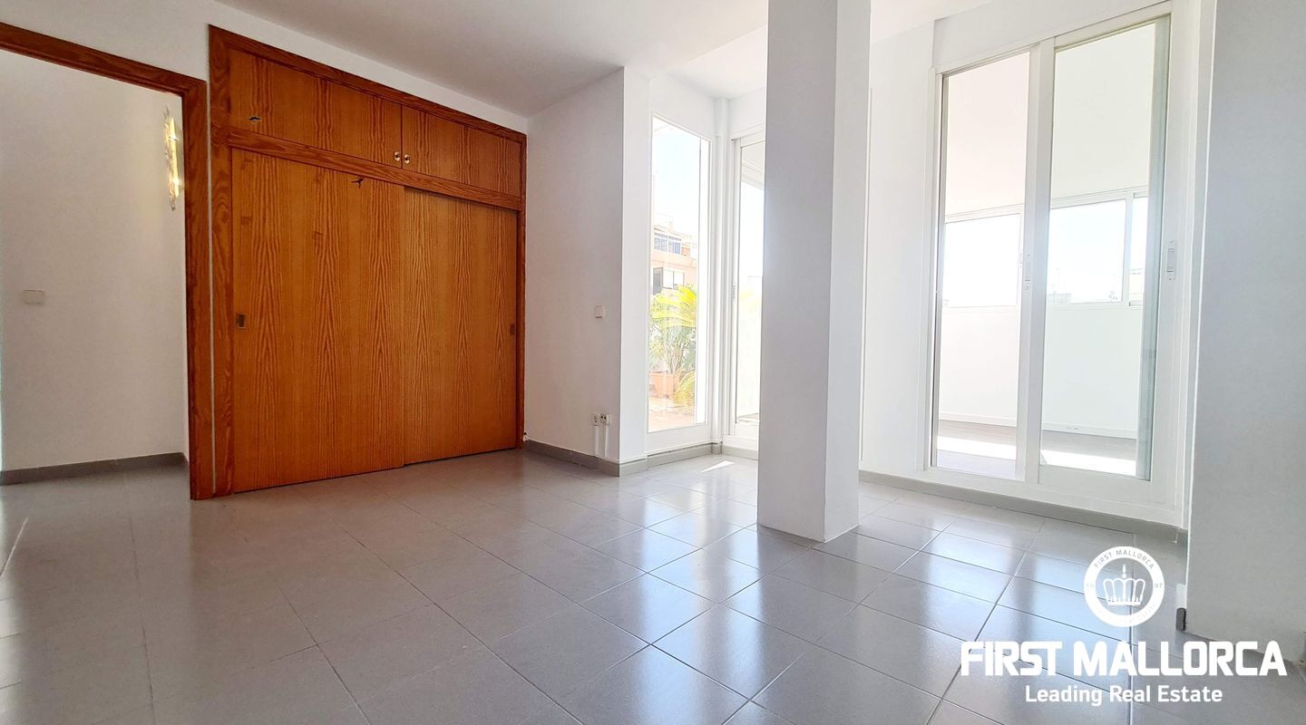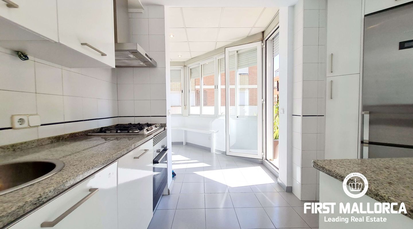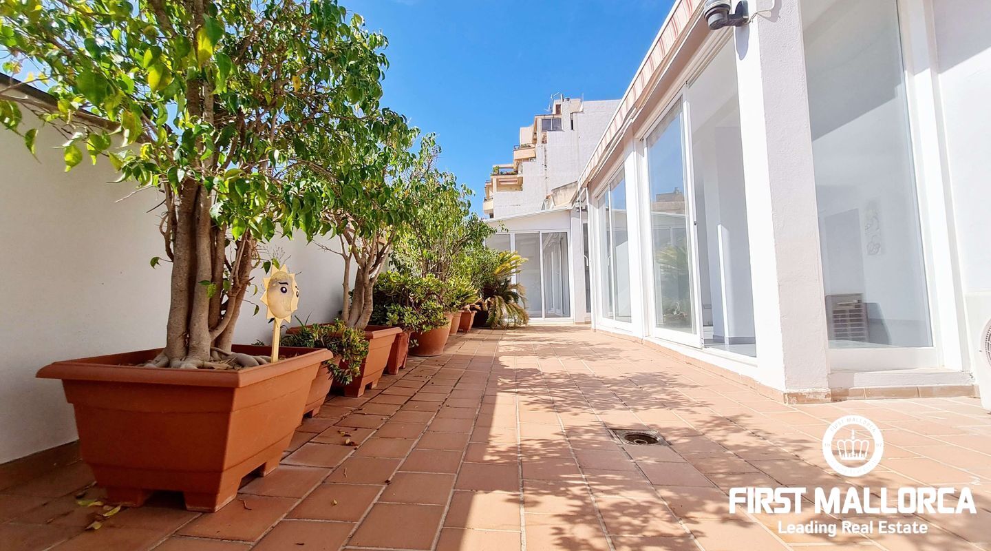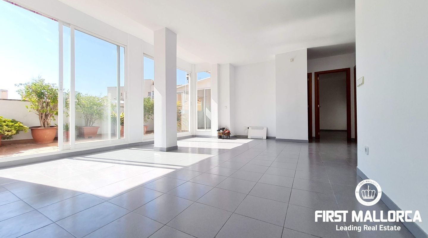 This spacious penthouse offers an exceptional living experience in the heart of Palma, just a short walk from the charming old town and near the vibrant Molinos area. The property boasts a large, bright living room seamlessly connected to an open-plan kitchen, perfect for modern living. With 2 bedrooms, 1 bathroom, and an additional studio space ideal for an office or extra room, this penthouse offers versatility and comfort. Flooded with natural light, the penthouse is surrounded by a large terrace, providing a stunning outdoor space for relaxation and entertainment. Extra features include a storage room. Parking included. This long-term rental is offered unfurnished, and please note that pets are not allowed. For more information or to arrange a viewing, please contact First Mallorca rental agents.
