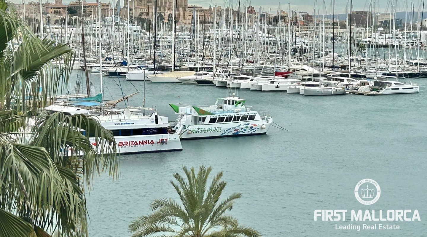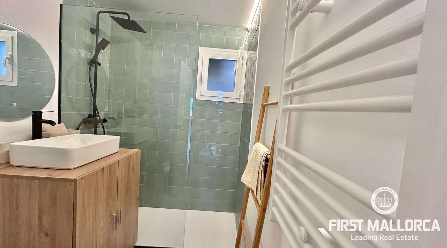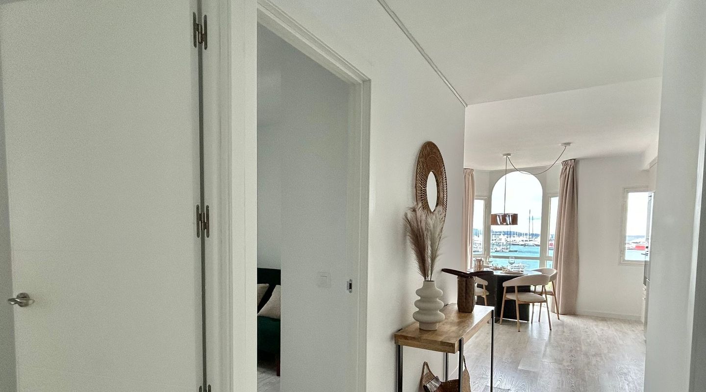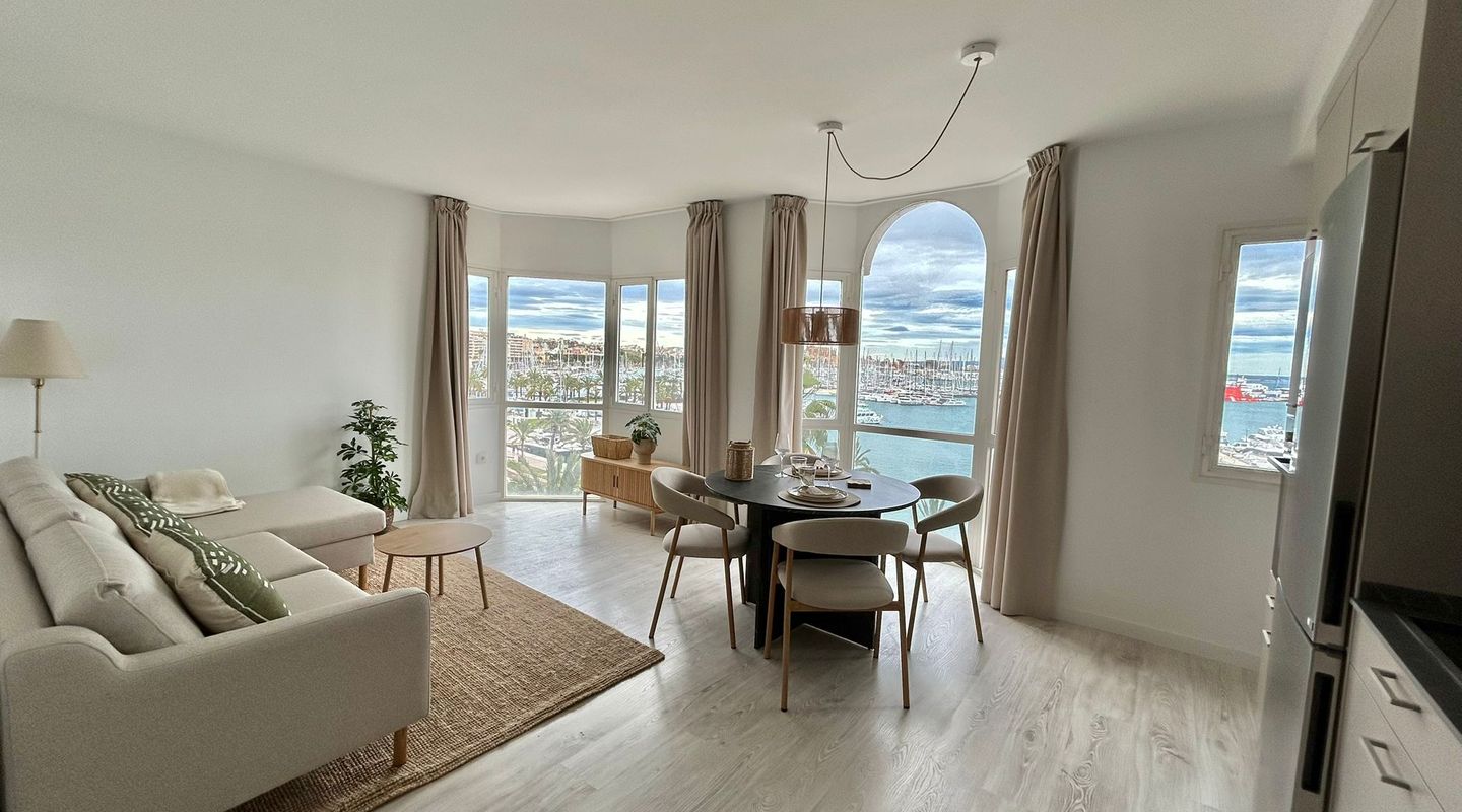 73 m2 apartment, completely exterior, with a spacious living room-veranda, with stunning panoramic views of the entire bay and lots of natural light, on the seafront promenade. Property in very good condition, completely renovated in 2026. Brand new furnishings and fittings. Two bedrooms with fitted wardrobes, 1 bathroom and open-plan living room and kitchen. Air conditioning and heating in all rooms. Communal swimming pool, parking, bicycle storage room, laundry area. Concierge in the building, high-end community. Short or long-term contract. Please consult the terms and conditions with First Mallorca's rental agents.