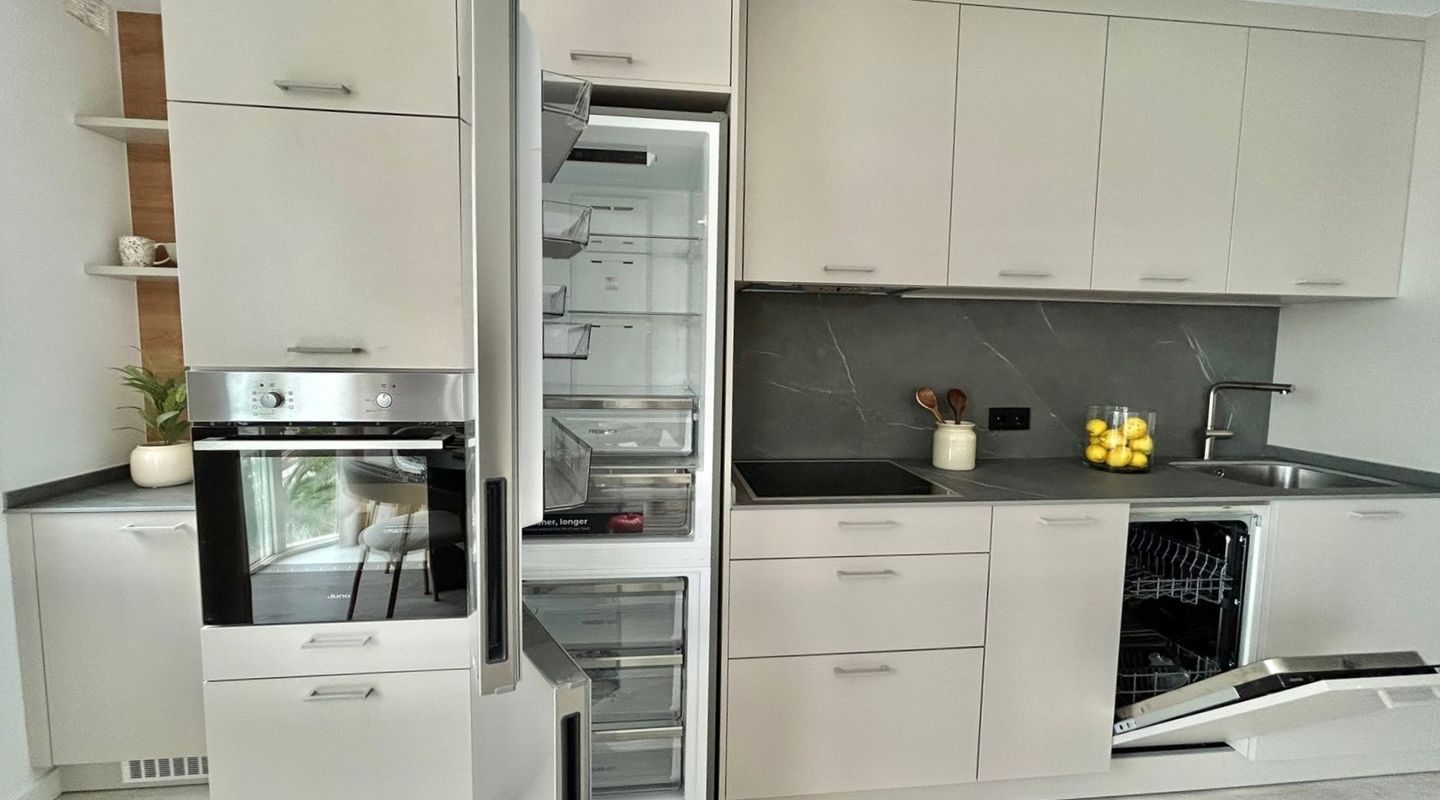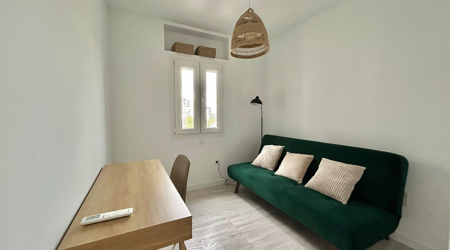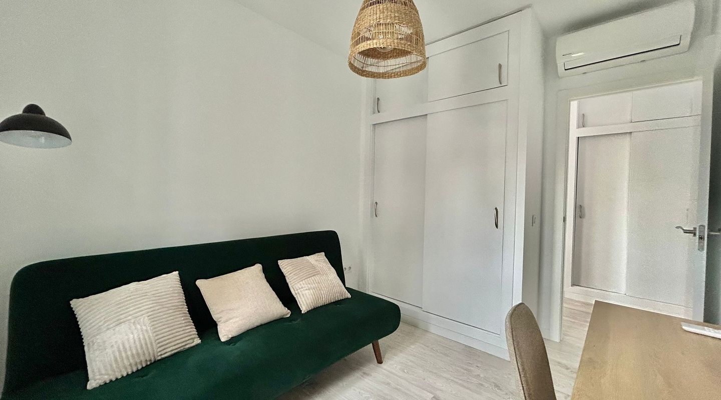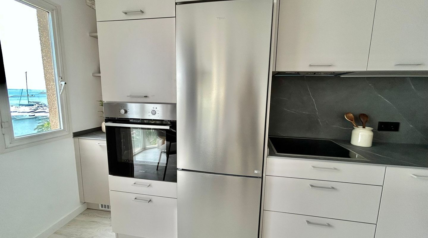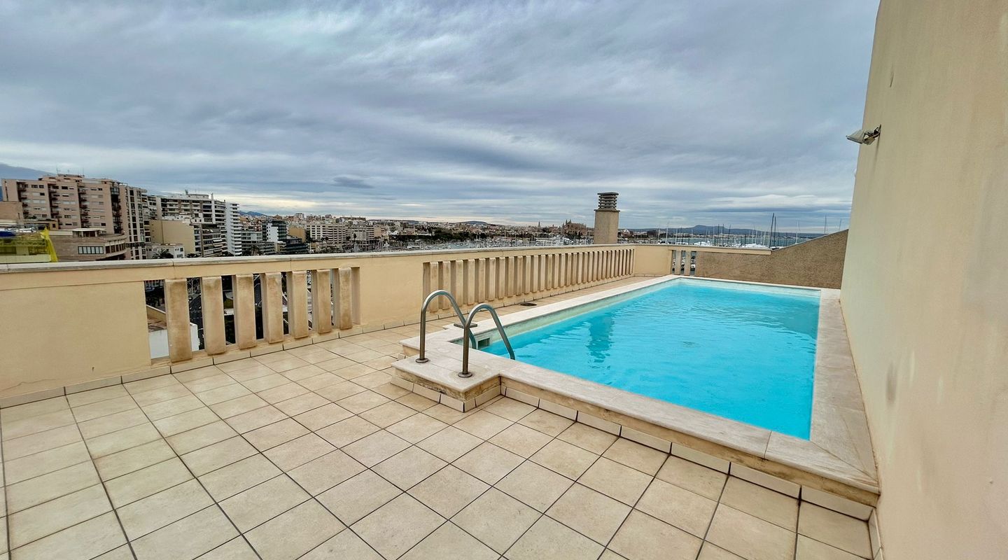73 m2 apartment, completely exterior, with a spacious living room-veranda, with stunning panoramic views of the entire bay and lots of natural light, on the seafront promenade. Property in very good condition, completely renovated in 2026. Brand new furnishings and fittings. Two bedrooms with fitted wardrobes, 1 bathroom and open-plan living room and kitchen. Air conditioning and heating in all rooms. Communal swimming pool, parking, bicycle storage room, laundry area. Concierge in the building, high-end community. Short or long-term contract. Please consult the terms and conditions with First Mallorca's rental agents.