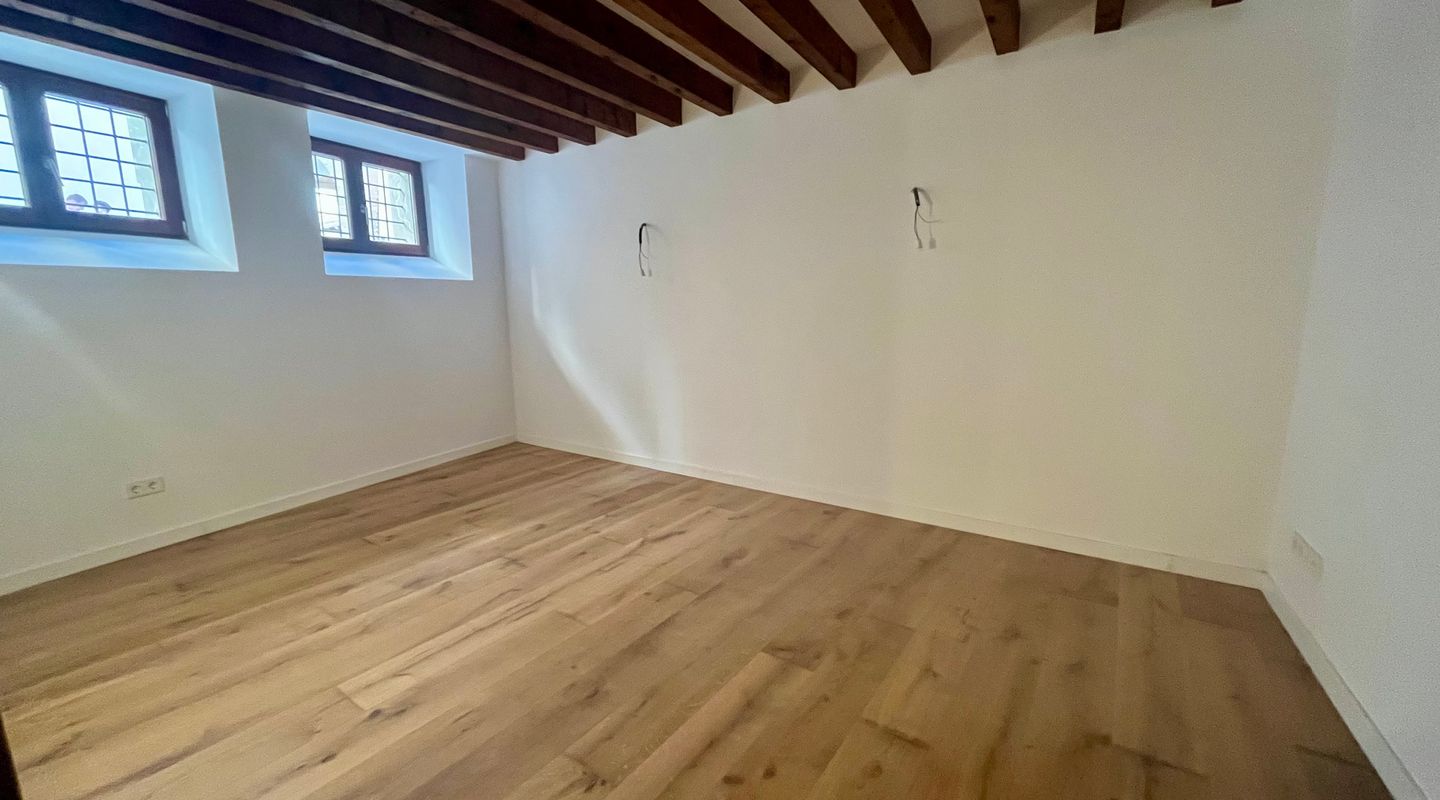 Discover this spectacular 214 m2 apartment offering the unique opportunity to live in an authentic restored medieval palace in the heart of the Old Town. The home combines original Gothic elements with a high-quality modern renovation completed in 2020. The layout features a spacious living room with high ceilings and exposed wooden beams, a generous dining area, and a brand-new designer kitchen valued at 30.000 €. A convenient guest toilet is located on the first floor, while the sleeping area comprises three spacious bedrooms, each with its own en-suite bathroom to ensure maximum privacy and comfort.Unlike other properties in the historic center, this apartment stands out for its absolute tranquility and functionality. It is located on a dead-end street, free from traffic noise, and is part of an exclusive community of only four neighbors that includes an elevator for added convenience. For climate comfort, the property features underfloor heating, electric radiators, and a fireplace pre-installation, maintaining an ideal temperature thanks to its thick ancient walls.