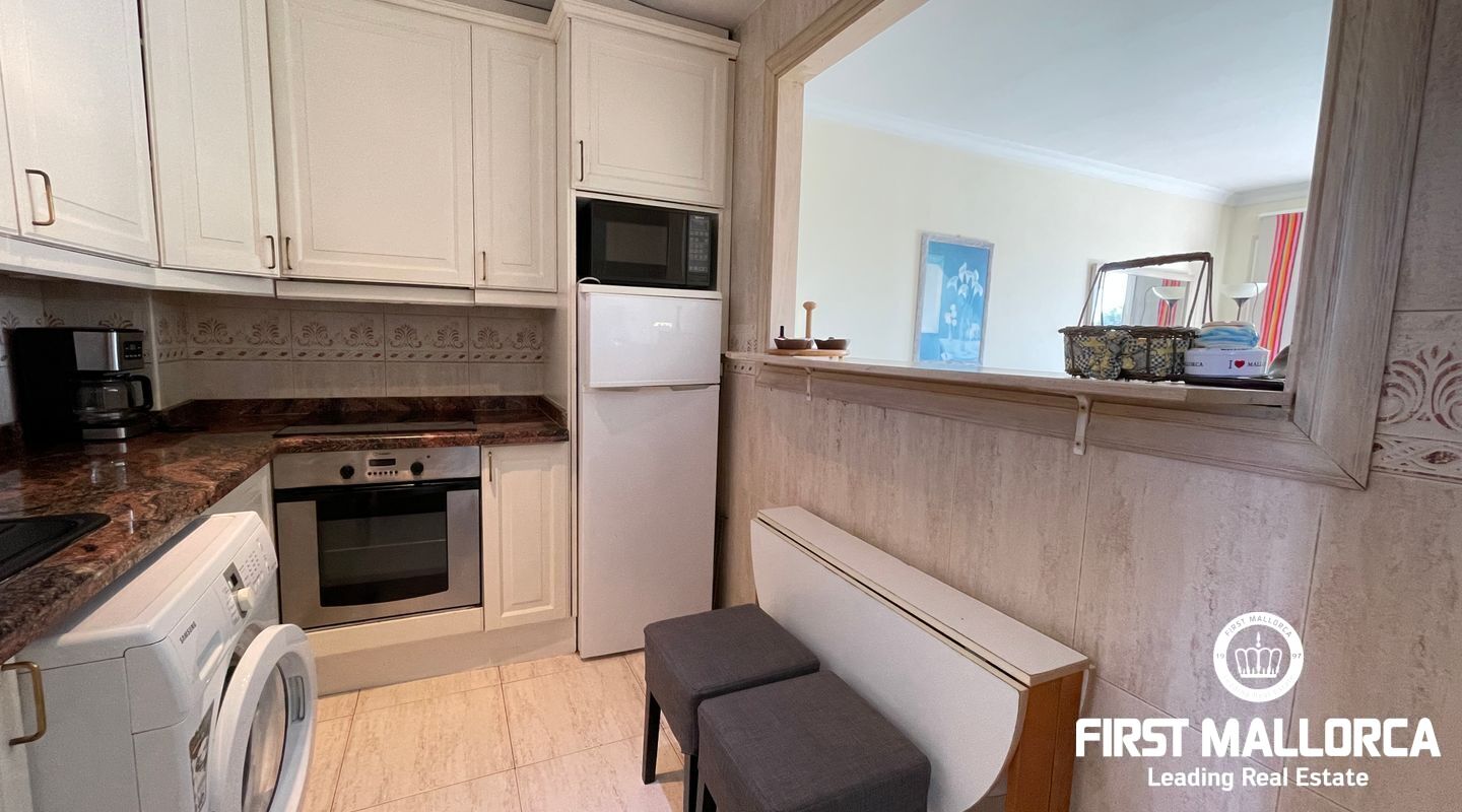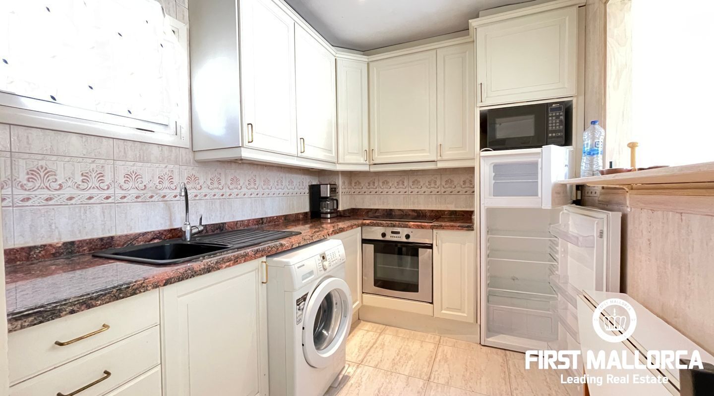 From its cosy covered terrace you can enjoy the wide sea views and the great luminosity with large windows with double glazing. This flat has one bedroom and is fully furnished, has a bathroom with shower and a kitchen with all appliances available, air conditioning hot and cold, really ready to move in. It is rented for 10 to 11 months and the price includes 1 parking space. The extra costs are electricity, internet and community fees of 45 euros per month including water. This property accepts small animals.