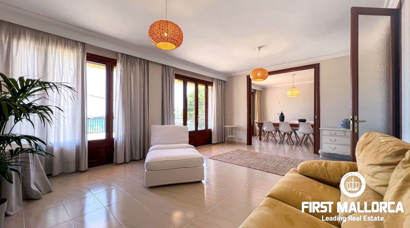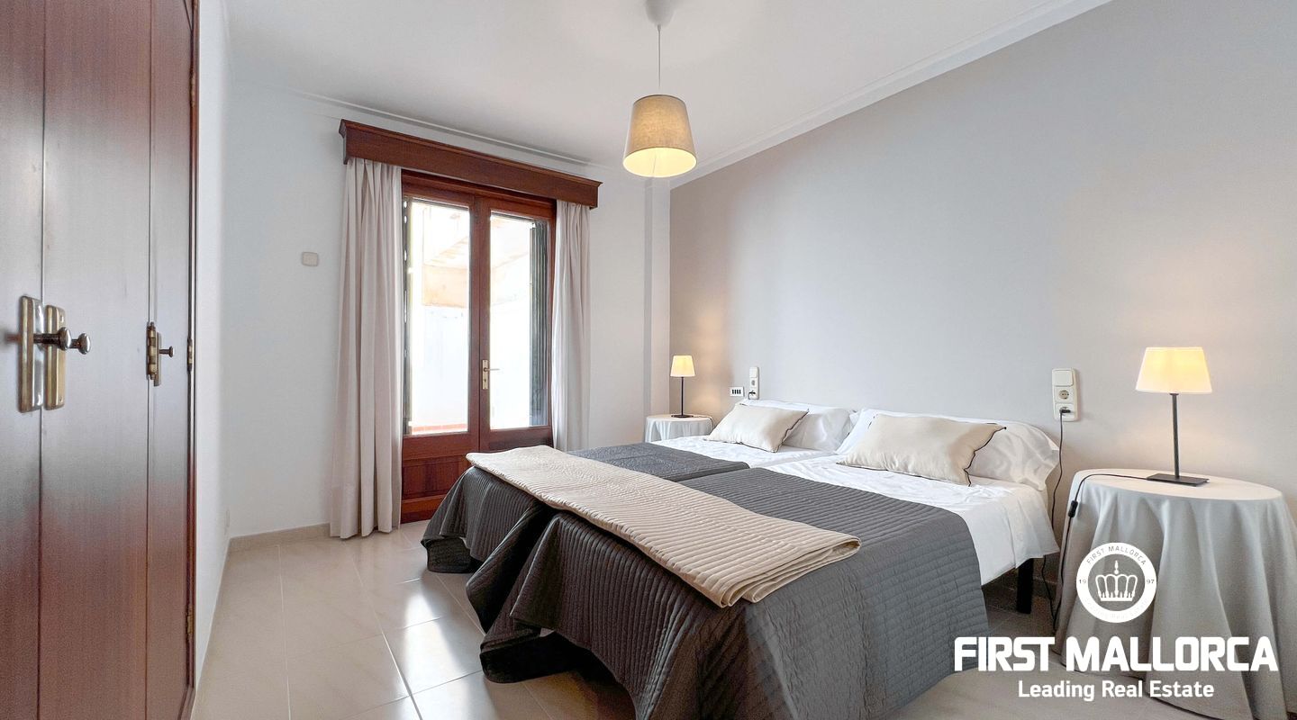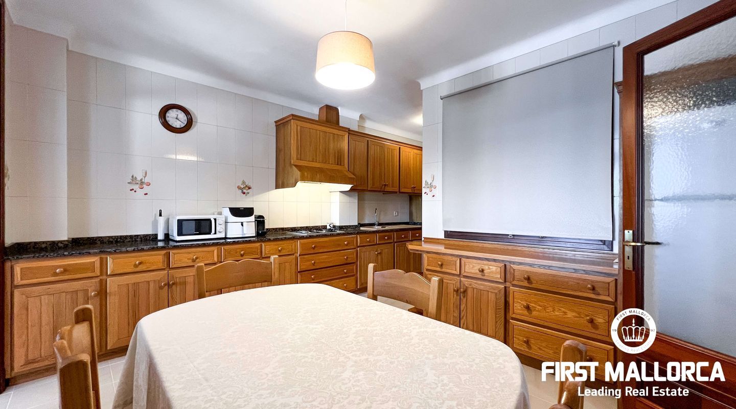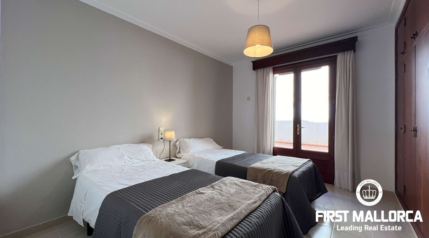 This exclusive flat in Porto Cristo is located on the first sea line and offers breathtaking views of the sea, the sandy beach and the harbour. With a total area of 159 square metres, it is perfect for families and impresses with its well thought-out room layout. The flat has three spacious bedrooms and two bathrooms (one of which is en suite) as well as a guest WC. Particularly noteworthy is the 80 square metre terrace, which offers an incomparable view of the sea. Another retreat is the 30 square metre patio, which offers you privacy. The flat is rented furnished and offers you all the amenities for a comfortable stay, which can last a maximum of 11 months. In addition to the living areas, there is a practical storage room equipped with a kitchenette and a private garage for your vehicle, which is accessible from the rear of the flat. Pets can be kept by arrangement with the owners, so your four-legged friends are also welcome. If you are looking for a dream flat for you and your family, don't hesitate and get in touch today. Seize the opportunity to live in this exceptional flat in Porto Cristo right by the sea and enjoy the Mediterranean flair.