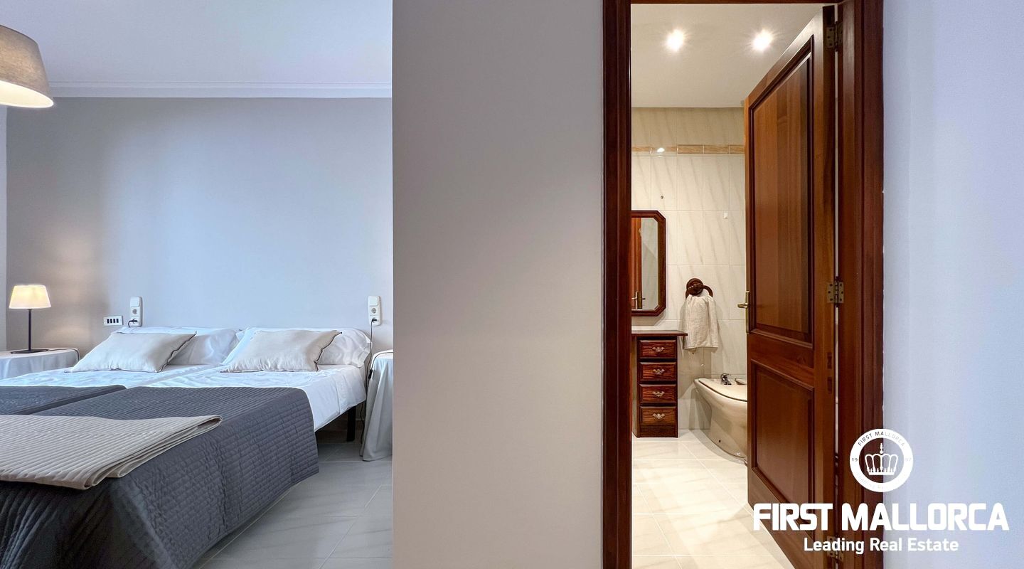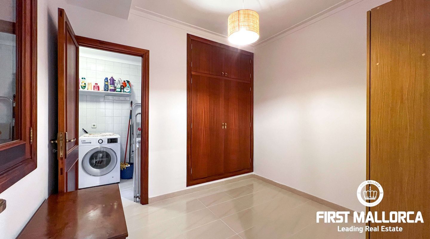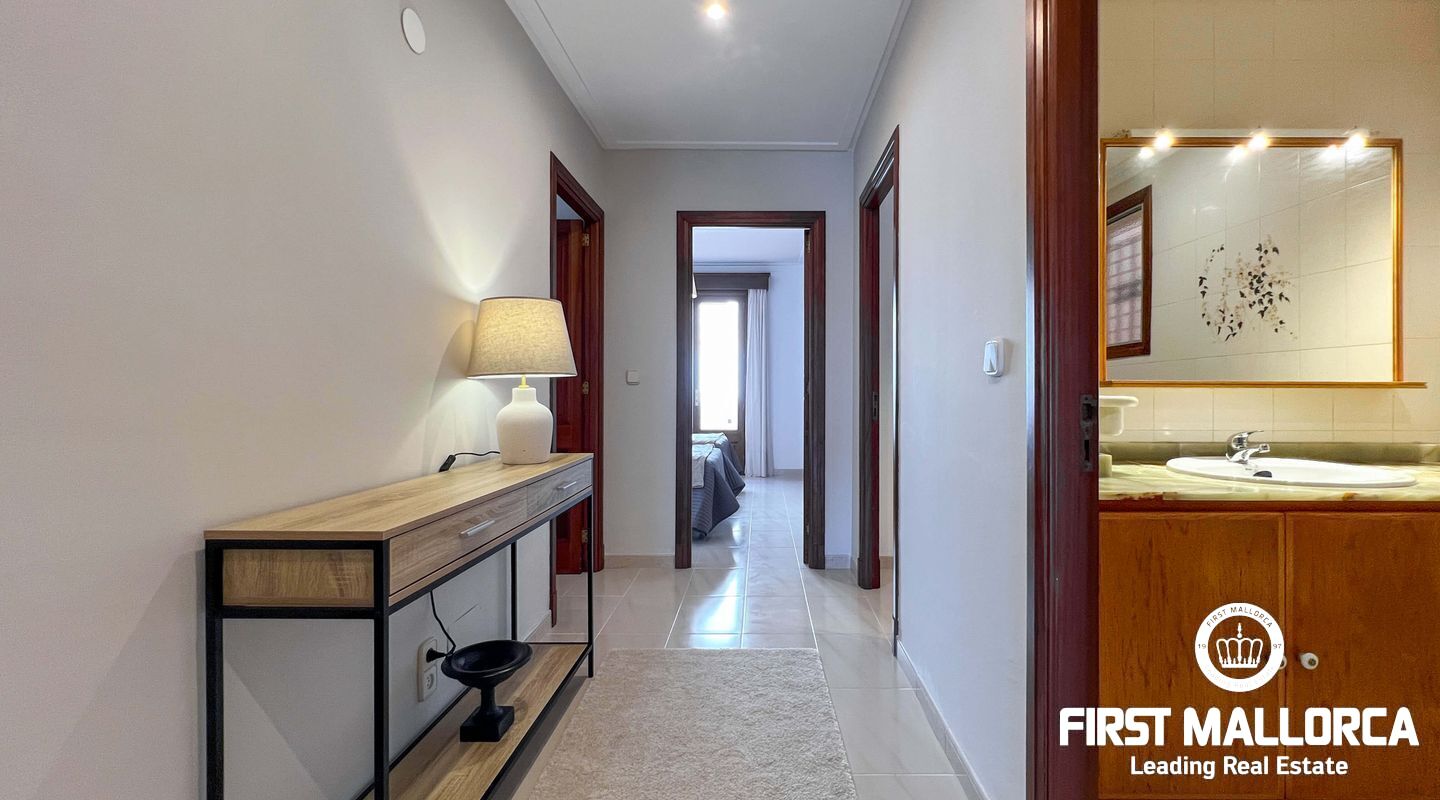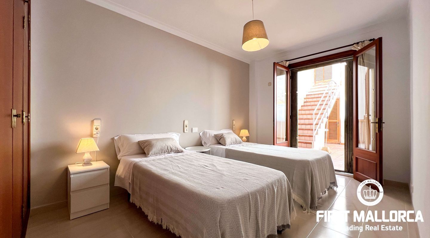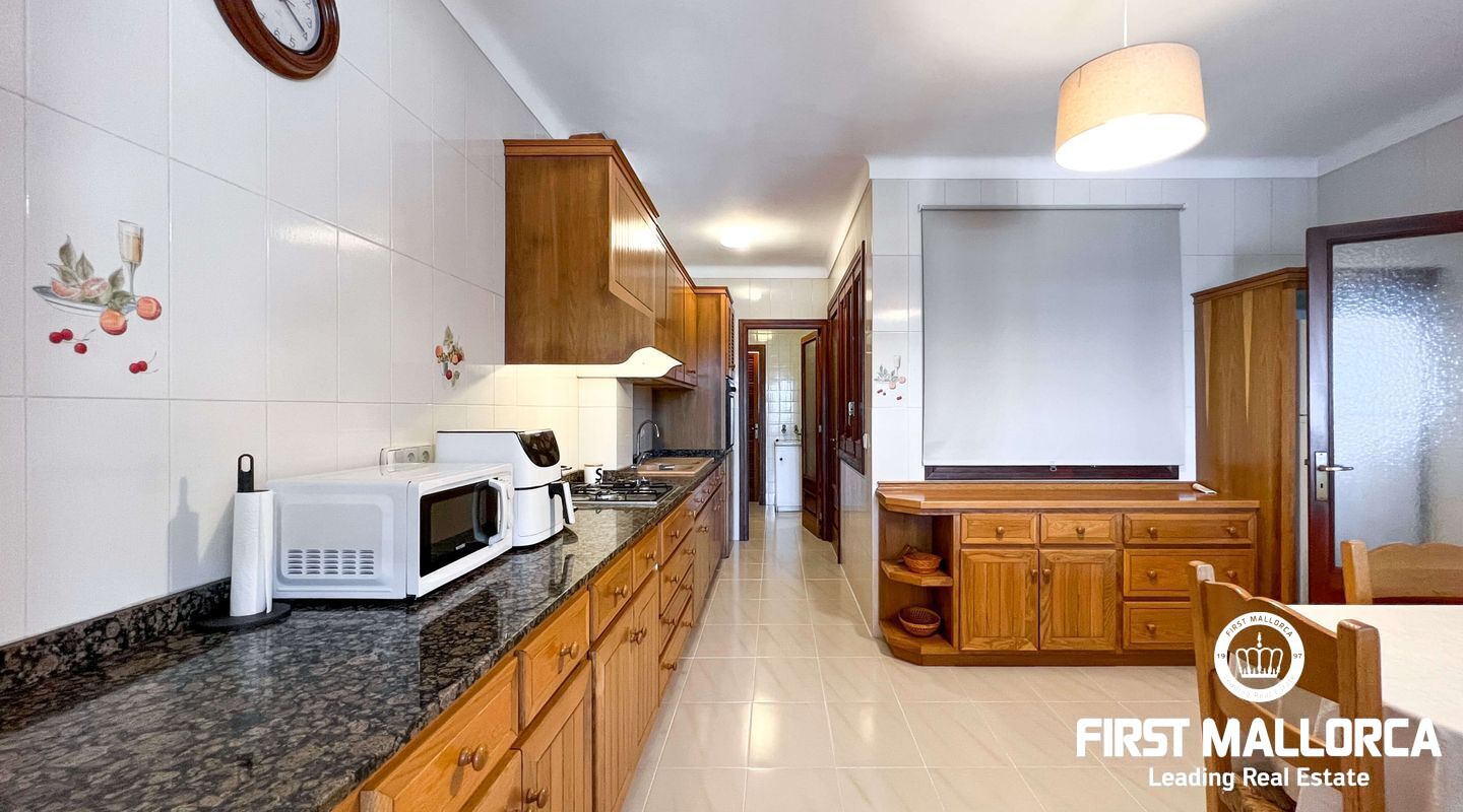 This exclusive flat in Porto Cristo is located on the first sea line and offers breathtaking views of the sea, the sandy beach and the harbour. With a total area of 159 square metres, it is perfect for families and impresses with its well thought-out room layout. The flat has three spacious bedrooms and two bathrooms (one of which is en suite) as well as a guest WC. Particularly noteworthy is the 80 square metre terrace, which offers an incomparable view of the sea. Another retreat is the 30 square metre patio, which offers you privacy. The flat is rented furnished and offers you all the amenities for a comfortable stay, which can last a maximum of 11 months. In addition to the living areas, there is a practical storage room equipped with a kitchenette and a private garage for your vehicle, which is accessible from the rear of the flat. Pets can be kept by arrangement with the owners, so your four-legged friends are also welcome. If you are looking for a dream flat for you and your family, don't hesitate and get in touch today. Seize the opportunity to live in this exceptional flat in Porto Cristo right by the sea and enjoy the Mediterranean flair.