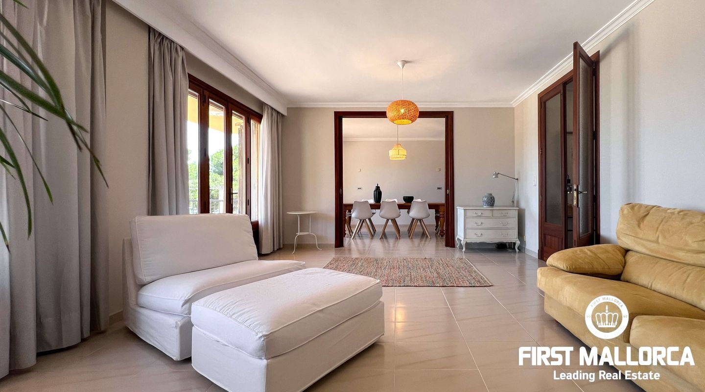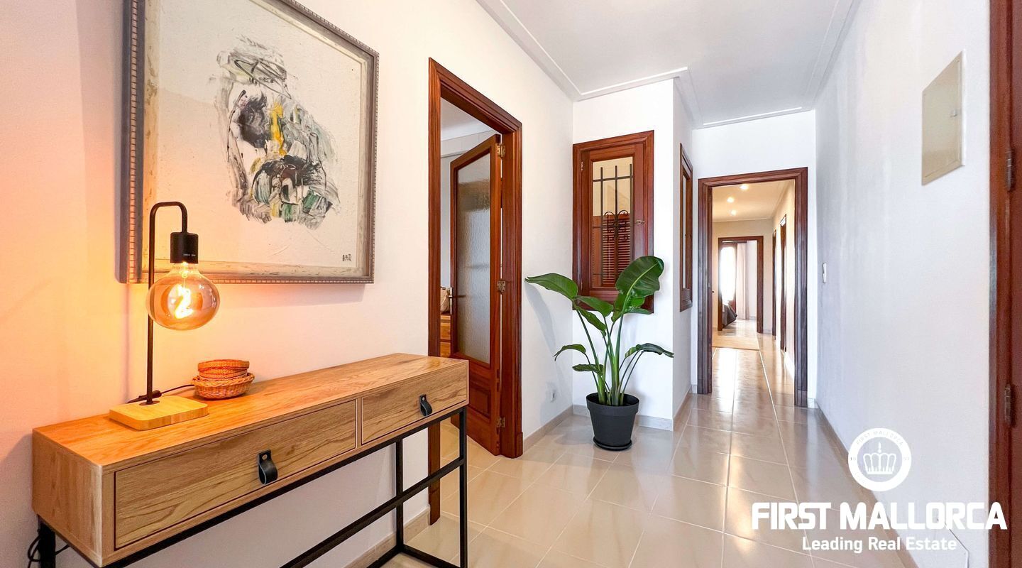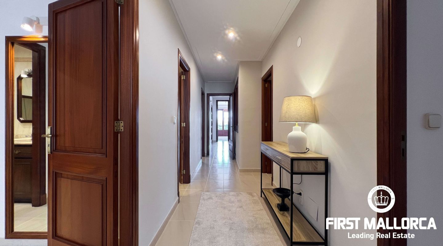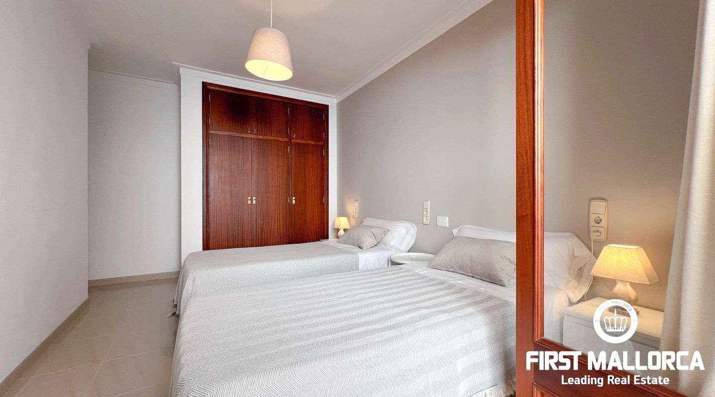 This exclusive flat in Porto Cristo is located on the first sea line and offers breathtaking views of the sea, the sandy beach and the harbour. With a total area of 159 square metres, it is perfect for families and impresses with its well thought-out room layout. The flat has three spacious bedrooms and two bathrooms (one of which is en suite) as well as a guest WC. Particularly noteworthy is the 80 square metre terrace, which offers an incomparable view of the sea. Another retreat is the 30 square metre patio, which offers you privacy. The flat is rented furnished and offers you all the amenities for a comfortable stay, which can last a maximum of 11 months. In addition to the living areas, there is a practical storage room equipped with a kitchenette and a private garage for your vehicle, which is accessible from the rear of the flat. Pets can be kept by arrangement with the owners, so your four-legged friends are also welcome. If you are looking for a dream flat for you and your family, don't hesitate and get in touch today. Seize the opportunity to live in this exceptional flat in Porto Cristo right by the sea and enjoy the Mediterranean flair.