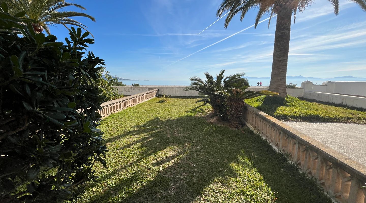 The property offers three bedrooms and two bathrooms, distributed over two floors for greater functionality and privacy. On the ground floor there is a spacious bedroom with an en-suite bathroom and direct access to the private garden and the beach – perfect for enjoying the Mediterranean lifestyle.