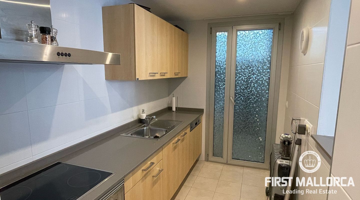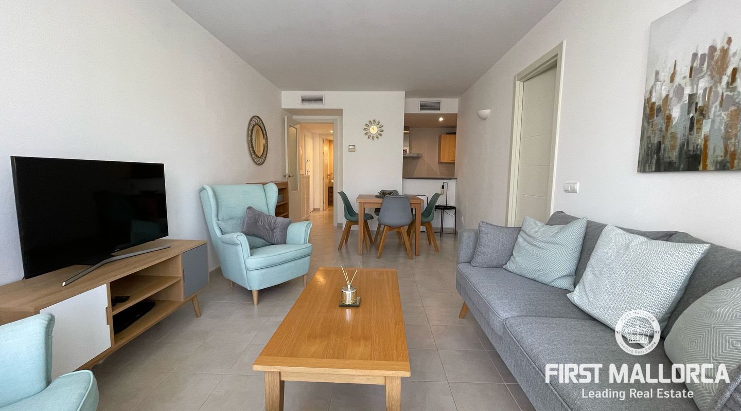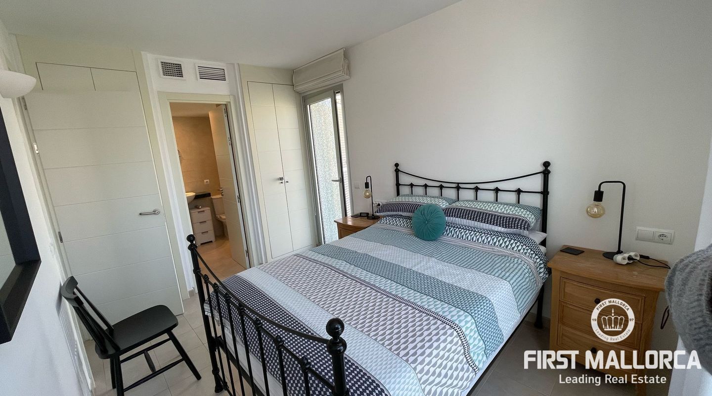 For rent all year round this fantastic modern flat only 100 metres from the sea and the Pine walk promenade. It consists of two double bedrooms with fitted wardrobes (one with double bed and the other with two single folding beds for storage), one en suite bathroom and another toilet, living-dining room, fully equipped kitchen, laundry room and communal pool. It also has two balconies and one with partial sea views. A/C hot/cold by conducts. Parking space and community fees included.