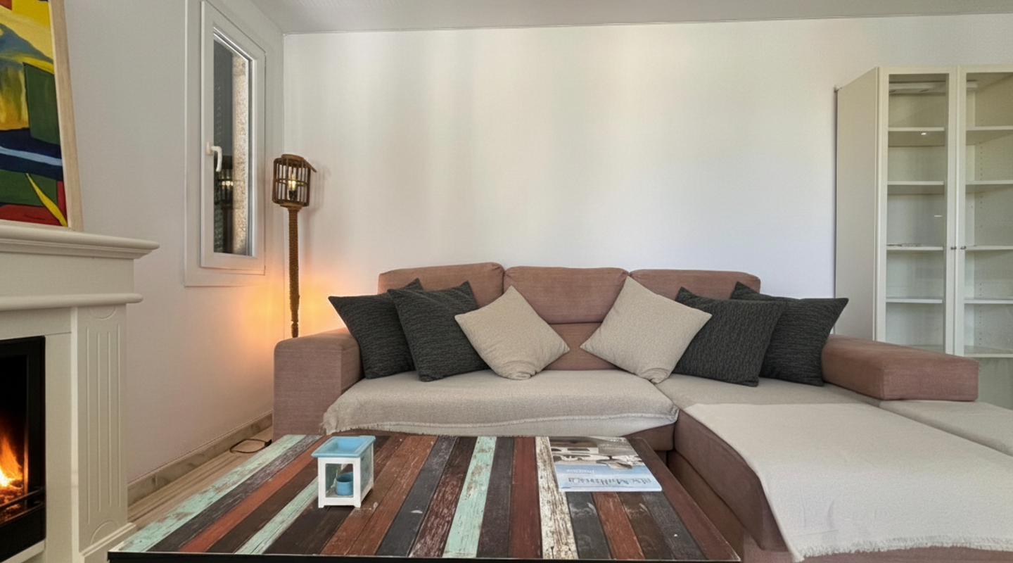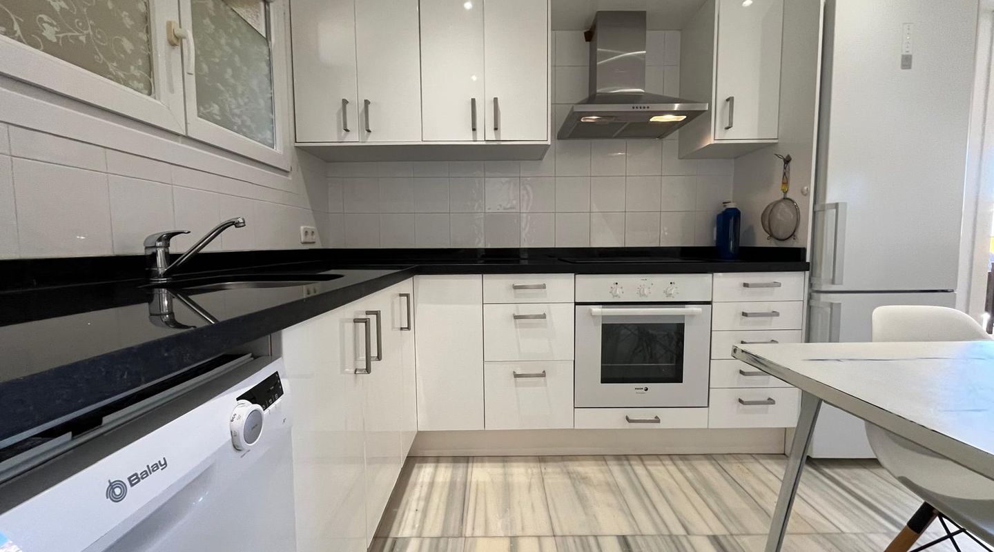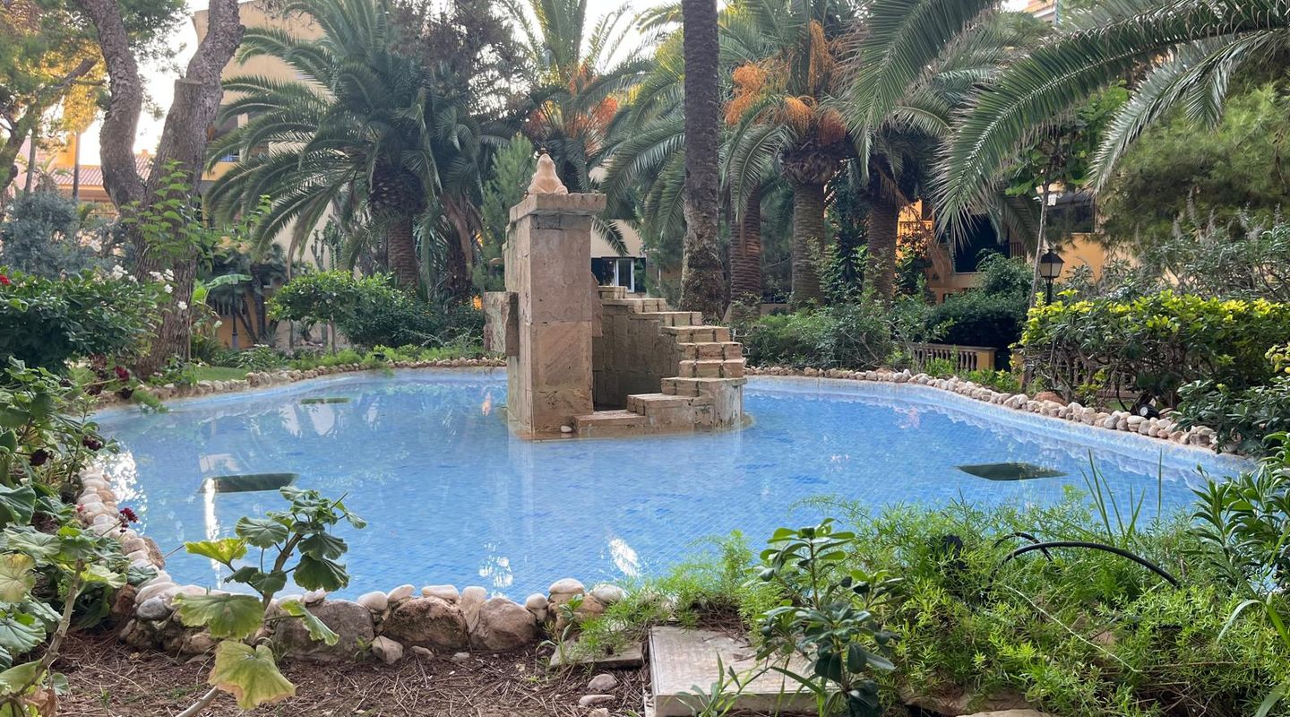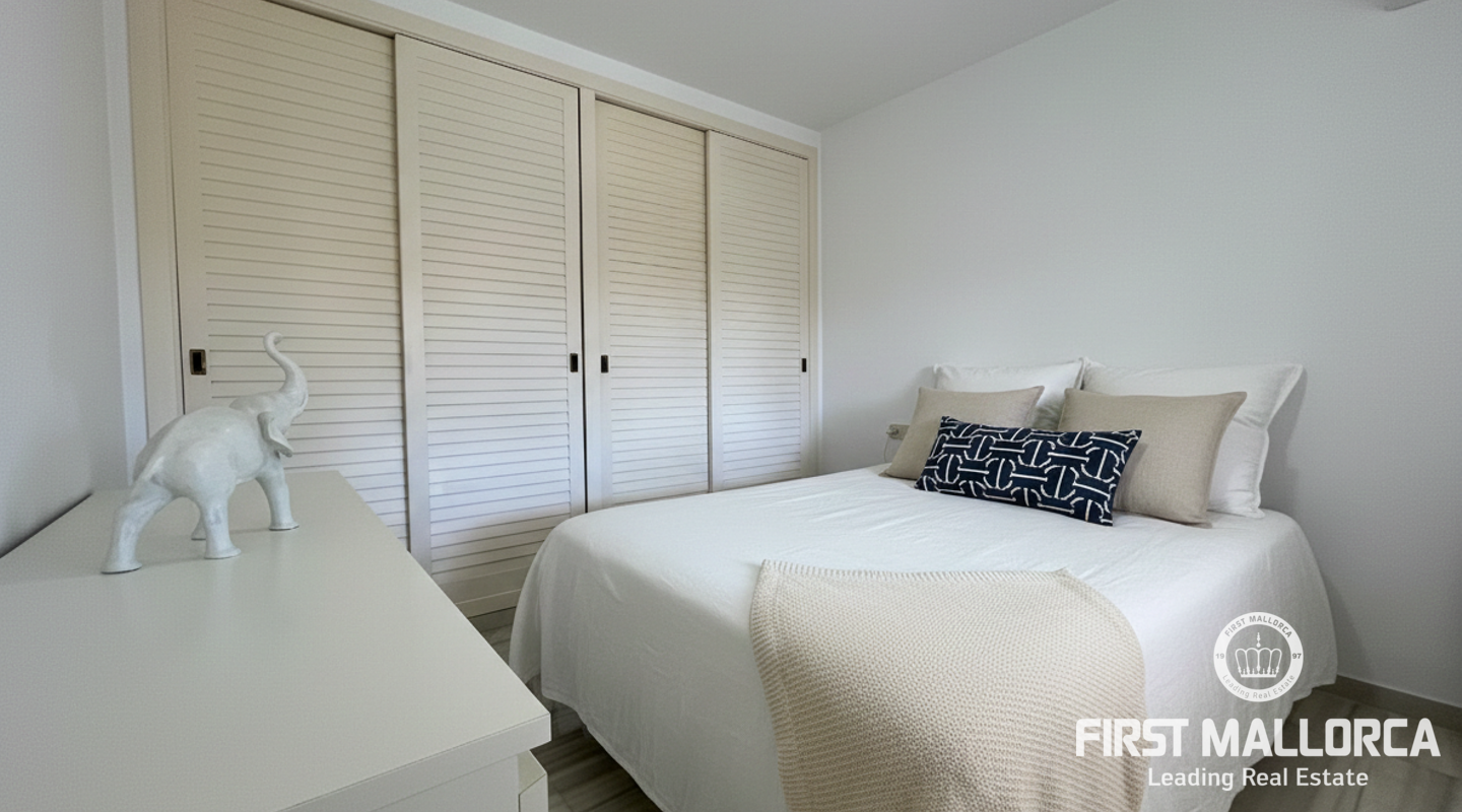 Bright apartment in the residential complex Ambassador Park with direct access to the sea and 2 coves in Nova Santa Ponsa, a luxury residential area on the southwest coast of Mallorca. The living space of approximately 90 m² is divided as follows: on the main level there is an entrance hall, a spacious living room with fireplace adjacent to a dining room and an open plan kitchen / dining room, 1 bedroom, 1 newly renovated bathroom and a laundry room. The living room has access to a covered terrace, from it the stairs lead to the private roof terrace solarium, ideal for sunbathing. Here you will find an additional bedroom with a bathroom, it is like a private apartment. The penthouse is equipped with 2 new air conditioning / heat, Climalit windows, marble floors and fitted wardrobes. The residential complex is located directly on the coast, offers concierge service, community parking, a garden with areas for children's games, and 2 swimming pools; the building has an elevator. A few minutes drive from the residence there are several shops, supermarkets and numerous restaurants with exquisite local and international cuisine. Several sandy beaches and yacht clubs, popular golf courses and the luxury marina Port Adriano can be reached in 5 minutes by car. 2 months guarantee, electricity is not included. Available from November 1st. Mínimum rental period of 11 months.