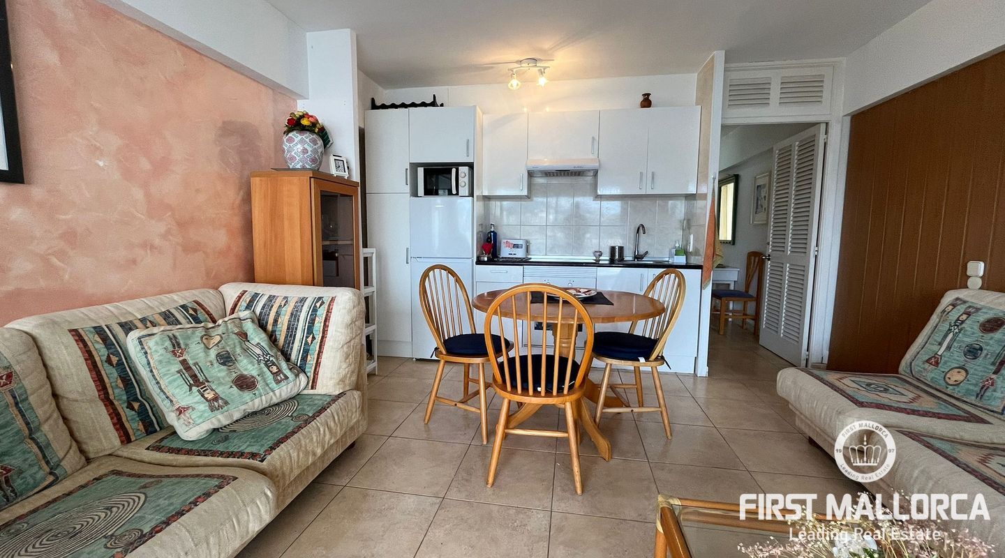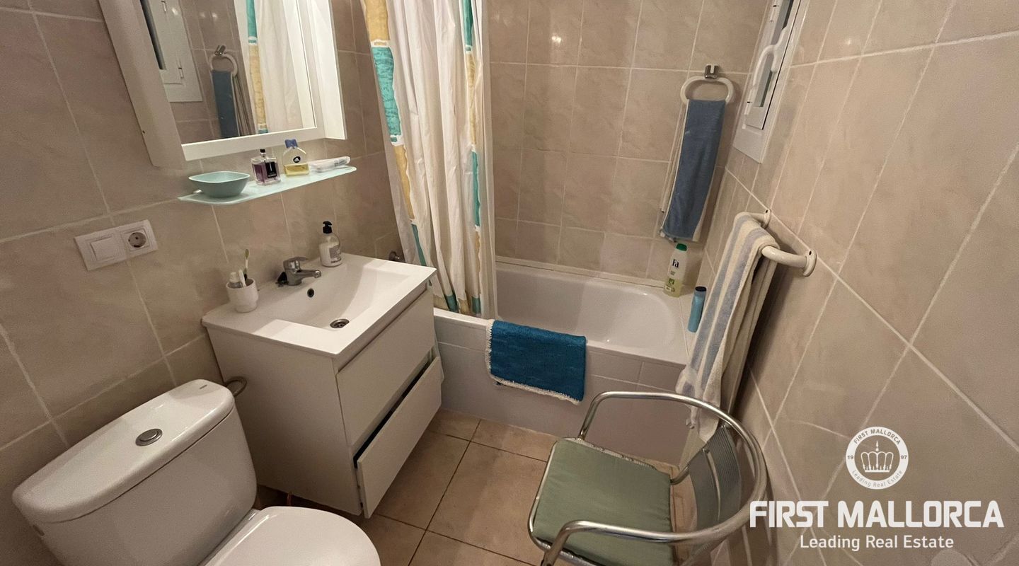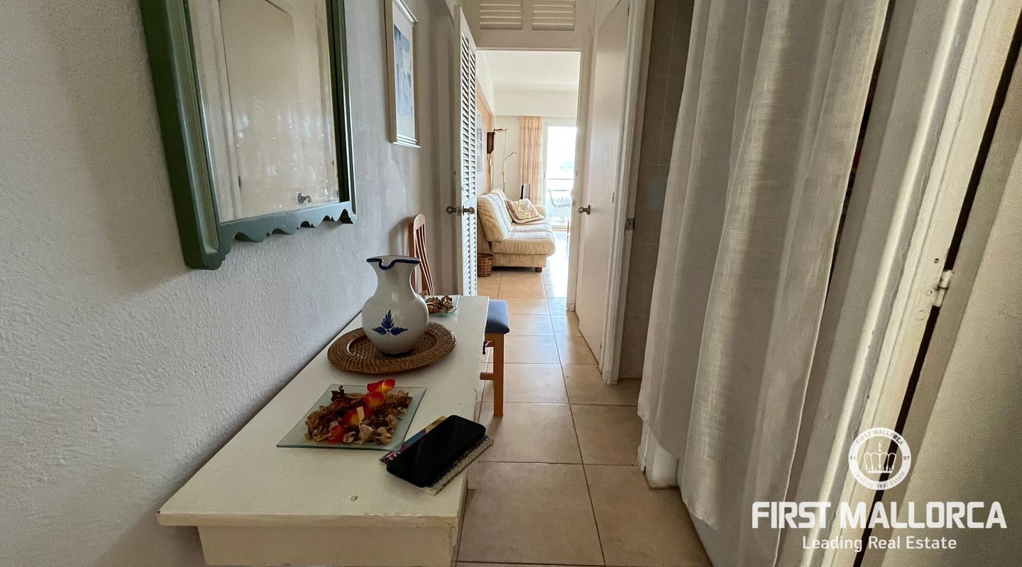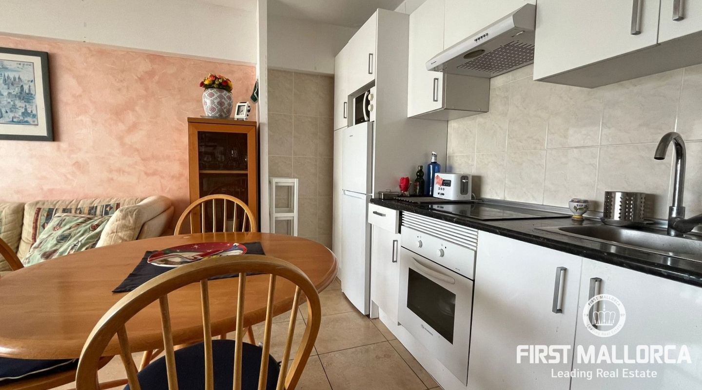 This cozy 48 m² apartment is located in a well-maintained residential community in Santa Ponsa, just a few steps from the beach. It offers stunning views of the sea and Paguera beach thanks to its northeast orientation, which provides excellent natural light throughout much of the day.