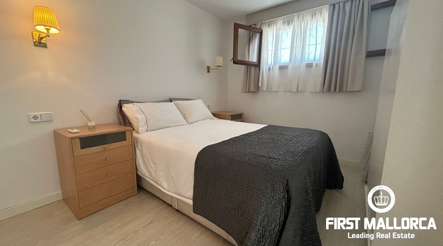 This front line beach flat is completely refurbished and has all the comforts to live in. It is perfect for 1 or 2 people as it has 1 bedroom. Its large terrace overlooking the beach of Son Caliu offers the ideal place to unwind. It is only 10 minutes from Porto Pi and 15 minutes from Palma city centre. This flat is rented on a yearly basis, as a permanent home.