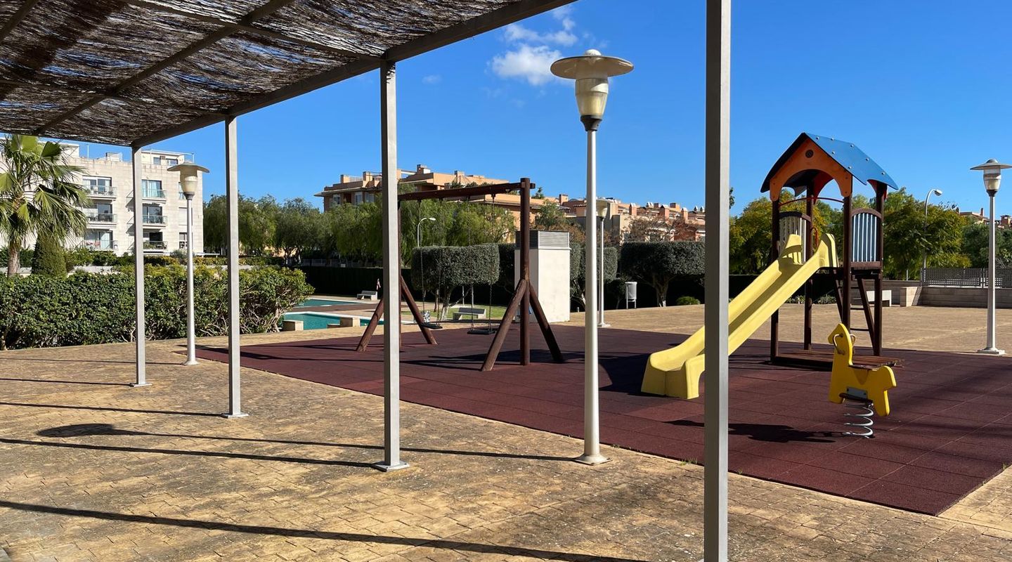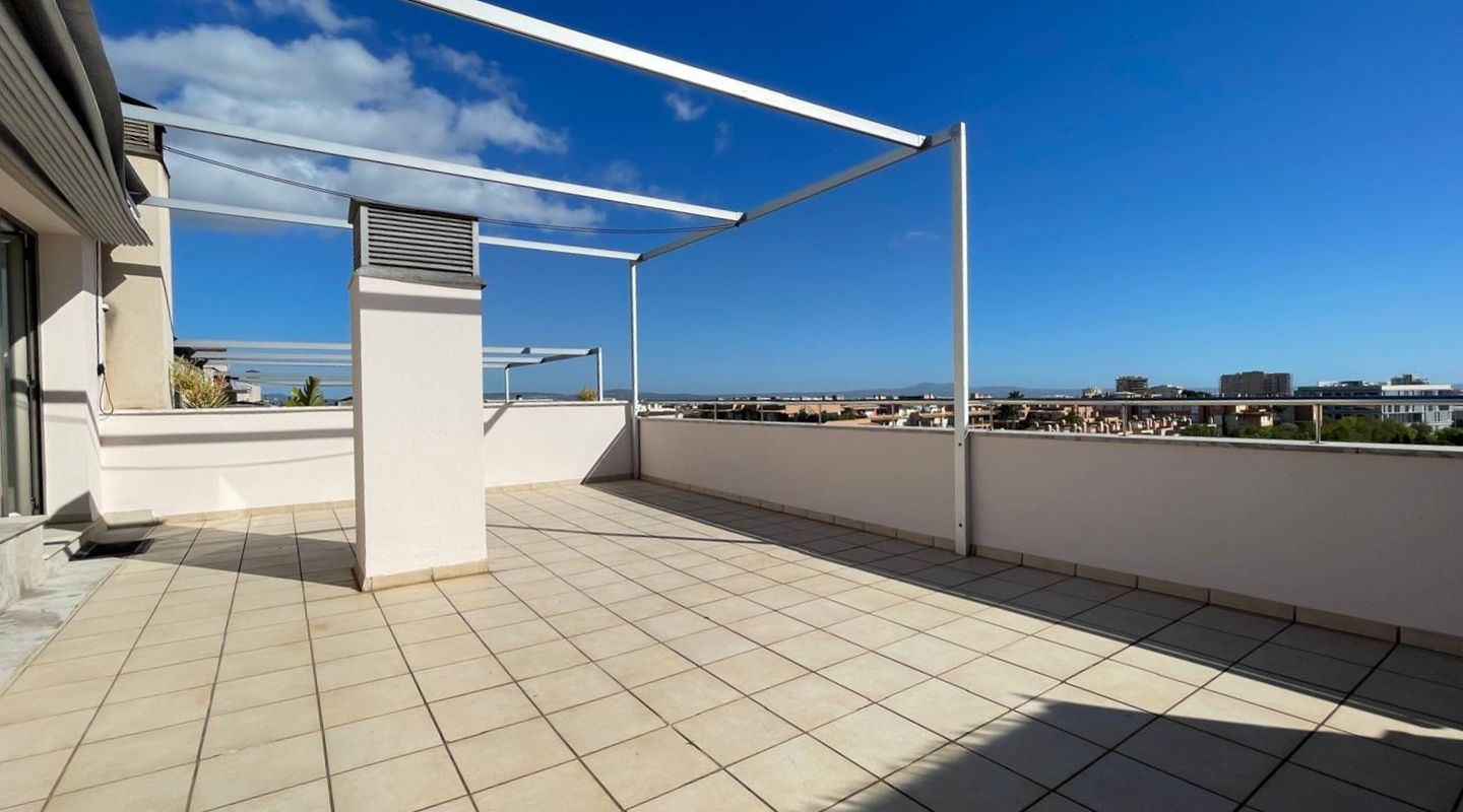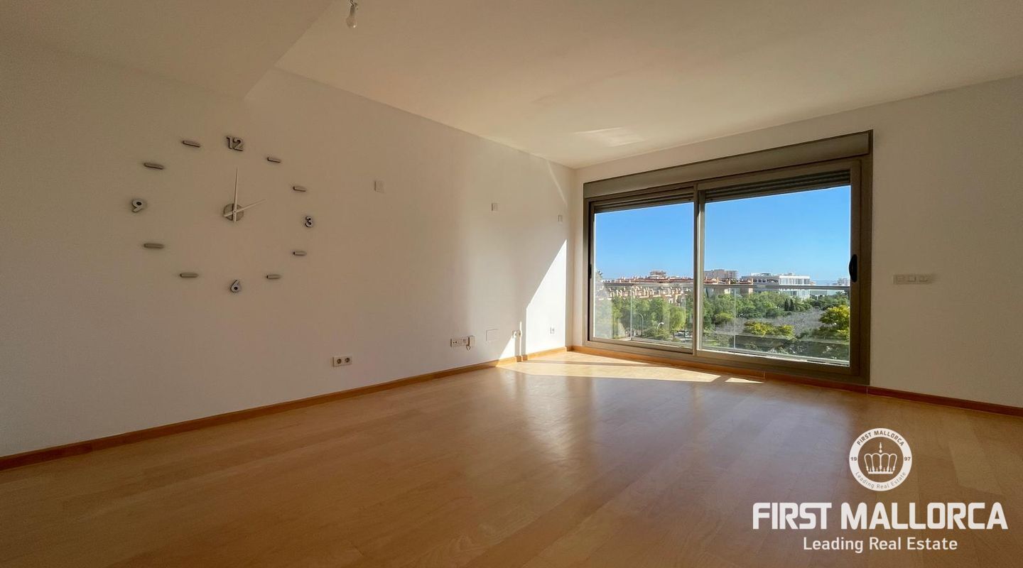 This 125 m² south-facing apartment features 3 bedrooms, 2 full bathrooms (one en suite), a fully equipped kitchen, and a laundry room. It boasts a spacious and sunny living/dining room with a front terrace and air conditioning (heating and cooling). The apartment also includes a 90 m² rooftop terrace with spectacular panoramic views of the sea and the Tramuntana mountain range. The communal areas offer 2 swimming pools, gardens, and a children's playground. The rental includes an underground parking space and a large storage room. The apartment is rented unfurnished, freshly painted white, and everything is in perfect working order.