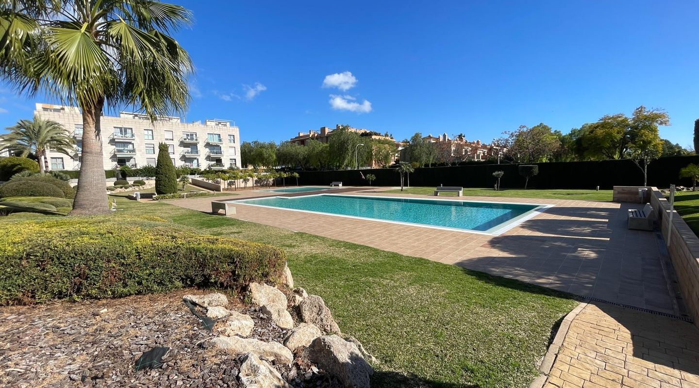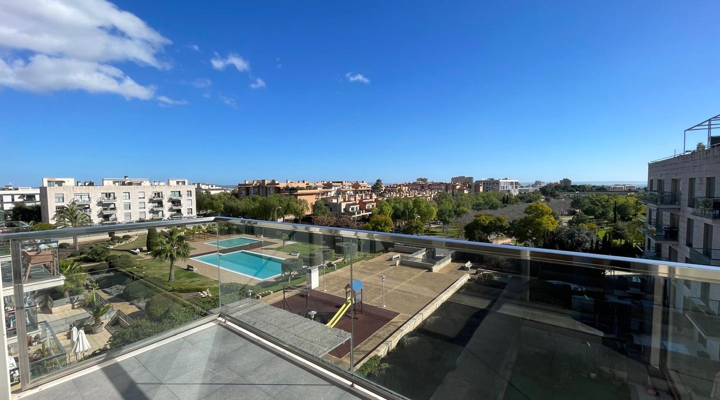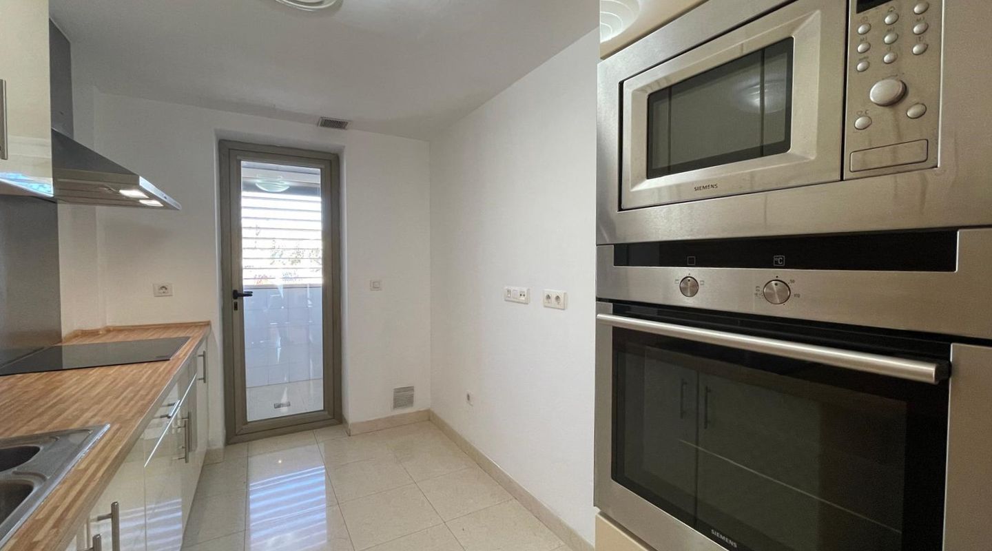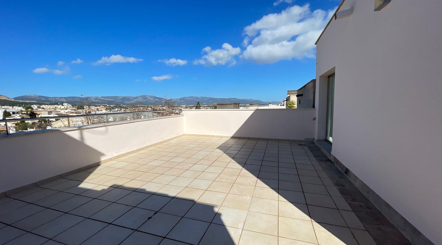 This 125 m² south-facing apartment features 3 bedrooms, 2 full bathrooms (one en suite), a fully equipped kitchen, and a laundry room. It boasts a spacious and sunny living/dining room with a front terrace and air conditioning (heating and cooling). The apartment also includes a 90 m² rooftop terrace with spectacular panoramic views of the sea and the Tramuntana mountain range. The communal areas offer 2 swimming pools, gardens, and a children's playground. The rental includes an underground parking space and a large storage room. The apartment is rented unfurnished, freshly painted white, and everything is in perfect working order.
