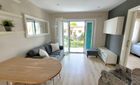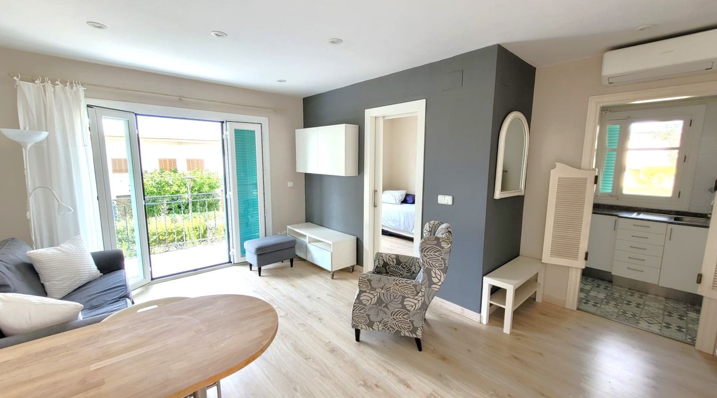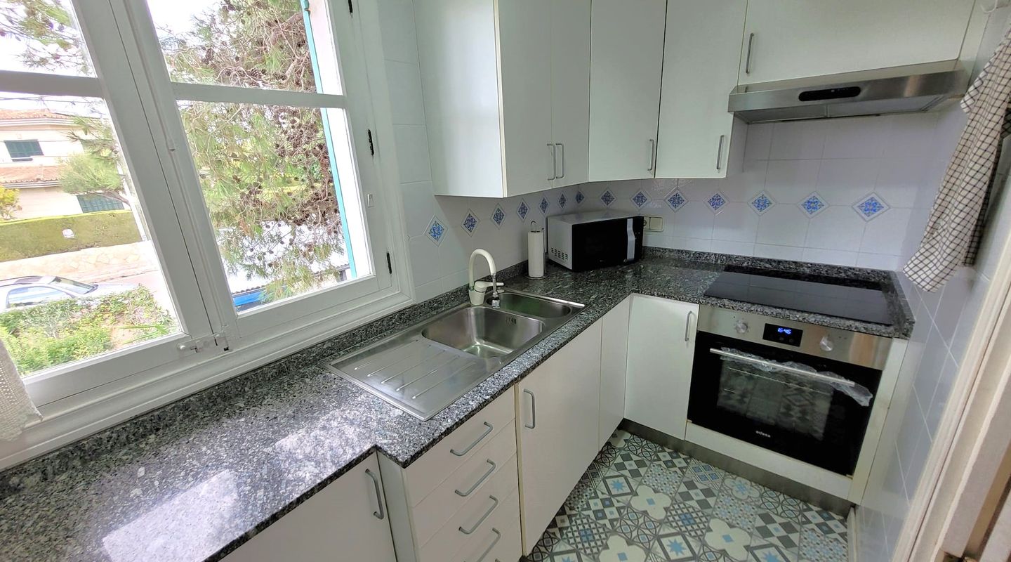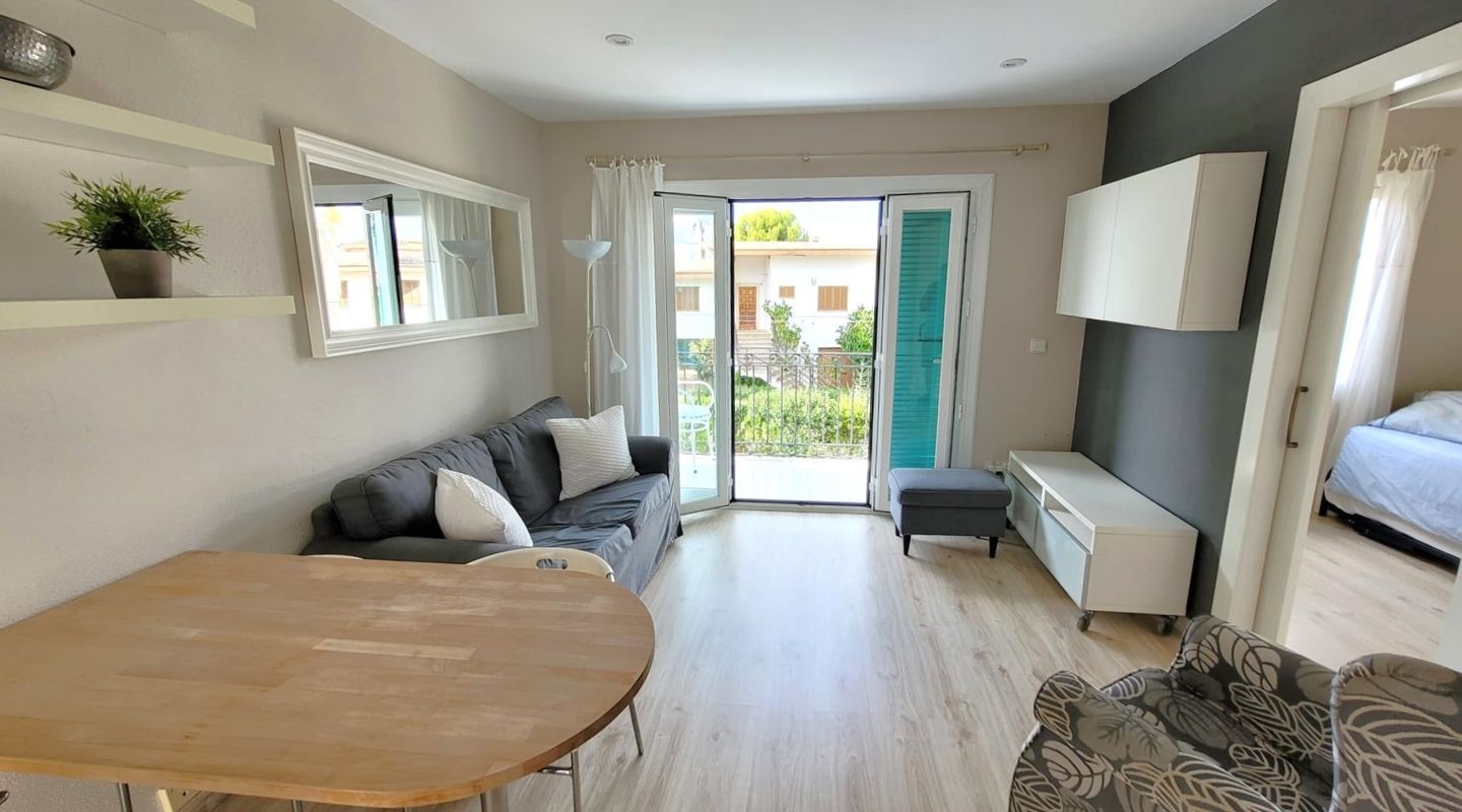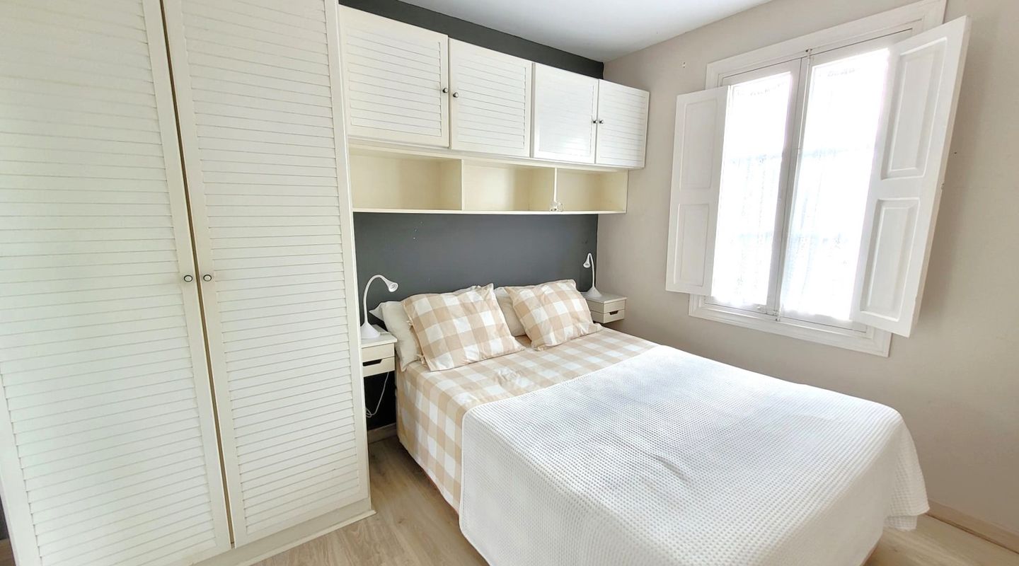 Cozy two-bedroom apartment in Bellavista, just steps from the sea. The property features one double bedroom and one single bedroom, air conditioning in the living room, two balconies, and a private parking space in a carport. Conveniently located within walking distance of the beach.