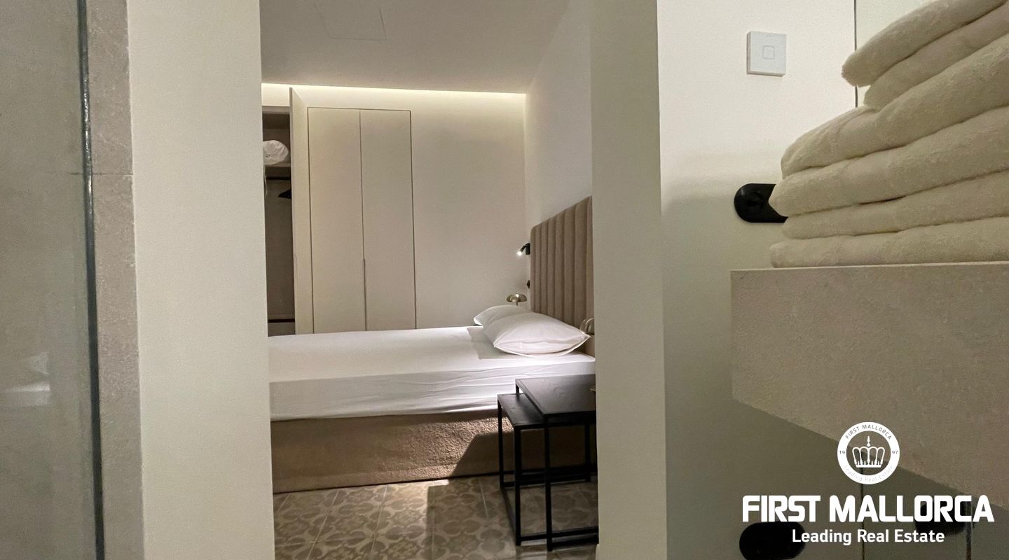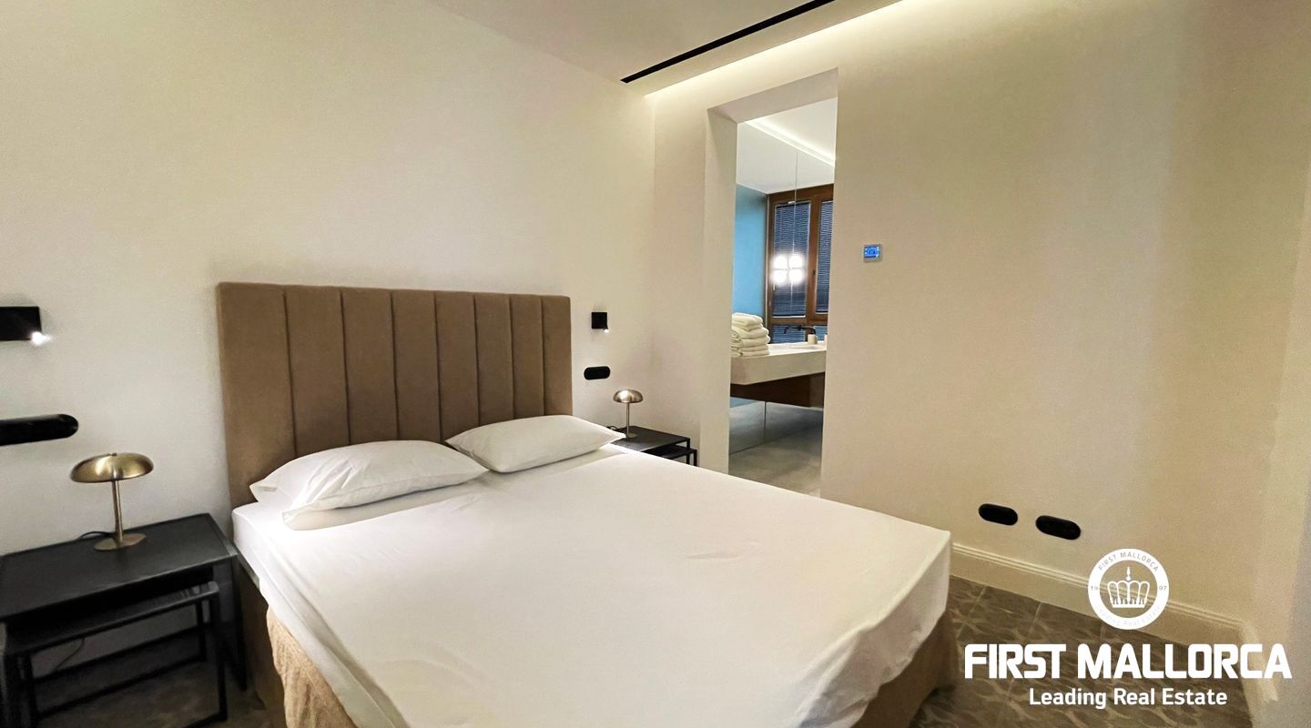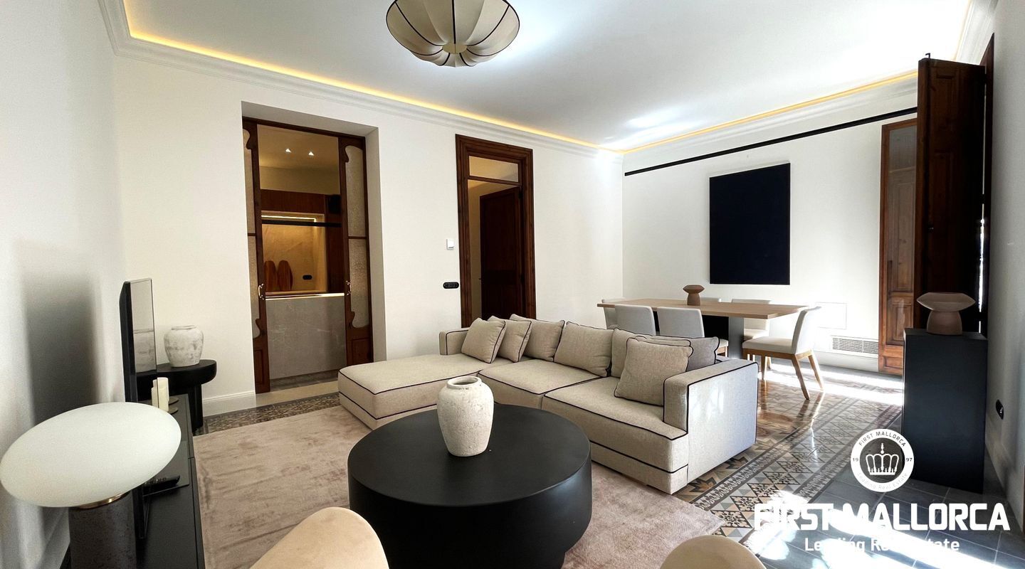This charismatic 2-bedroom, 2-bathroom apartment in Palma has been fully refurbished, blending modern Scandinavian design with Mallorca’s rich history, while carefully preserving its original features. The apartment is offered for short-term rent, with a minimum rental period of 3 months.