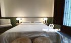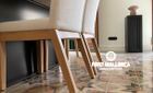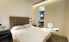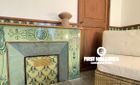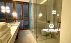 At the rear of the apartment, you'll find two bedrooms, each with its own en-suite bathroom. The master bedroom overlooks the courtyard and boasts a restored fireplace feature, two mini storage rooms, and ample wardrobe space. The second bedroom features glass-paneled doors that welcome natural light from the courtyard. Both bathrooms are elegantly finished in marble and wood, offering walk-in showers, double vanities, and integrated marble sinks. Additionally, there's a stylish guest WC located near the kitchen.