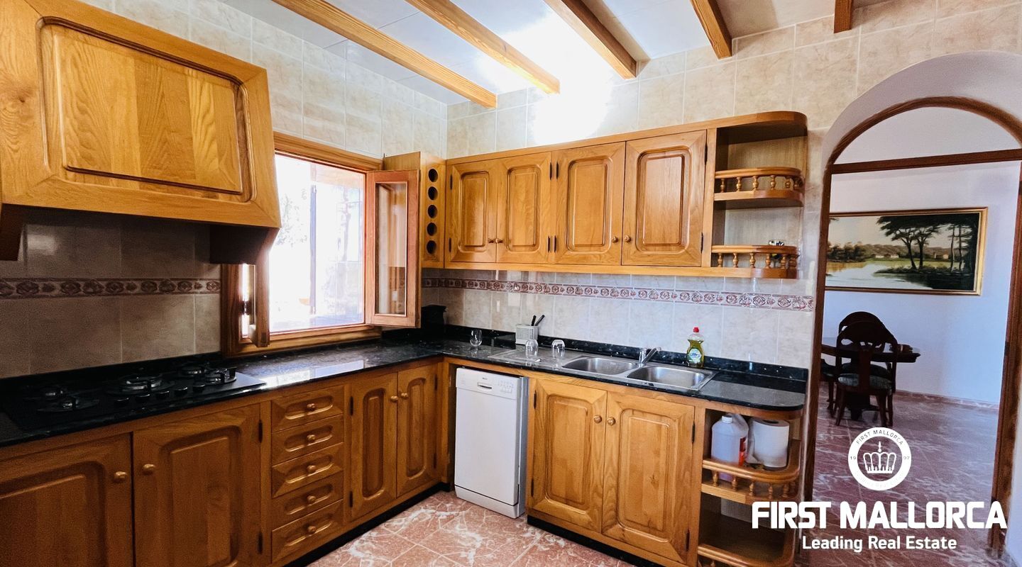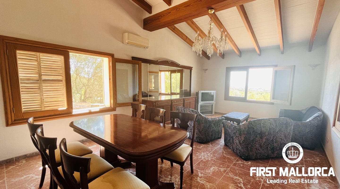 Located just a few minutes from the center of Llucmajor, this house is located in an elevated position offering spectacular views. Distributed on one floor, the property has a large living-dining room, a fully fitted and equipped kitchen, five spacious bedrooms and a generously sized bathroom. At the entrance, a cozy enclosed porch with fireplace invites you to enjoy the winter evenings overlooking Cabrera. Outside, a terrace surrounds the house, providing a perfect space to relax. If you are looking for a really quiet summer, enjoying the peace of nature without giving up the proximity to all amenities, this property is the ideal place for you.
