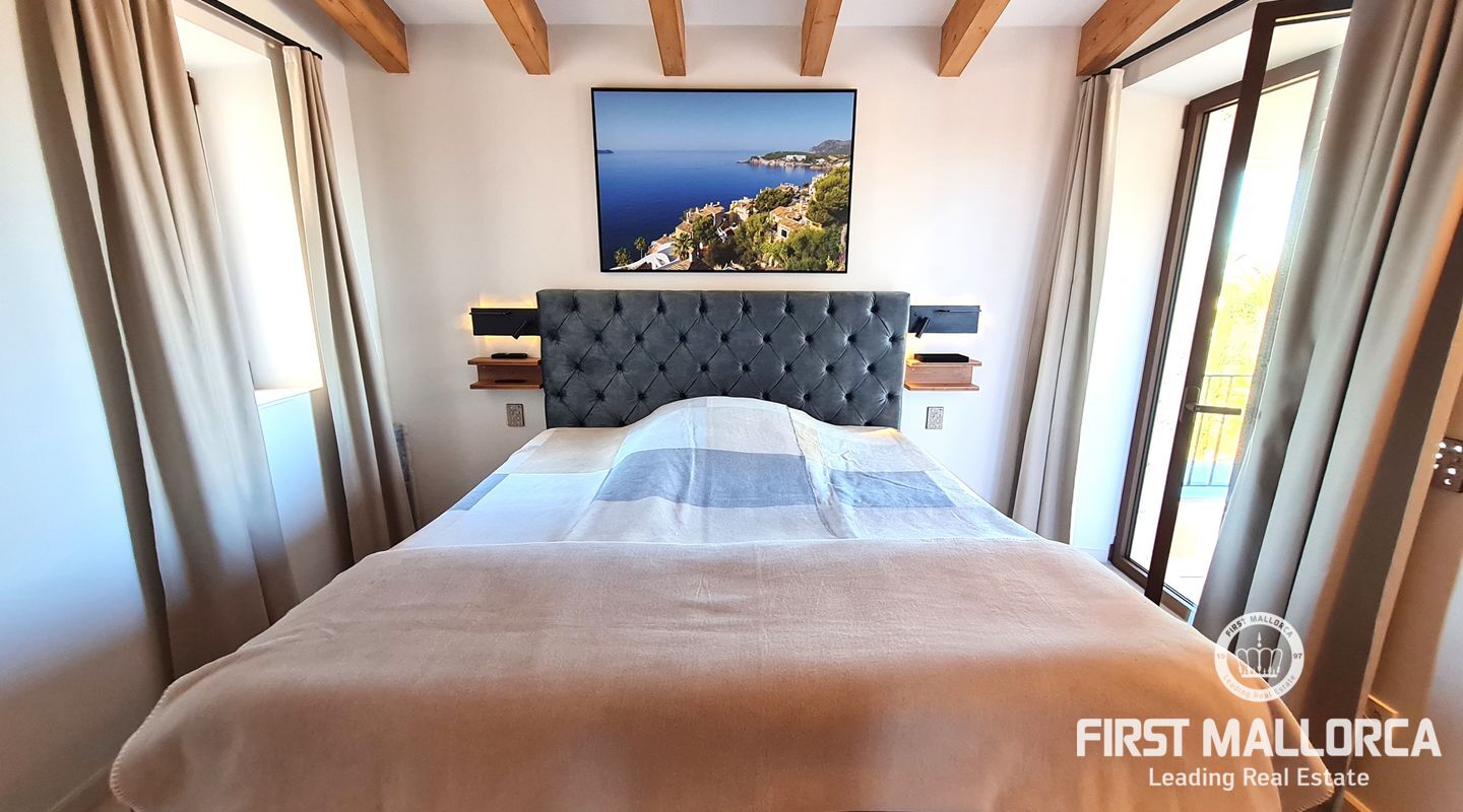 On the upper floor there are another 4 bedrooms, three of them with terrace and a suite with shower and bathtub open to the room and spectacular views of the cliffs of Cala Llombards.