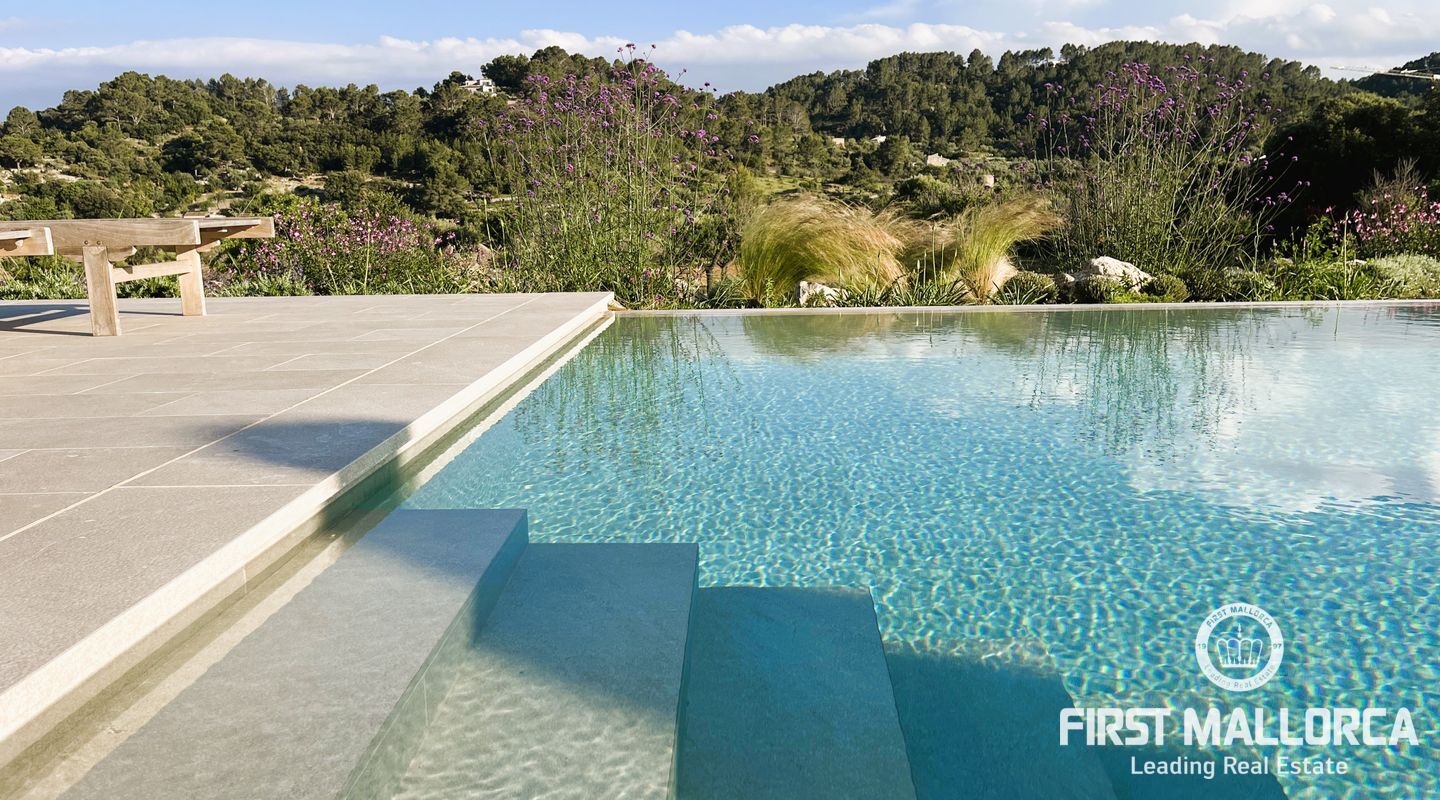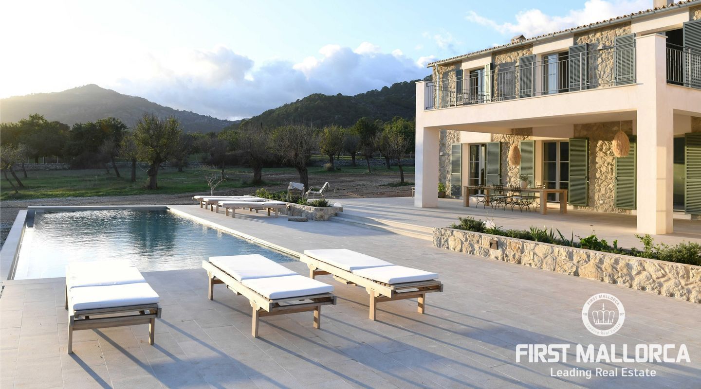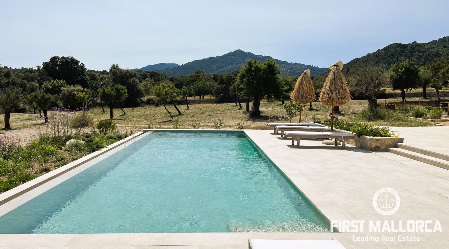 Located near the charming village of Selva at the foot of the Tramuntana mountains, this finca is a newly built property that honors traditional Mallorcan craftsmanship, using local materials and techniques throughout. The finca reflects a refined blend of Nordic minimalism and Mediterranean warmth.