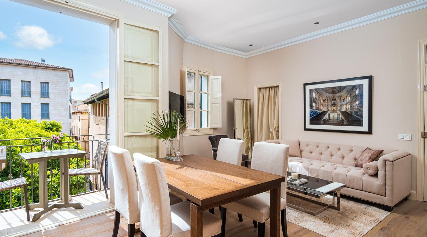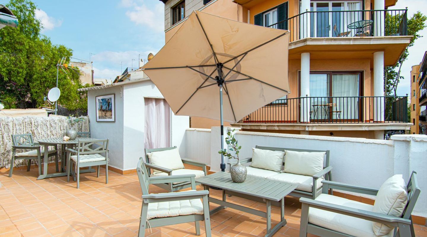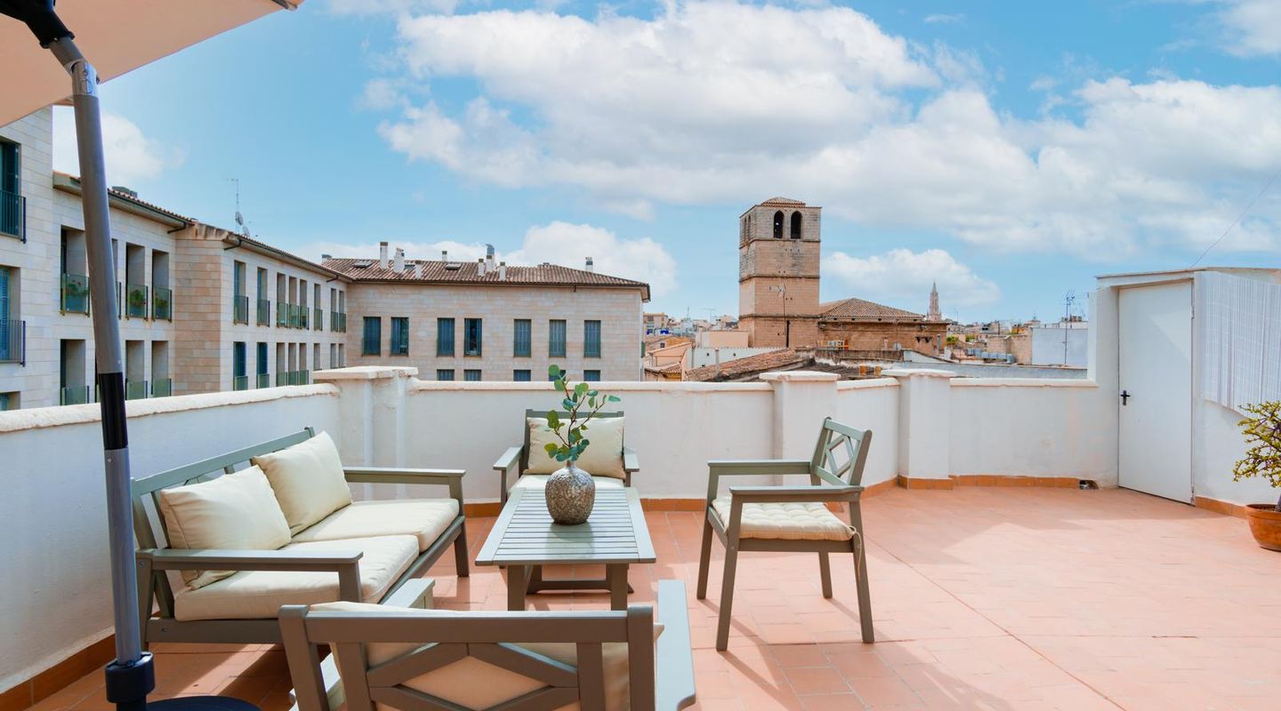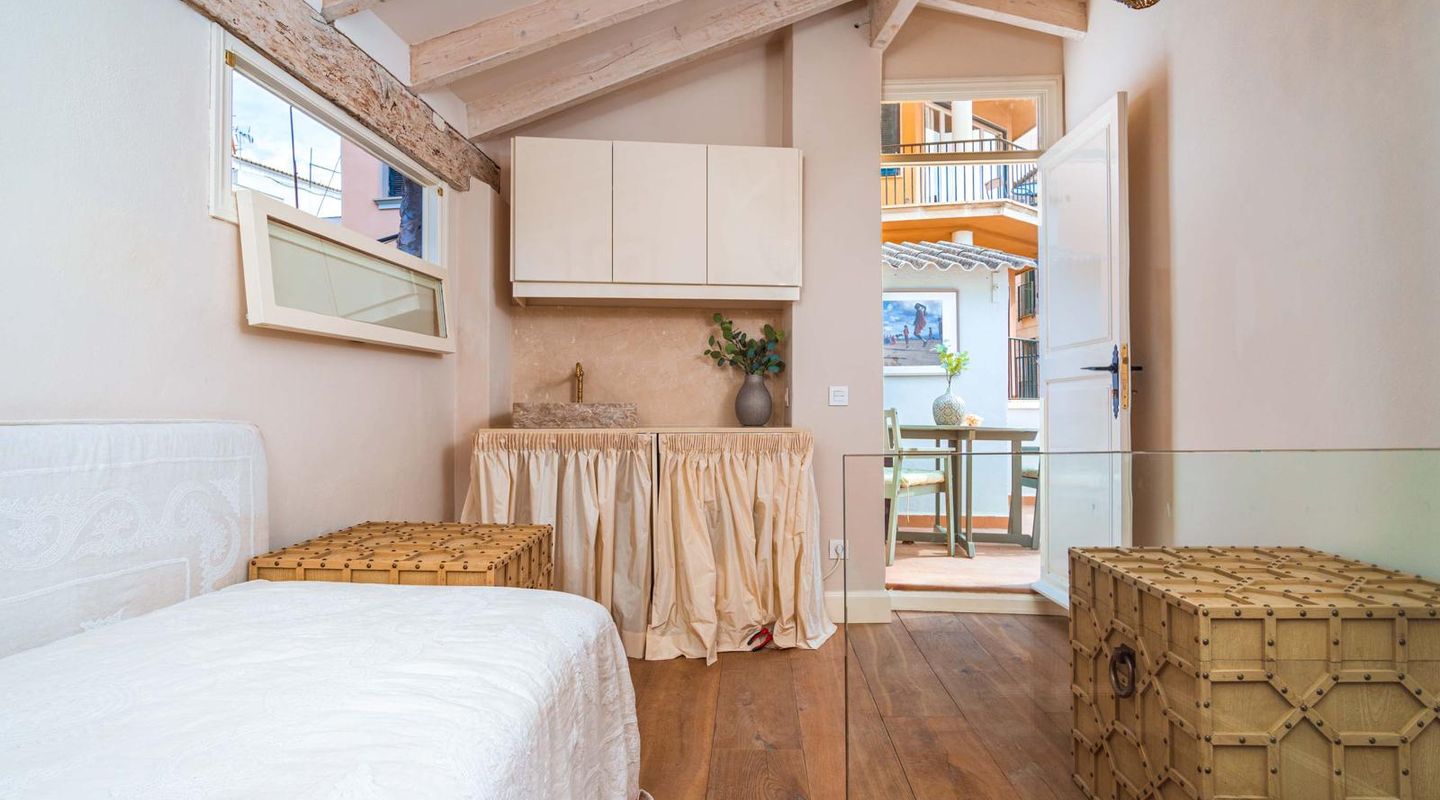 A third bedroom on the second floor provides additional space and flexibility. This level also includes a kitchenette, ideal for hosting a summer party on your private rooftop terrace with breathtaking panoramic views of Palma’s historic old town—or simply relaxing and enjoying a sunset, either with friends or alone.