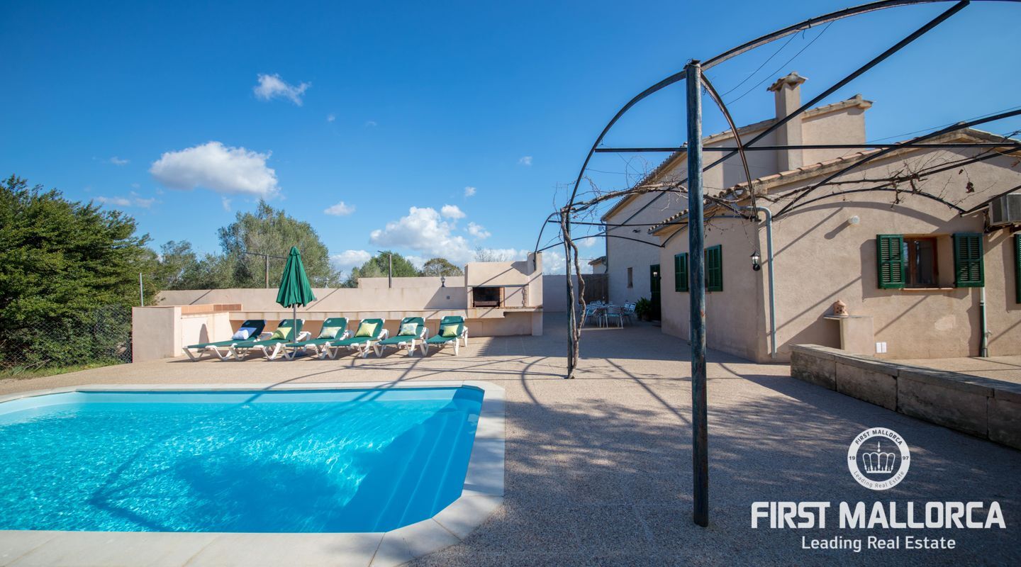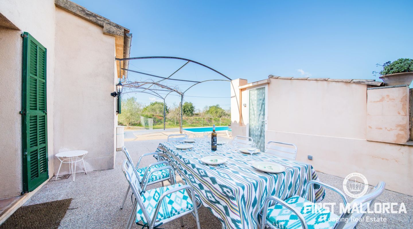 Located in the peaceful Mallorcan countryside, just a short distance from the traditional village of Algaida, an authentic rural home ideal for those seeking a quiet second residence. The property features 3 double bedrooms, 2 bathrooms, a fitted kitchen, and comfortable dining and sitting areas — offering all the comforts for short-term stays. Outside, a beautiful front porch with a sitting area welcomes you, while at the back of the house, you'll find a generous private swimming pool, sun loungers, a BBQ area, and additional outdoor seating — perfect for relaxing and enjoying the surroundings.