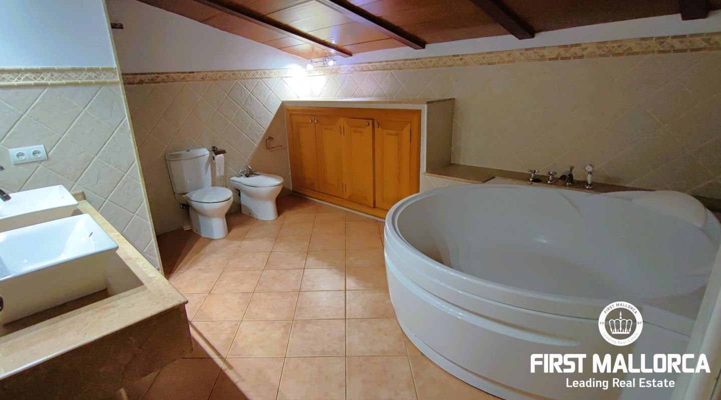 This high quality finca offers an ideal space for a large family or to enjoy with friends, located in a quiet area that invites to rest and privacy. The property has approximately 300 sqm of living space, distributed over 3 levels. The ground floor houses a spacious living-dining room with fireplace, a fully equipped kitchen, a storage room, a laundry room, a guest toilet and a bedroom with bathroom en suite. On the first floor, there are three additional bedrooms, each with en suite bathroom, offering comfort and privacy. The second level has a tower room, perfect to use as an office. Outstanding facilities include Climalit windows, oil central heating, a barbecue area, a large tennis court and a salt water swimming pool, ideal for enjoying on sunny days. The maintenance of the garden and the swimming pool has a monthly cost of 270€, not included in the rent, and the consumption costs are managed separately. The rent is paid a year in advance. It has a holiday rental licence.