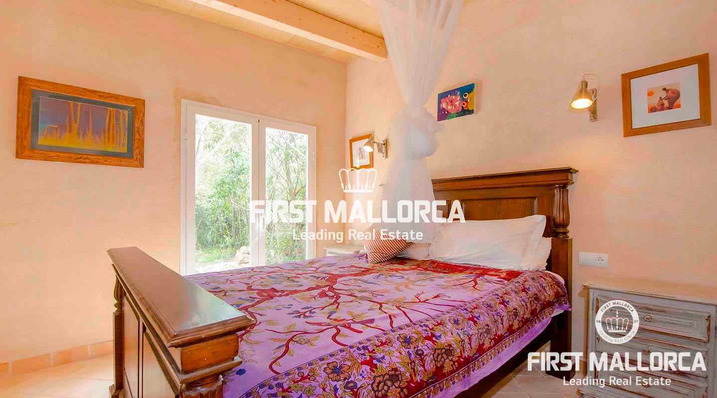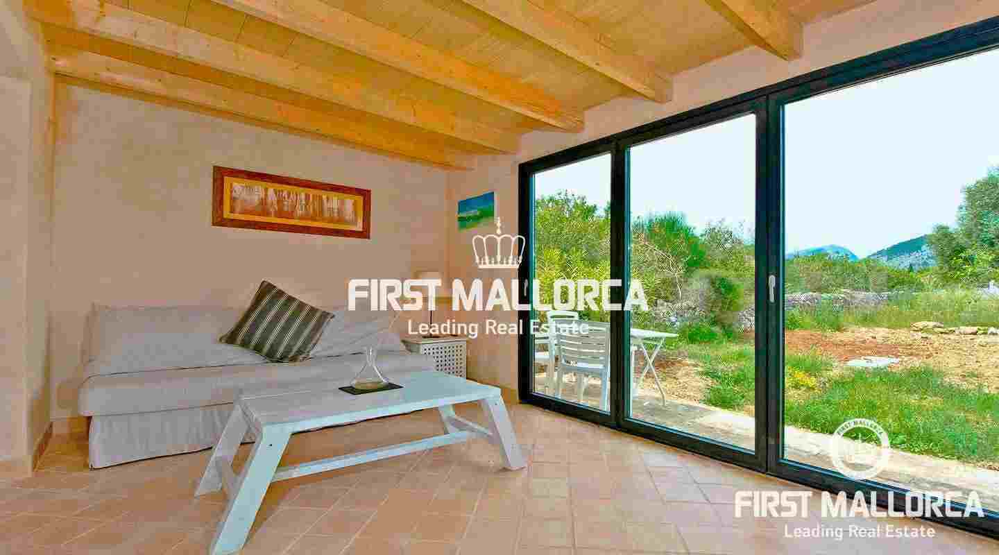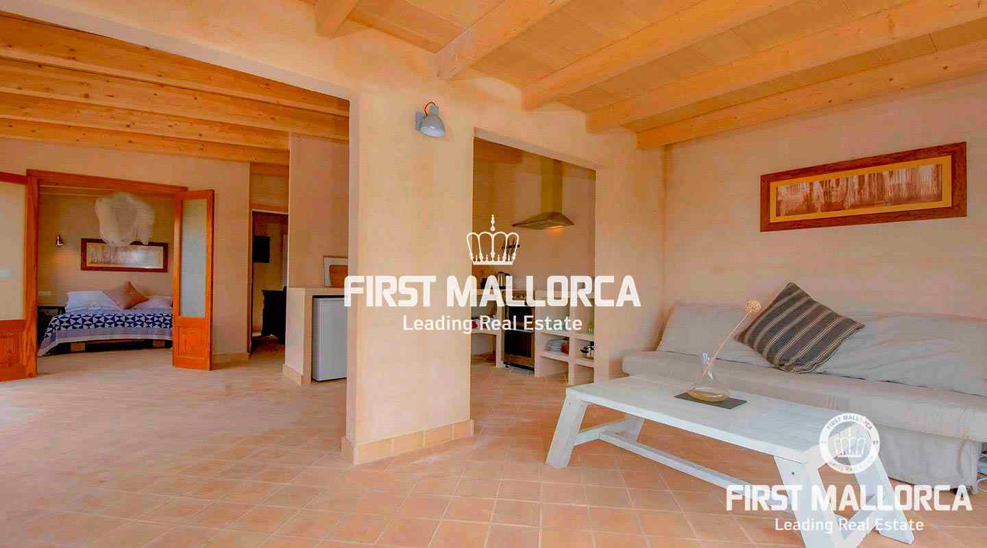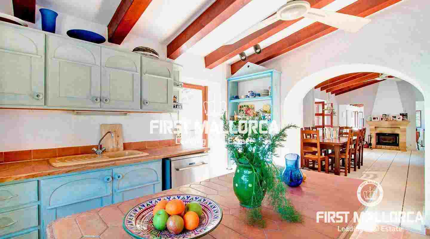 This finca is located between Pollensa and Puerto de Pollensa on approximately 8,400 m² of land. The main house has a spacious living-dining room with an open-plan kitchen and enjoys a cozy ambience thanks to wooden features, a natural stone wall and a fireplace. In addition, there are 3 spacious bedrooms and 2 bathrooms.