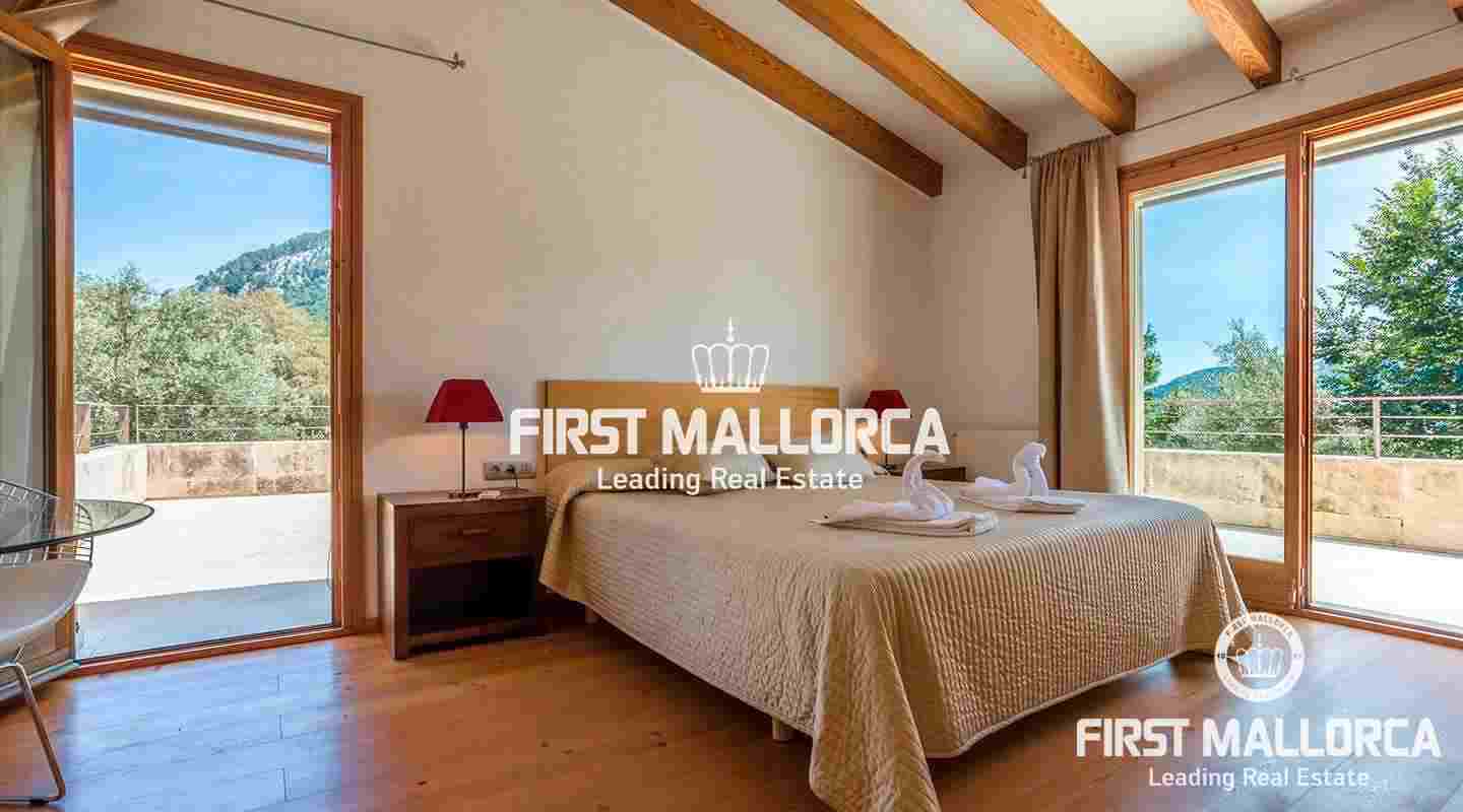 This rustic finca combines traditional and modern features. It has a living-dining room, a spacious kitchen, 5 bedrooms and 6 bathrooms. On the ground floor, there is a double bedroom with a bathroom en suite and an impressive staircase leading to the upper floor with a living room and 4 bedrooms, each of them with bathroom en suite and built-in wardrobes. Both levels have an additional bathroom with shower. The outdoor area enjoys extensive terraces, a barbecue area and a beautiful pool with a waterfall behind the building.