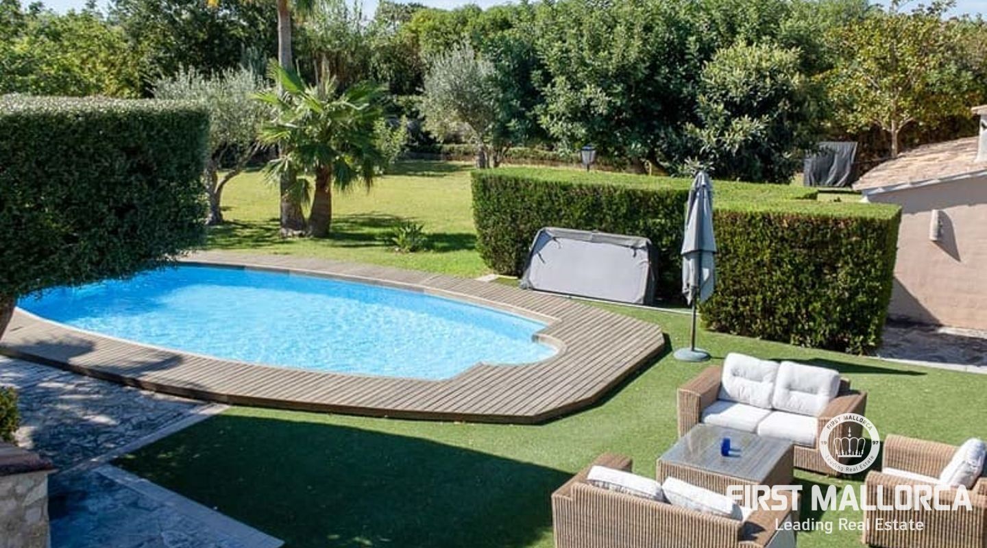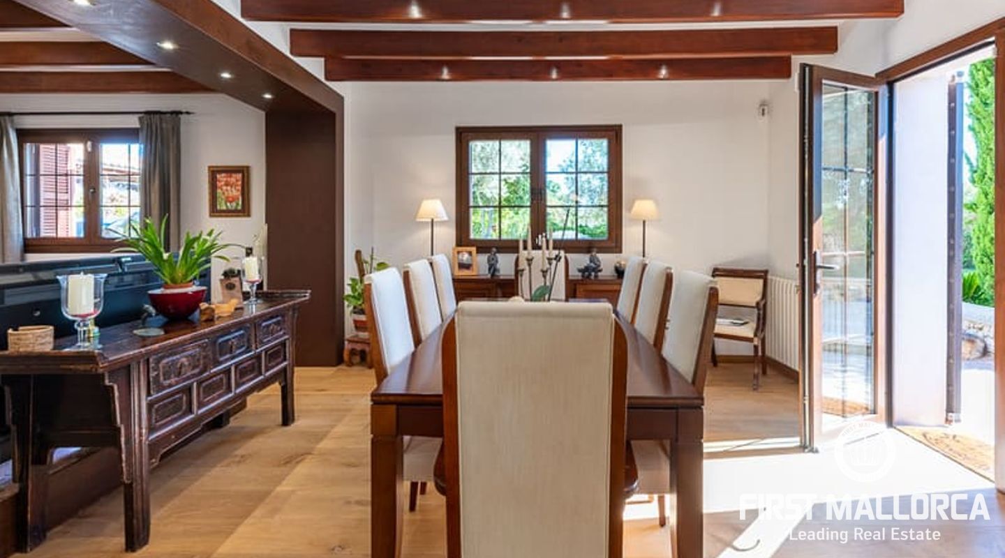 The outdoor area is the crown jewel of this property, featuring beautifully landscaped garden areas adorned with an array of fruit trees and palm trees. A spacious porch, a sunny solarium, a 36m² private outdoor swimming pool, offer serene retreats to relax and stunning views to Selva village.