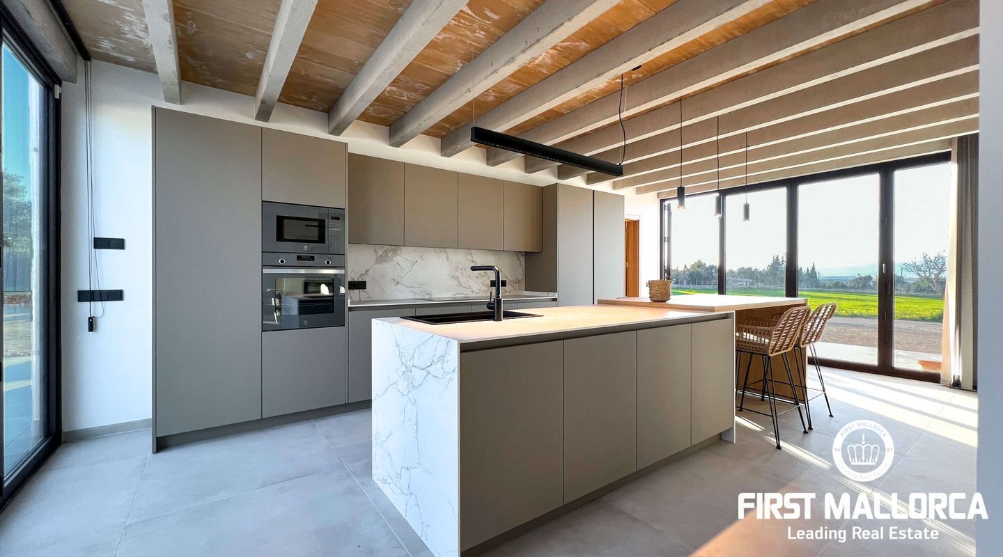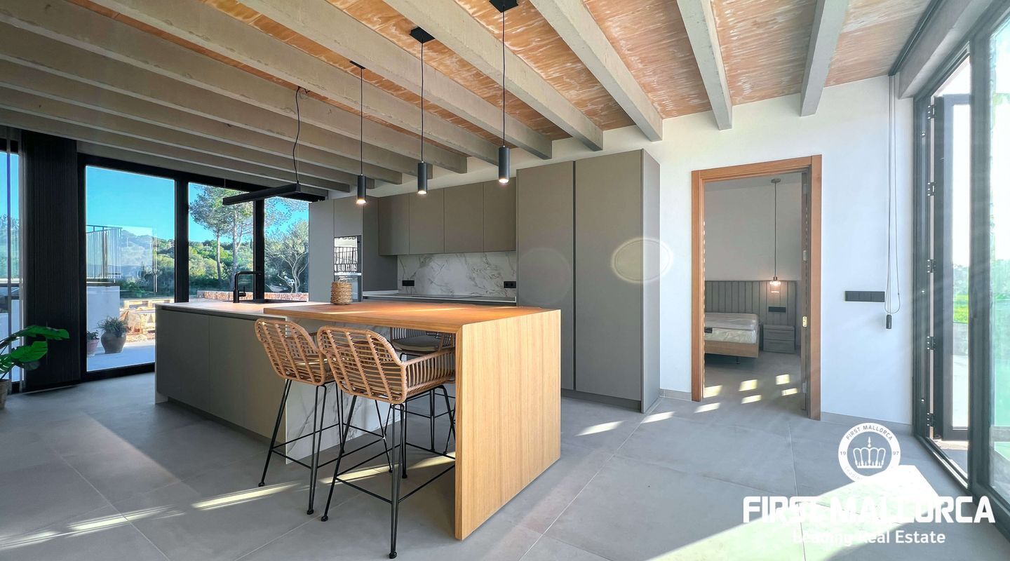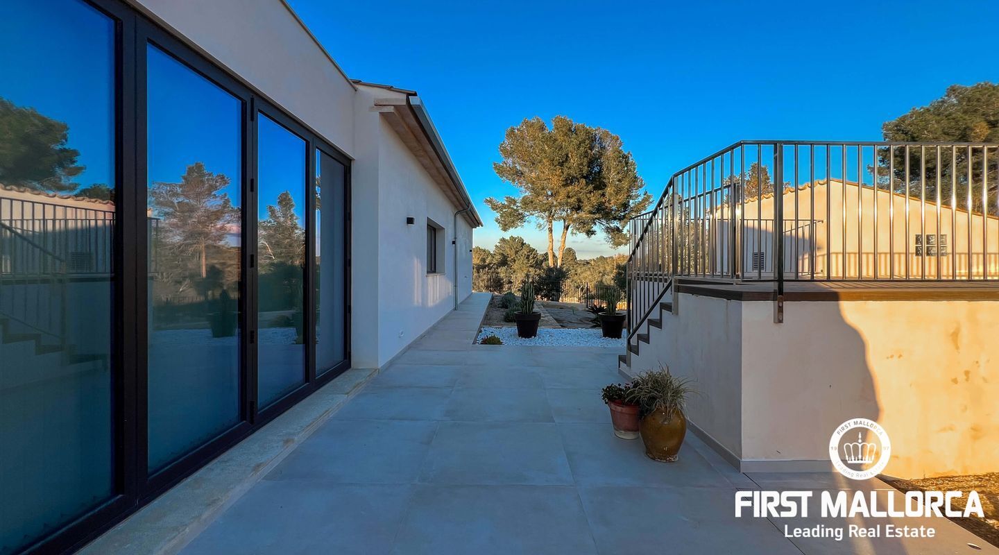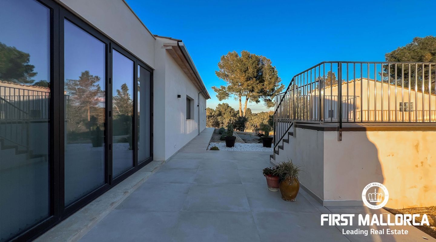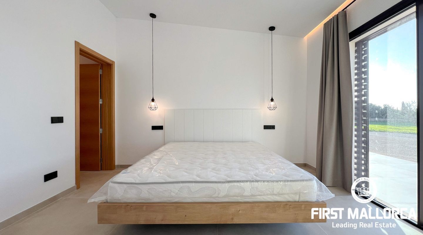 Surrounded by the idyllic landscape of s'Arenjassa, this exclusive newly built finca is a true hideaway for nature lovers and those seeking peace and quiet. With magnificent views of the surrounding countryside, the property combines modern living with Mediterranean flair. The finca has three spacious bedrooms and three stylish bathrooms that offer the highest level of living comfort. The open-plan living area with integrated kitchen impresses with its brightness and spaciousness and is complemented by an elegant fireplace, which creates a cosy atmosphere even on cooler evenings. Large window fronts harmoniously connect the interior spaces with nature and provide direct access to the outdoors from every room. The outdoor area invites you to relax with a pool, while a practical utility and storage room offers additional storage space. Air conditioning units ensure pleasant temperatures even on hot summer days, while traditional Persianas emphasise the Mallorcan charm. The modern and furnished finca is available to rent until September at the latest and thus offers the ideal opportunity to enjoy the Mediterranean lifestyle in a quiet yet easily accessible location.