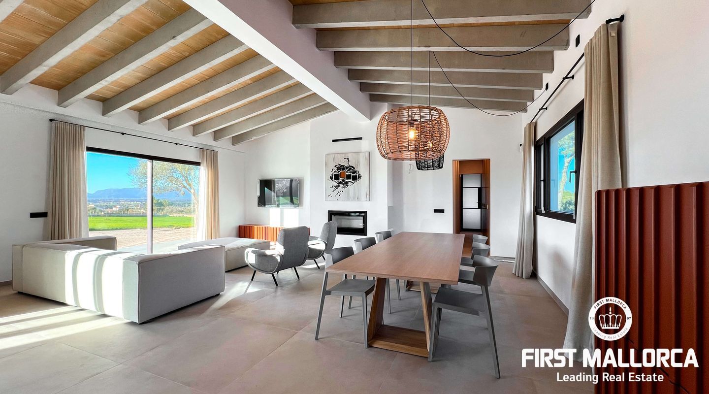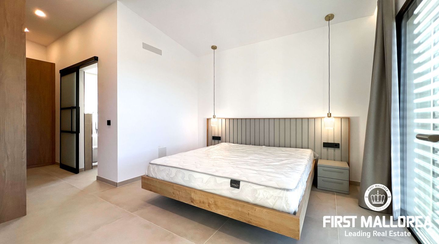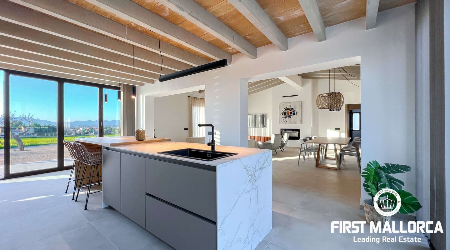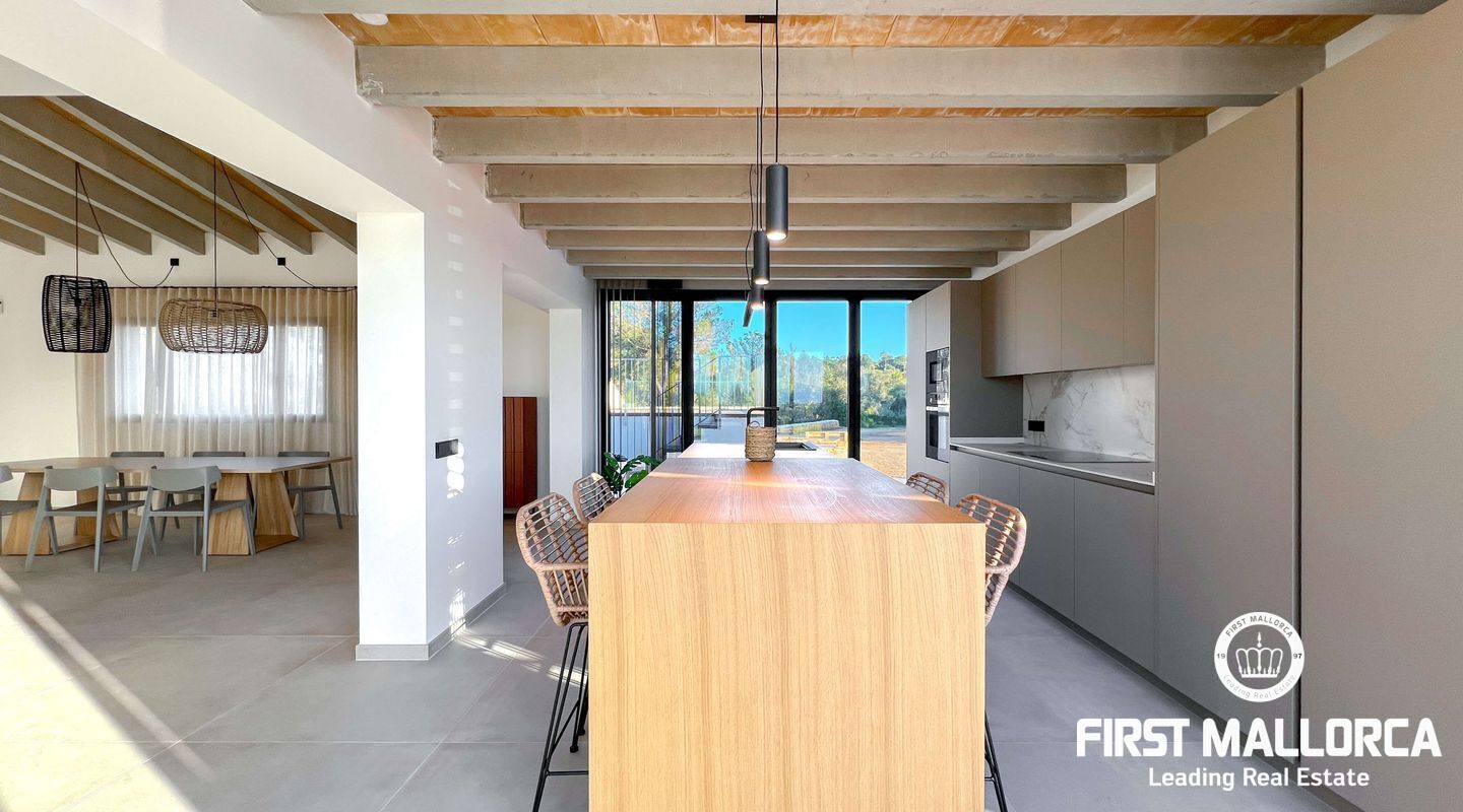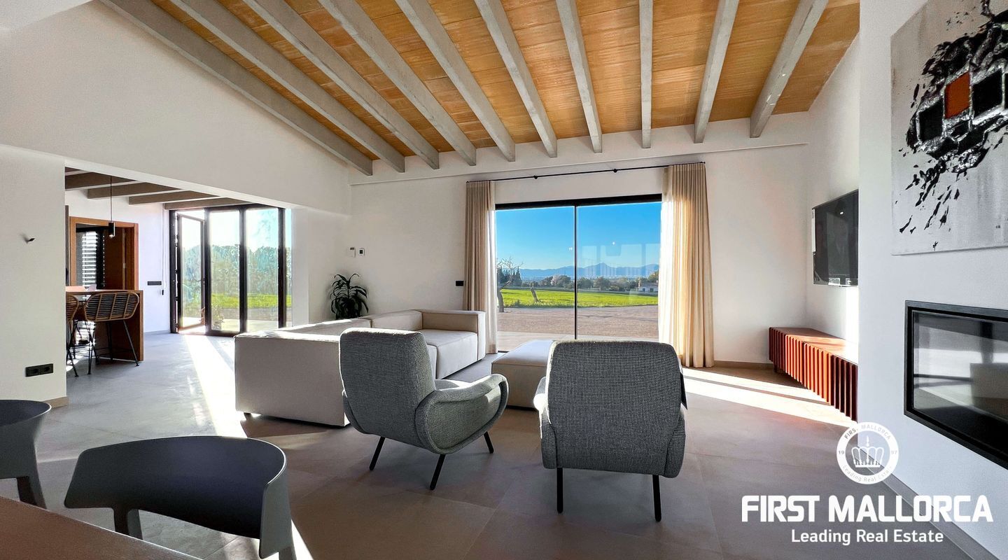 Surrounded by the idyllic landscape of s'Arenjassa, this exclusive newly built finca is a true hideaway for nature lovers and those seeking peace and quiet. With magnificent views of the surrounding countryside, the property combines modern living with Mediterranean flair. The finca has three spacious bedrooms and three stylish bathrooms that offer the highest level of living comfort. The open-plan living area with integrated kitchen impresses with its brightness and spaciousness and is complemented by an elegant fireplace, which creates a cosy atmosphere even on cooler evenings. Large window fronts harmoniously connect the interior spaces with nature and provide direct access to the outdoors from every room. The outdoor area invites you to relax with a pool, while a practical utility and storage room offers additional storage space. Air conditioning units ensure pleasant temperatures even on hot summer days, while traditional Persianas emphasise the Mallorcan charm. The modern and furnished finca is available to rent until September at the latest and thus offers the ideal opportunity to enjoy the Mediterranean lifestyle in a quiet yet easily accessible location.