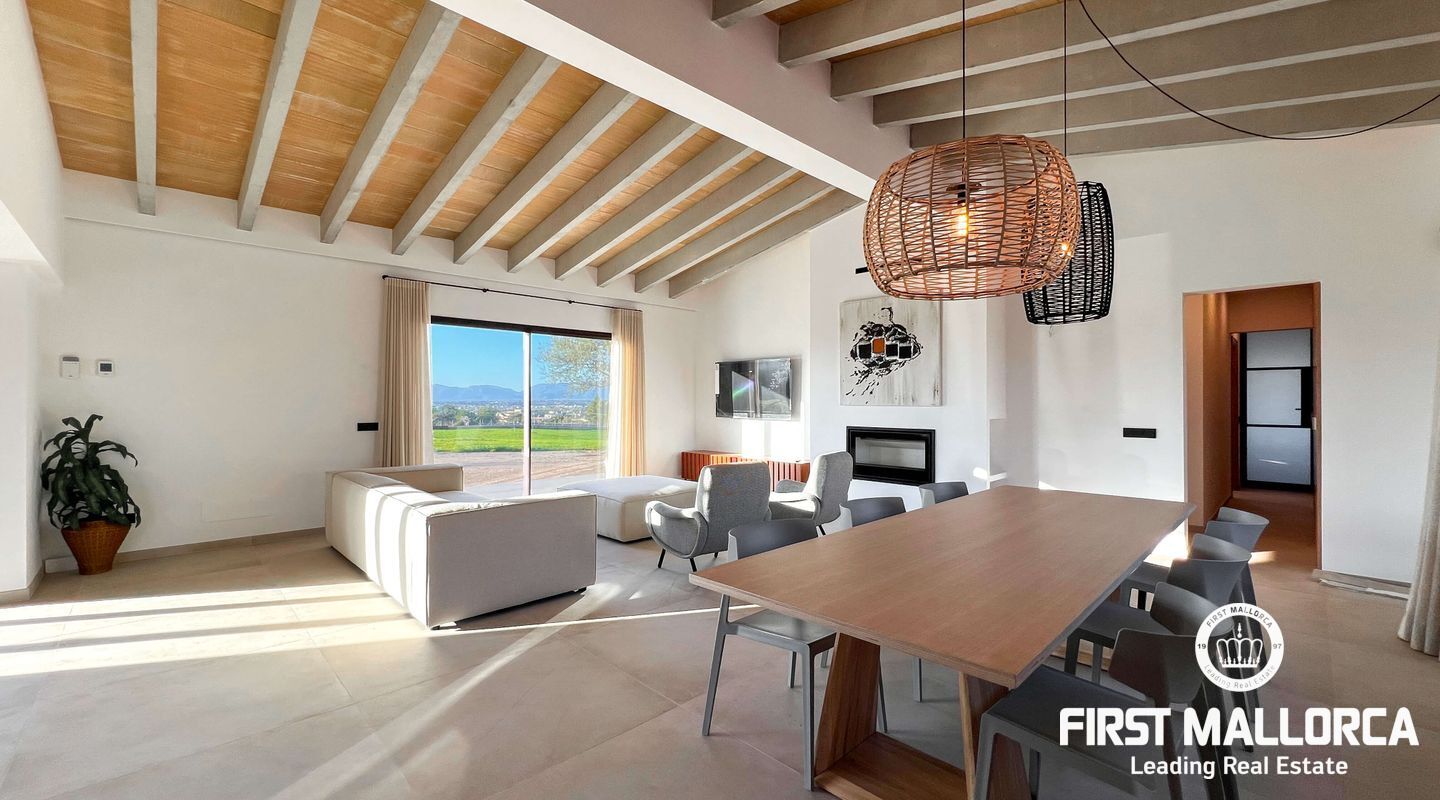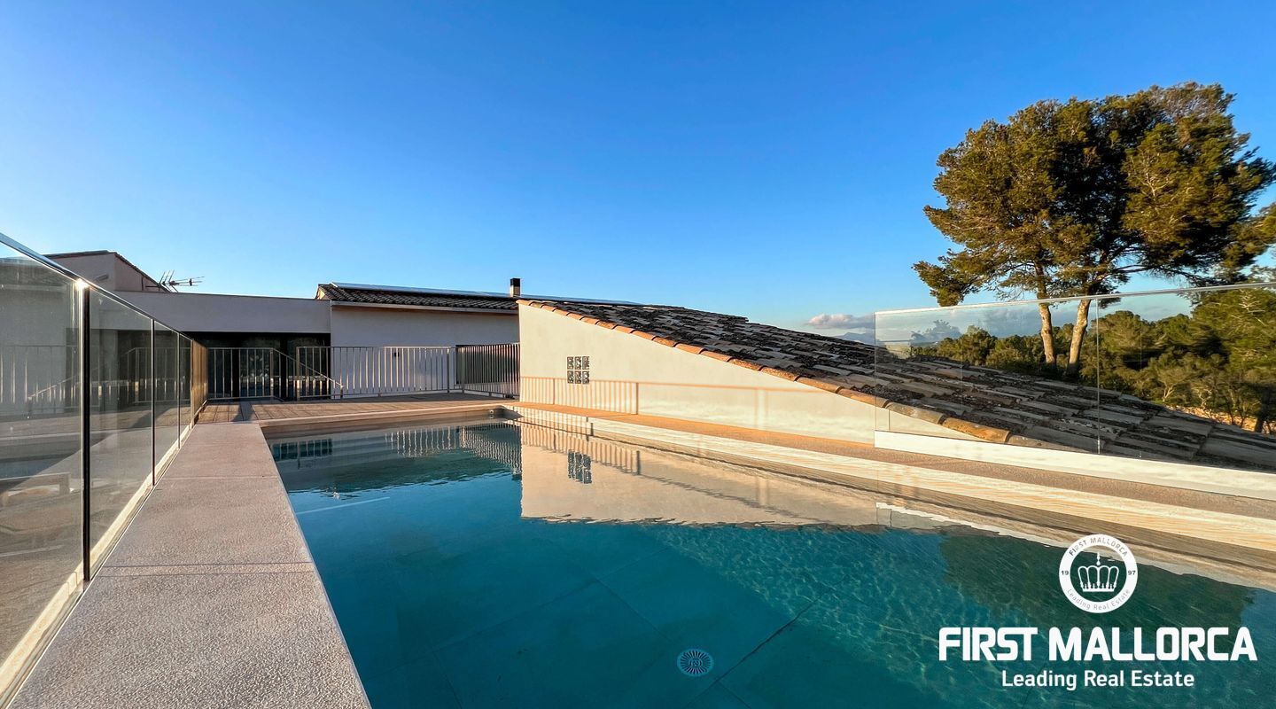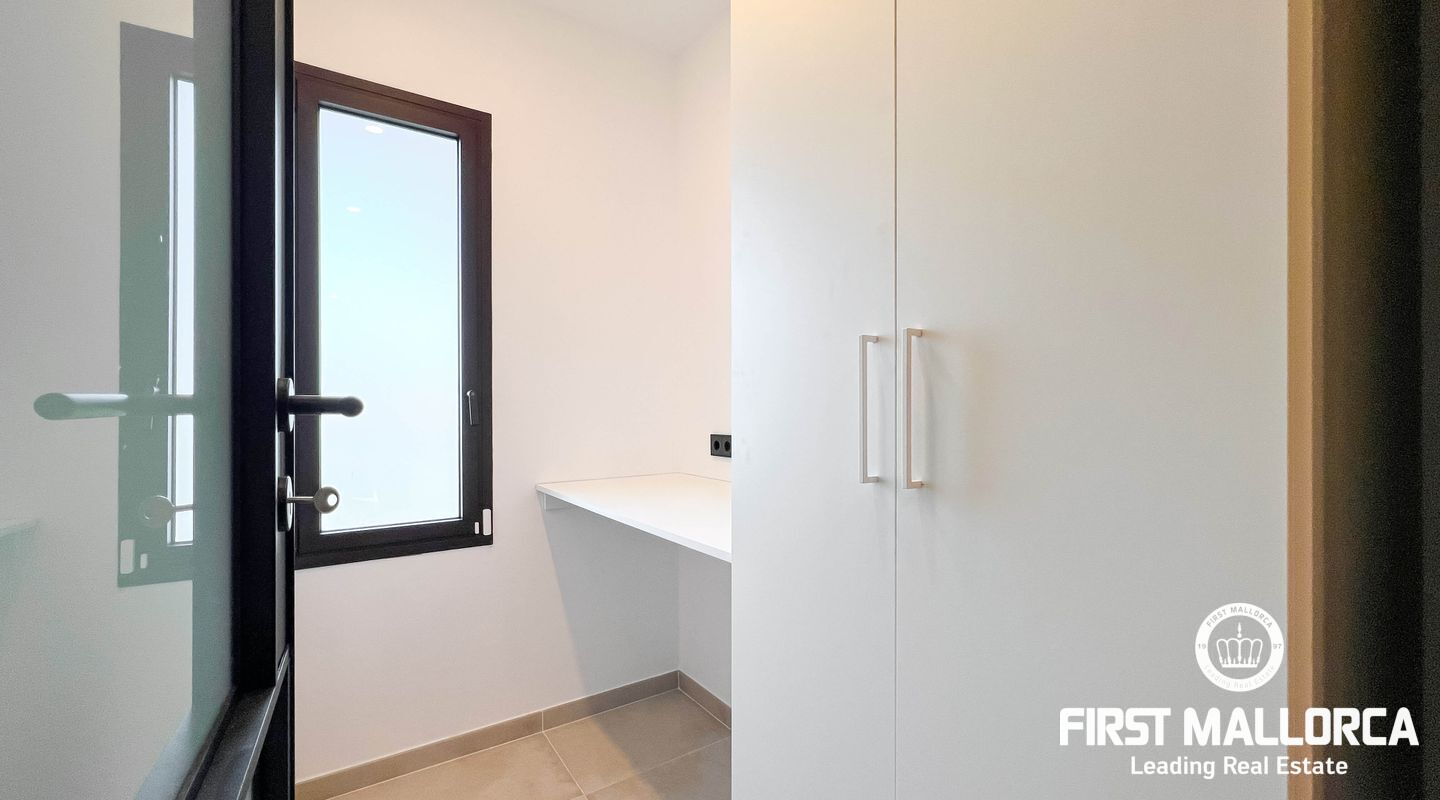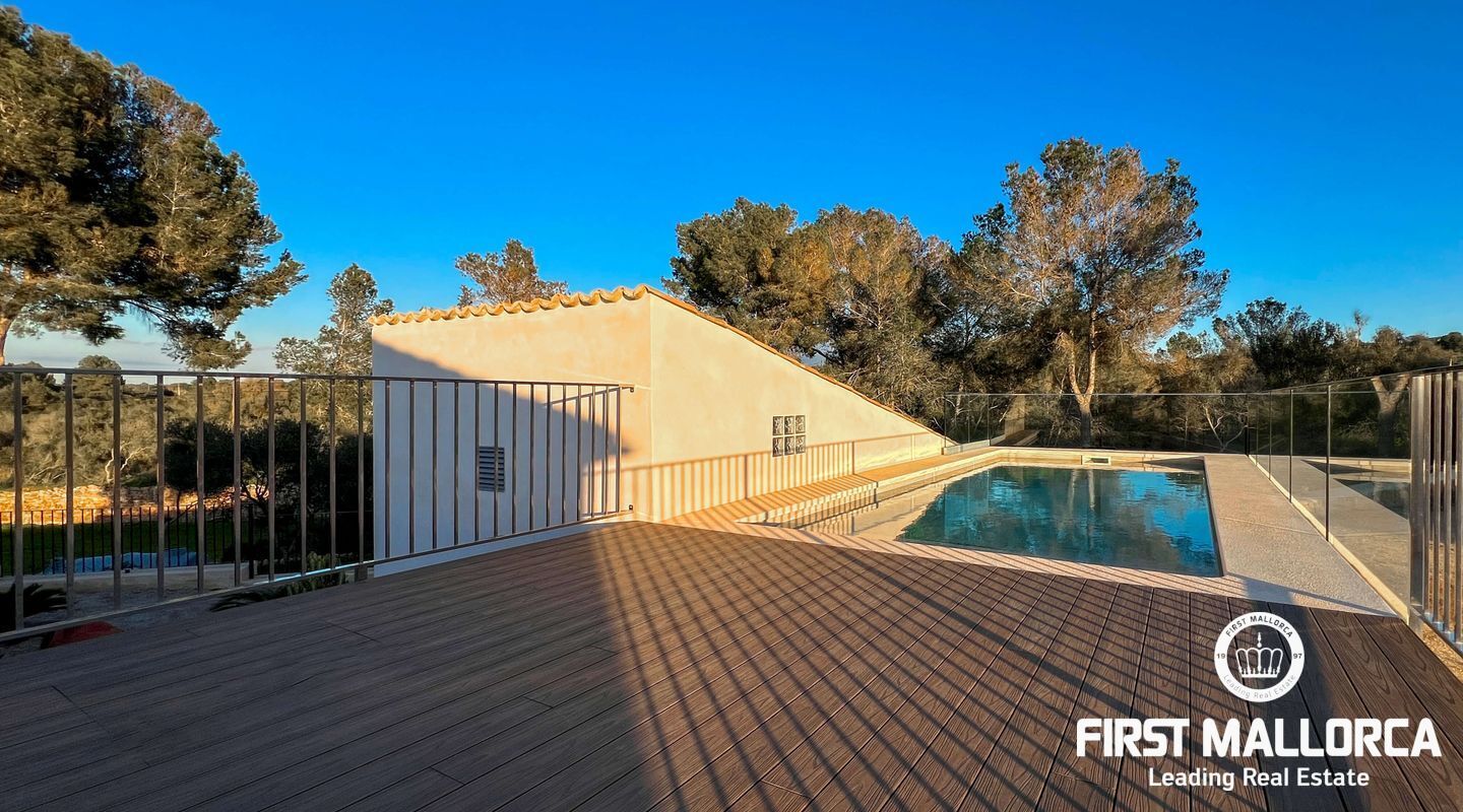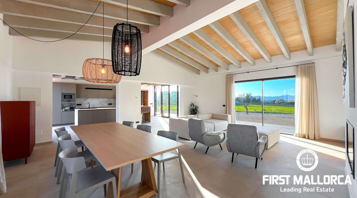 Surrounded by the idyllic landscape of s'Arenjassa, this exclusive newly built finca is a true hideaway for nature lovers and those seeking peace and quiet. With magnificent views of the surrounding countryside, the property combines modern living with Mediterranean flair. The finca has three spacious bedrooms and three stylish bathrooms that offer the highest level of living comfort. The open-plan living area with integrated kitchen impresses with its brightness and spaciousness and is complemented by an elegant fireplace, which creates a cosy atmosphere even on cooler evenings. Large window fronts harmoniously connect the interior spaces with nature and provide direct access to the outdoors from every room. The outdoor area invites you to relax with a pool, while a practical utility and storage room offers additional storage space. Air conditioning units ensure pleasant temperatures even on hot summer days, while traditional Persianas emphasise the Mallorcan charm. The modern and furnished finca is available to rent until September at the latest and thus offers the ideal opportunity to enjoy the Mediterranean lifestyle in a quiet yet easily accessible location.