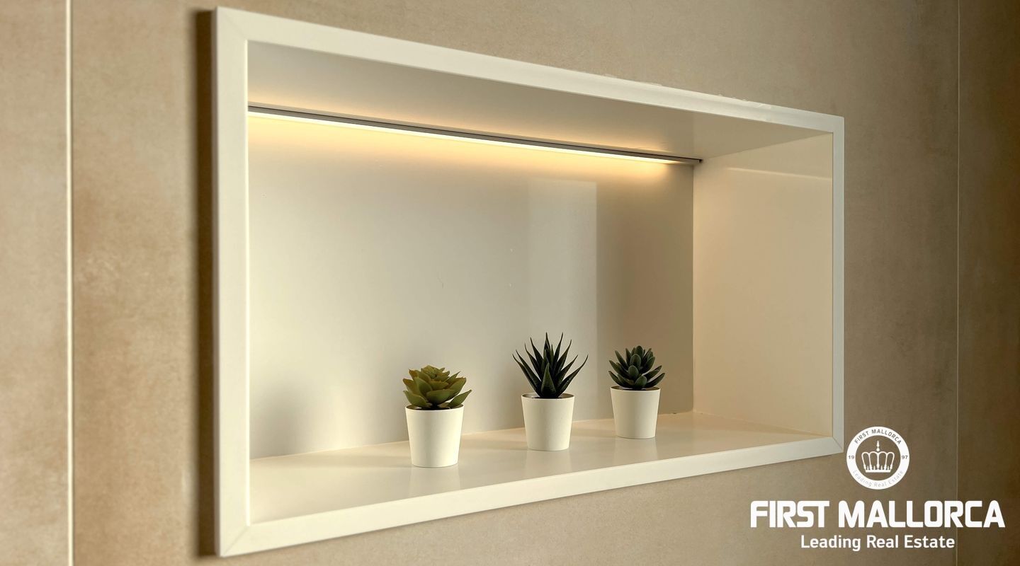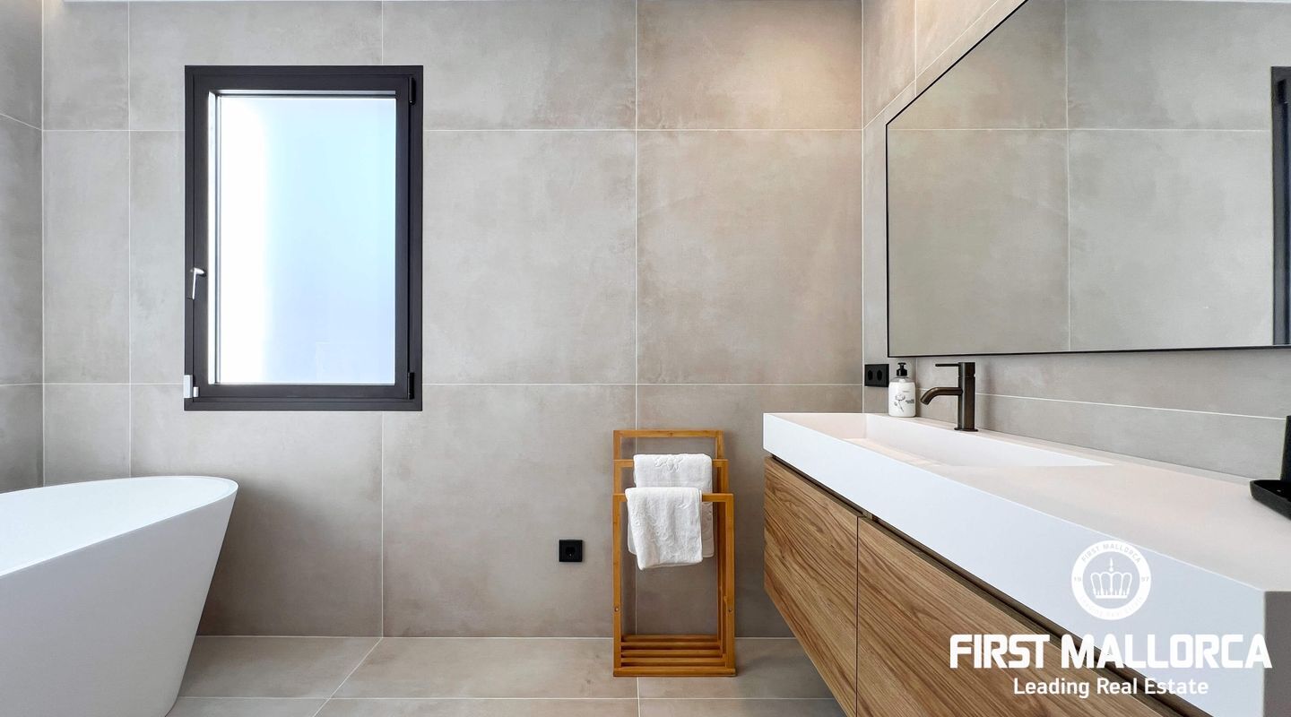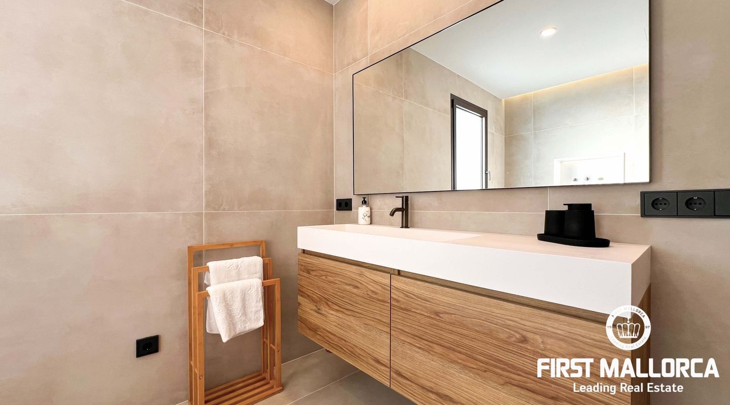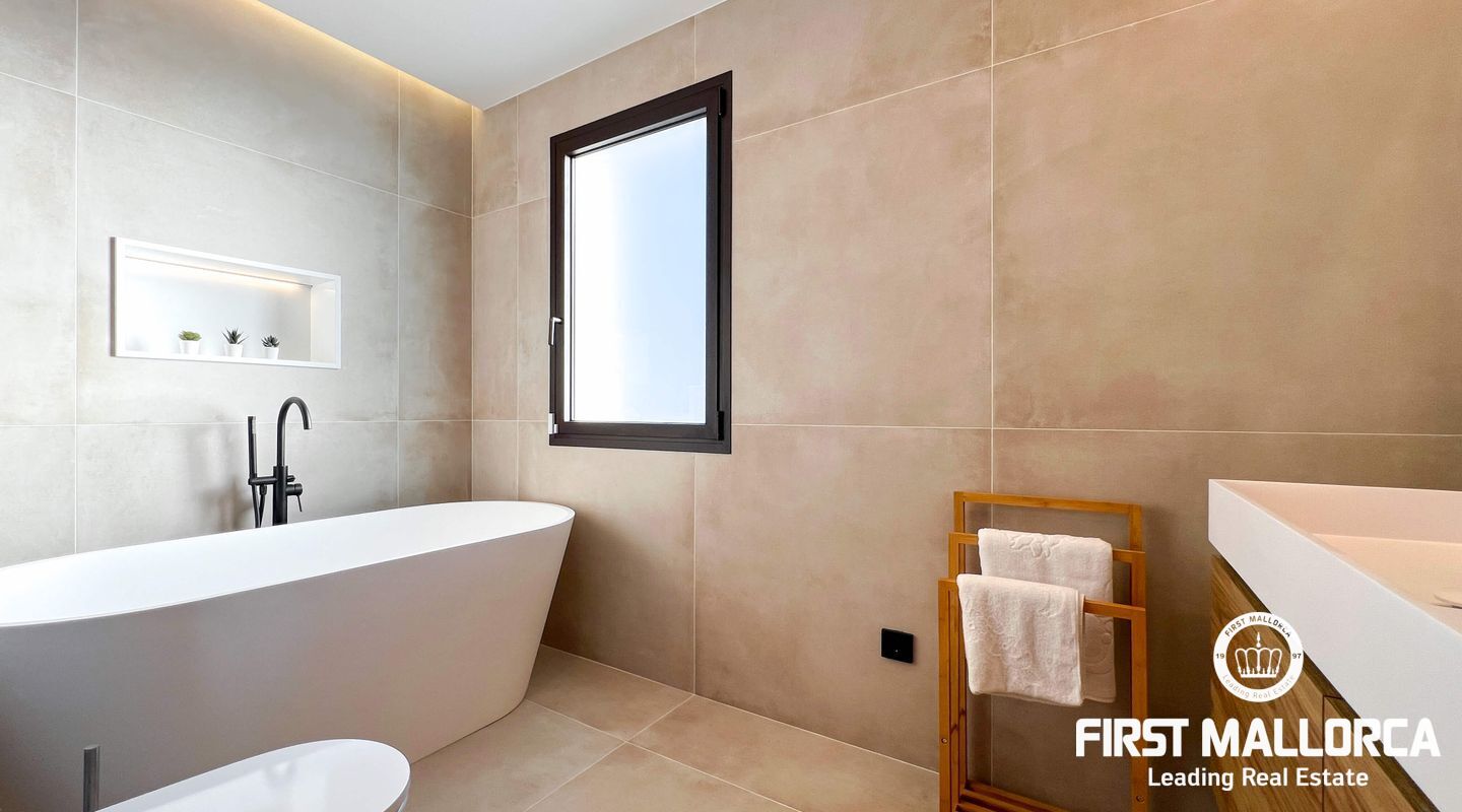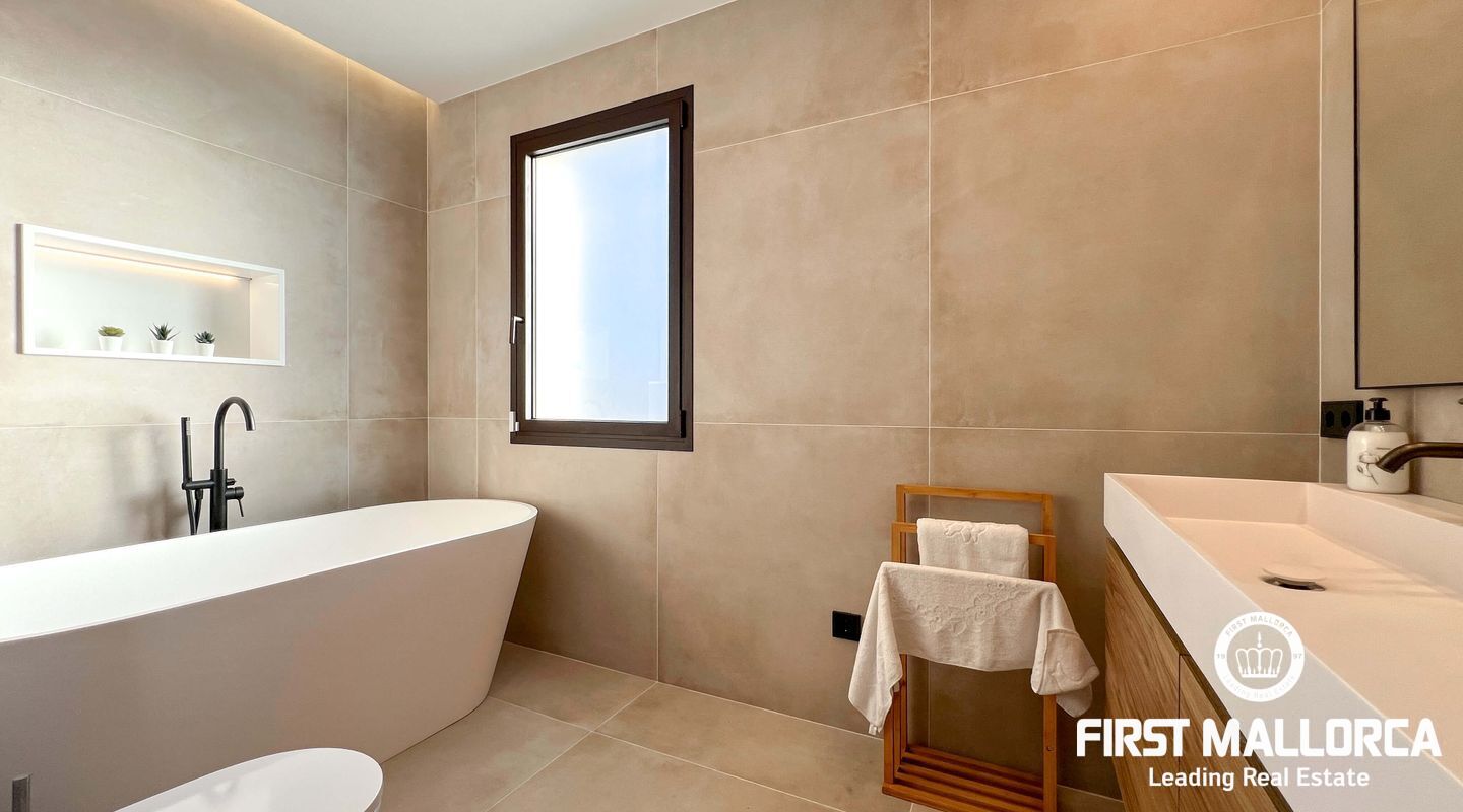Surrounded by the idyllic landscape of s'Arenjassa, this exclusive newly built finca is a true hideaway for nature lovers and those seeking peace and quiet. With magnificent views of the surrounding countryside, the property combines modern living with Mediterranean flair. The finca has three spacious bedrooms and three stylish bathrooms that offer the highest level of living comfort. The open-plan living area with integrated kitchen impresses with its brightness and spaciousness and is complemented by an elegant fireplace, which creates a cosy atmosphere even on cooler evenings. Large window fronts harmoniously connect the interior spaces with nature and provide direct access to the outdoors from every room. The outdoor area invites you to relax with a pool, while a practical utility and storage room offers additional storage space. Air conditioning units ensure pleasant temperatures even on hot summer days, while traditional Persianas emphasise the Mallorcan charm. The modern and furnished finca is available to rent until September at the latest and thus offers the ideal opportunity to enjoy the Mediterranean lifestyle in a quiet yet easily accessible location.