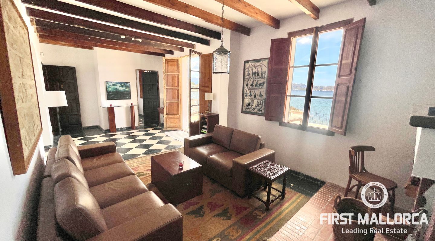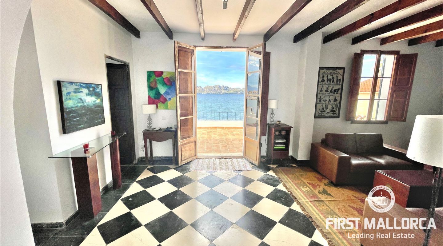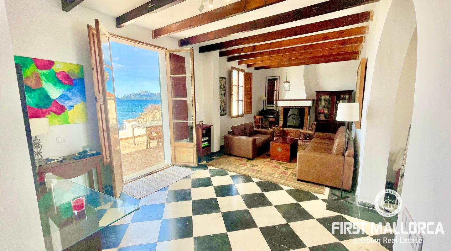 AVAILABLE JULY AND AUGUST This fantastic villa in front of the sea is one of the first holiday homes to be built in the Barcares area with a particular style and character. Distributed over three floors. On the ground floor you enter through a large terrace with spectacular views over the bay of Pollensa or through the garden. The entrance hall leads to a hallway that leads to two of the double bedrooms with sea views, the fully equipped kitchen and the largest bathroom. On the first floor there is a large bright living room with a large terrace that gives us the feeling of being in the middle of the sea. There are two double bedrooms, one of them with en suite bathroom. There is also a staircase leading to the third floor where the space can be used as a solarium with panoramic views. Close to the village and all amenities, fantastic for summer holidays, it is an opportunity not to be missed. Do not hesitate to contact our First Mallorca team for more information or to arrange a viewing.