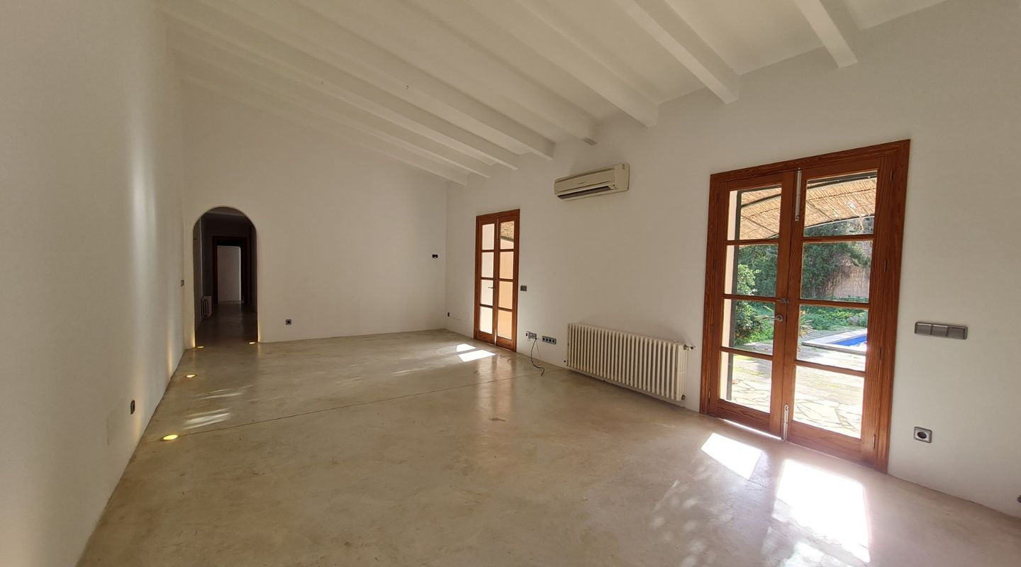 Located in one of the quietest areas of Es Llombards, this charming townhouse offers comfort, light, and privacy. The property features three double bedrooms and two full bathrooms, one of them en suite. The spacious living area with an open-plan kitchen stands out for its high ceilings and abundant natural light, with direct access to a porch overlooking the swimming pool and the beautifully landscaped garden.
