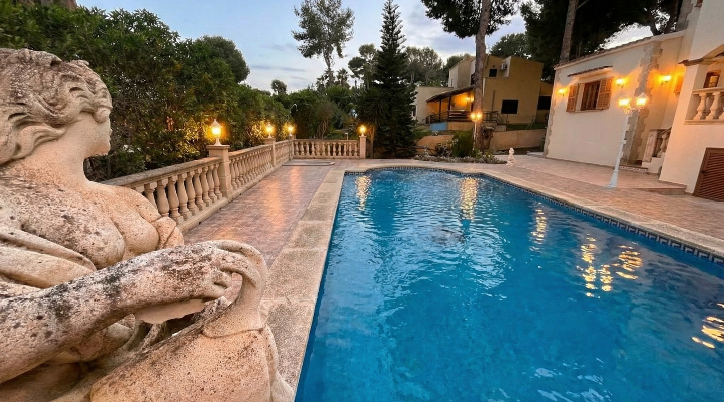 This charming detached villa, located in the sought-after residential area of Nova Santa Ponsa, offers an excellent combination of tranquility, comfort and proximity to the sea. Only 300 meters from the coast, the property is situated in a quiet and family-friendly neighborhood close to all services.